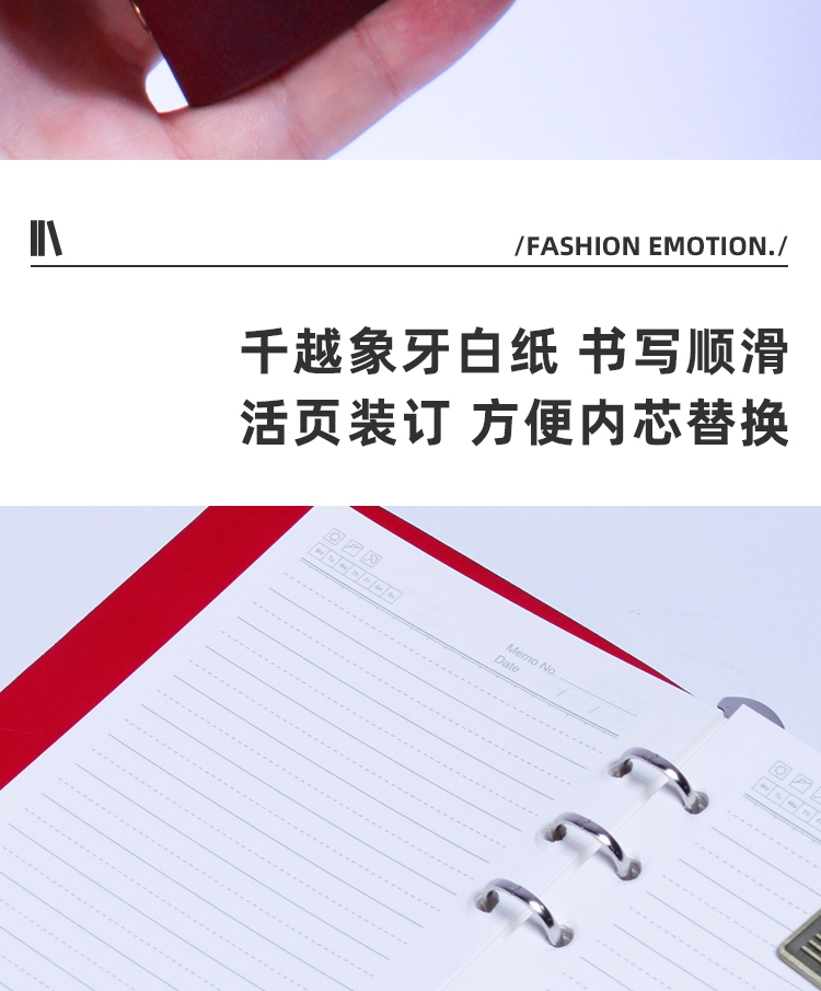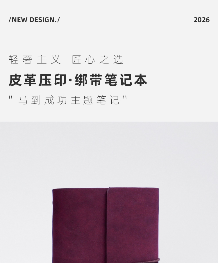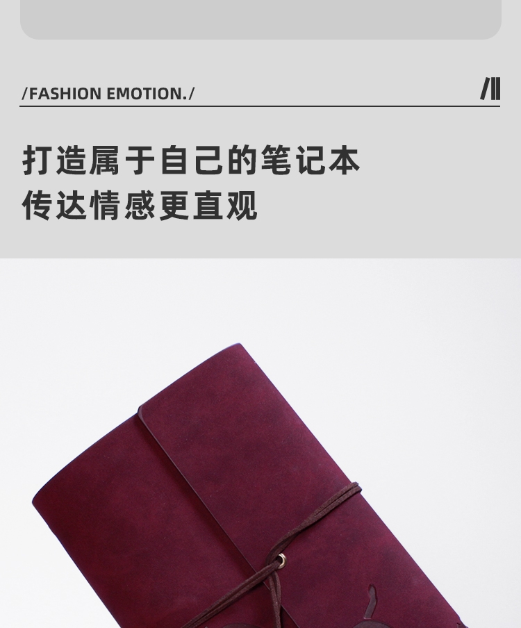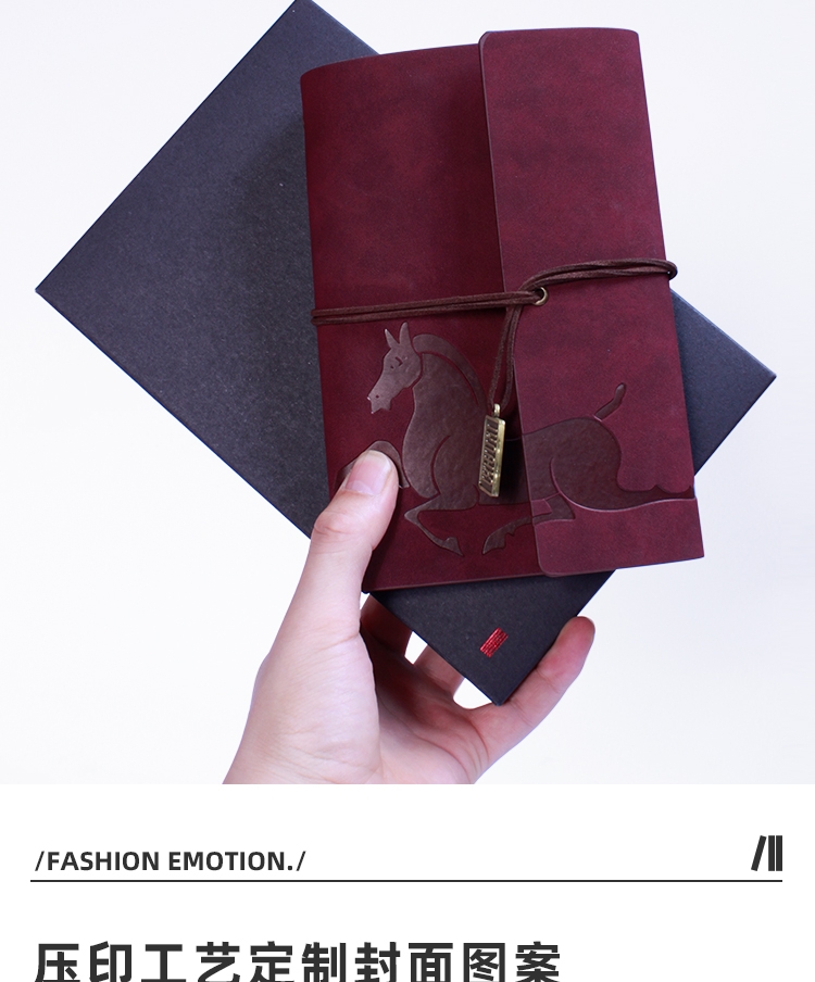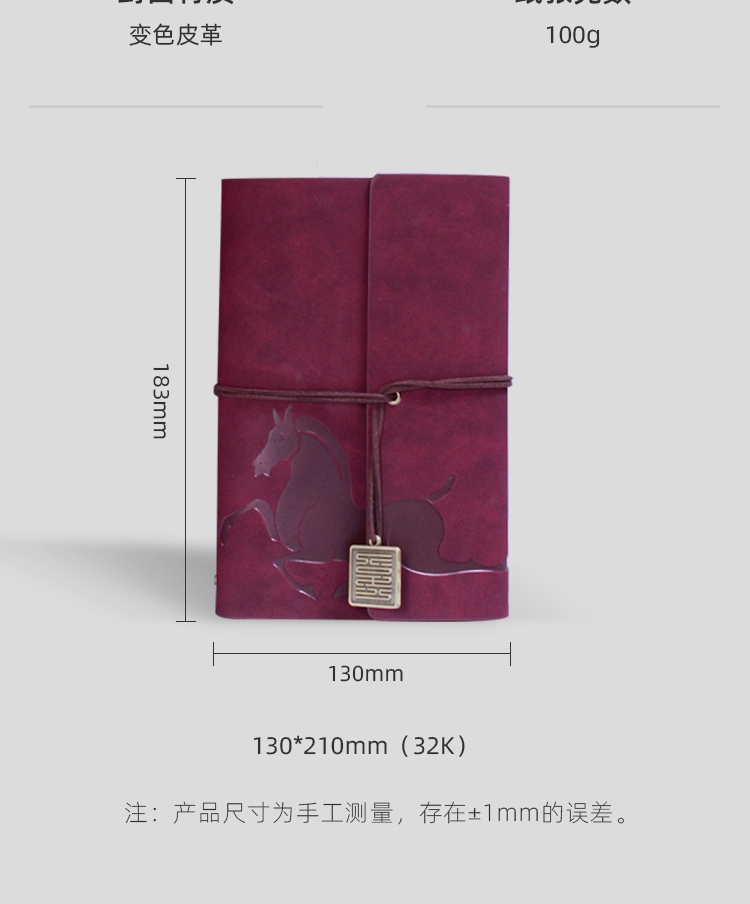 封面变色皮革 材质优良 绑带设计 搭配专属吊坠;压印工艺定制封面图案 精致有格调;千越象牙白纸 书写顺滑 活页装订 方便内芯替换;单本包装 精美雅致 黑色卡纸盒