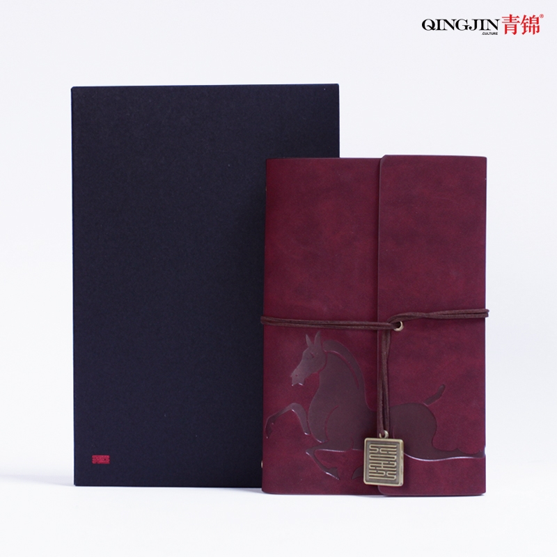 青锦 皮革绑带活页记事本配黑色卡纸盒