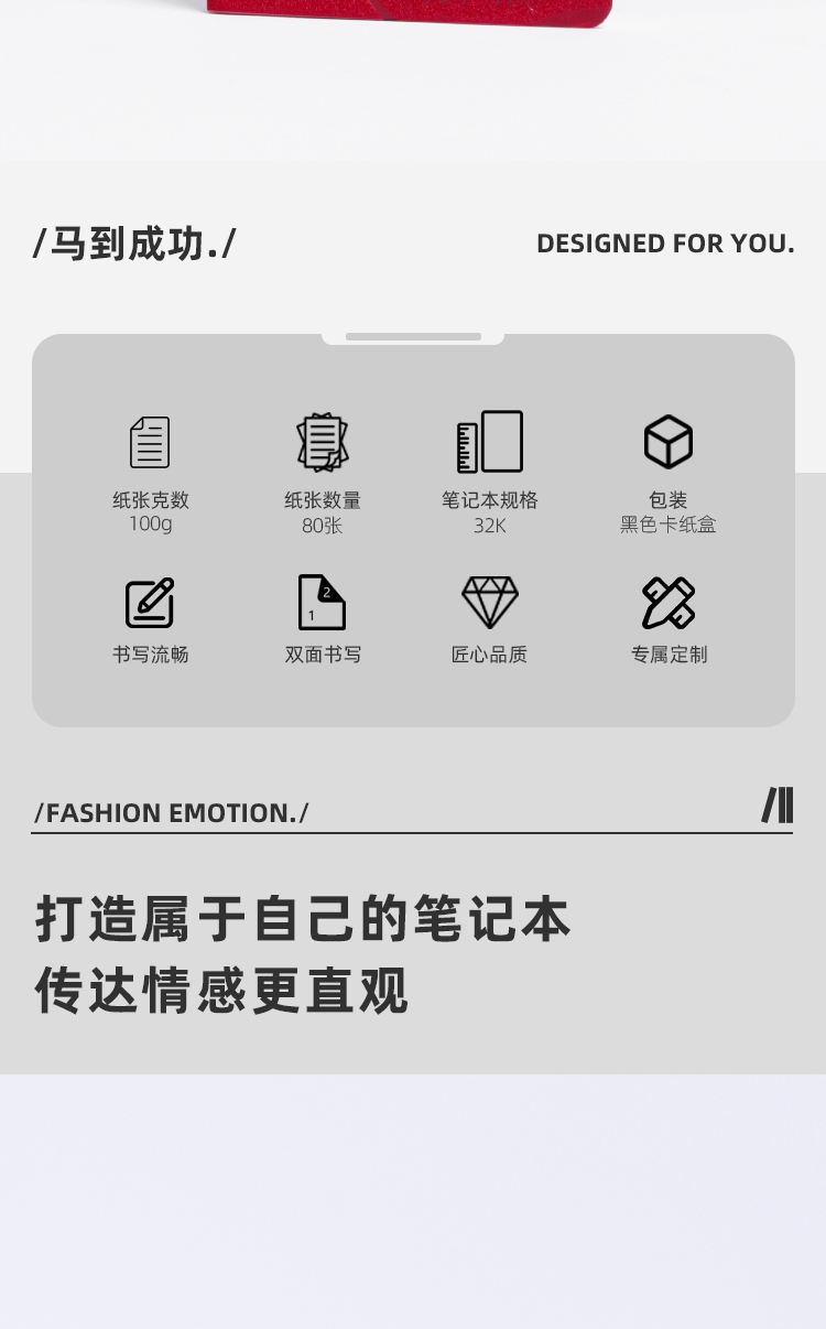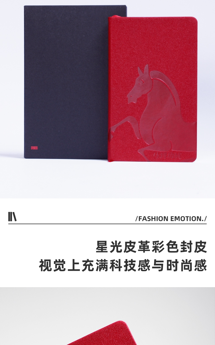 星光皮革彩色封皮 视觉上充满科技感与时尚感;压印工艺定制封面图案 精致有格调;千越象牙白纸 书写顺滑 不易渗透;单本包装 精美雅致 黑色卡纸盒