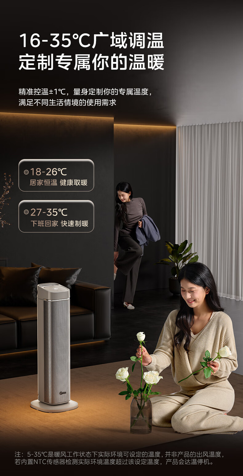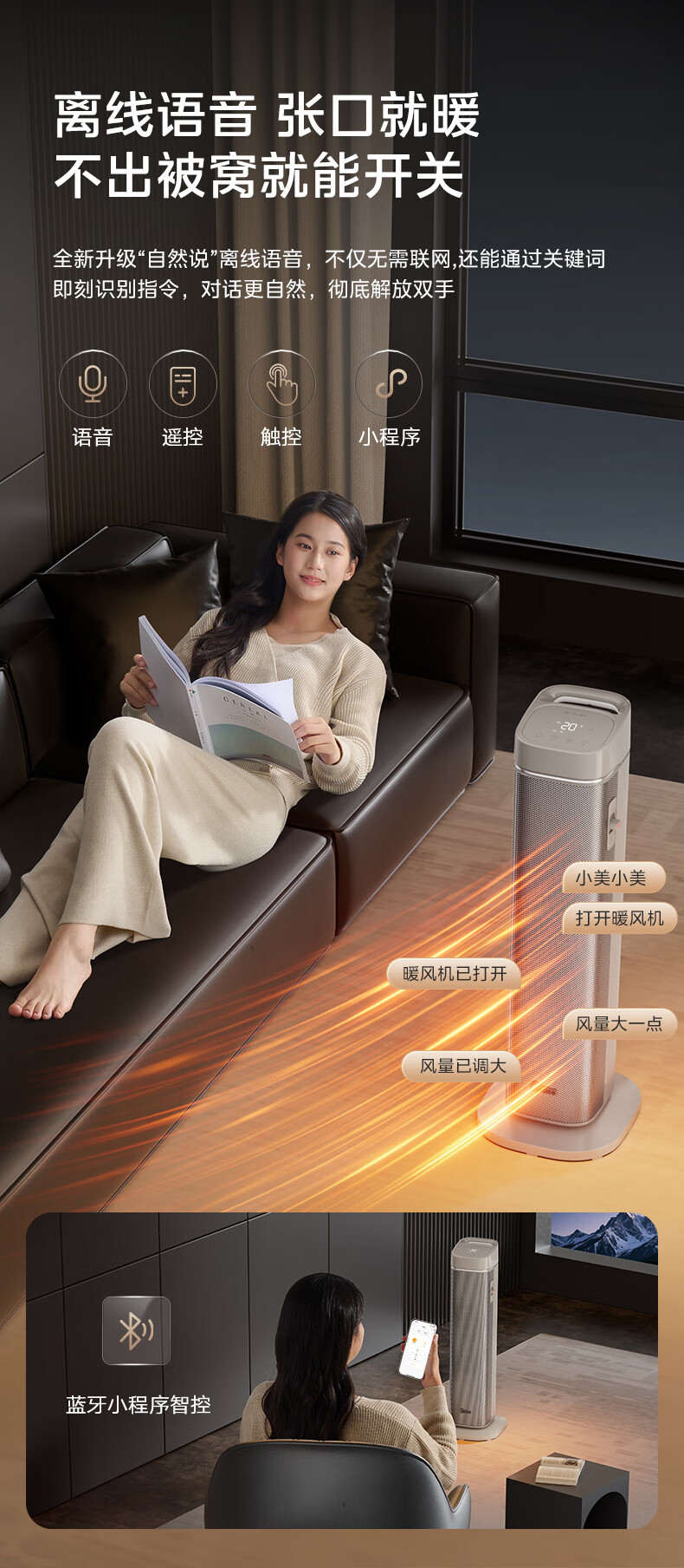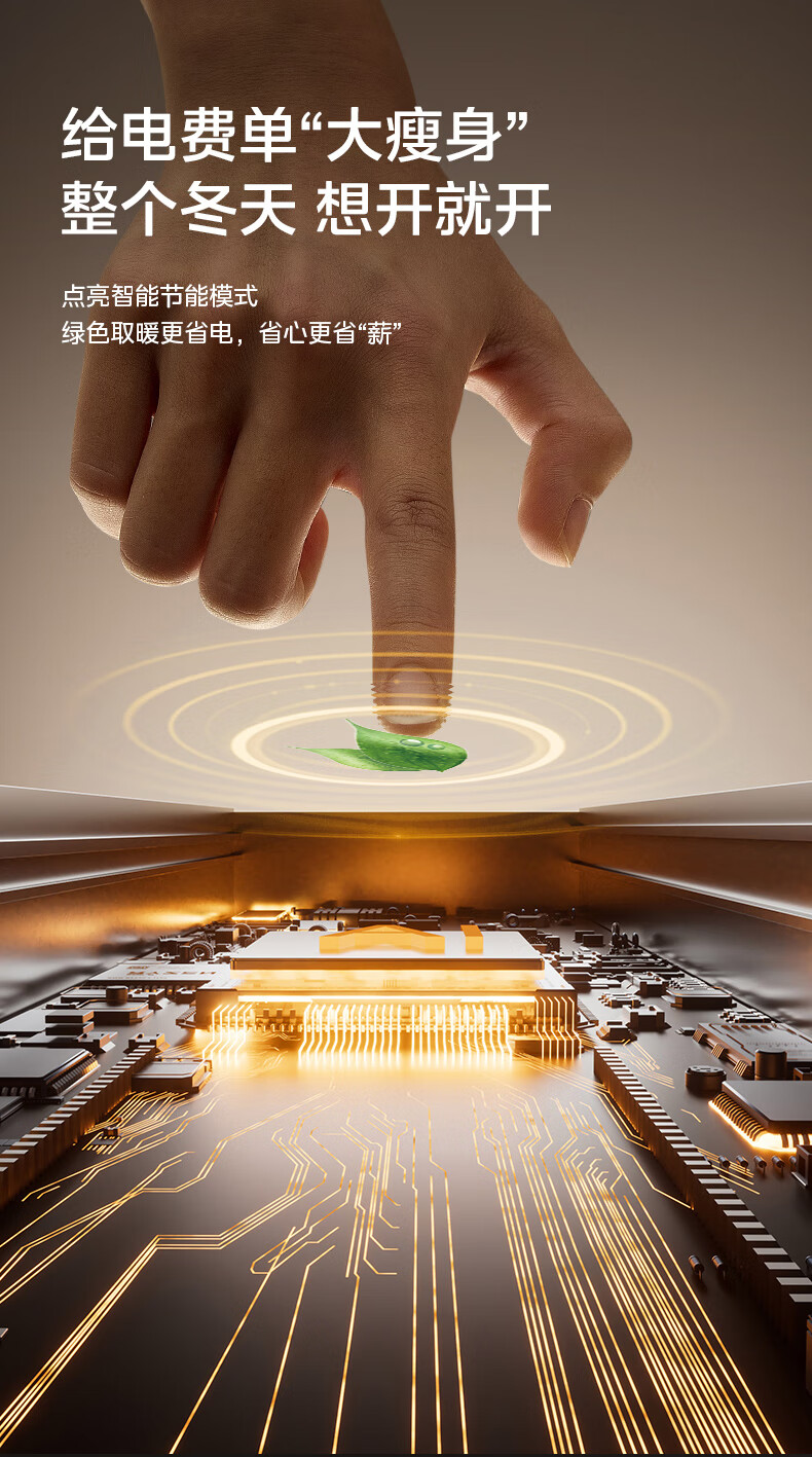 蓝牙链接微信小程序,再也不用担心找不到遥控;顶部屏显触控+远程红外遥控;25°向下送暖,暖脚暖全身-可调节向下导流叶片