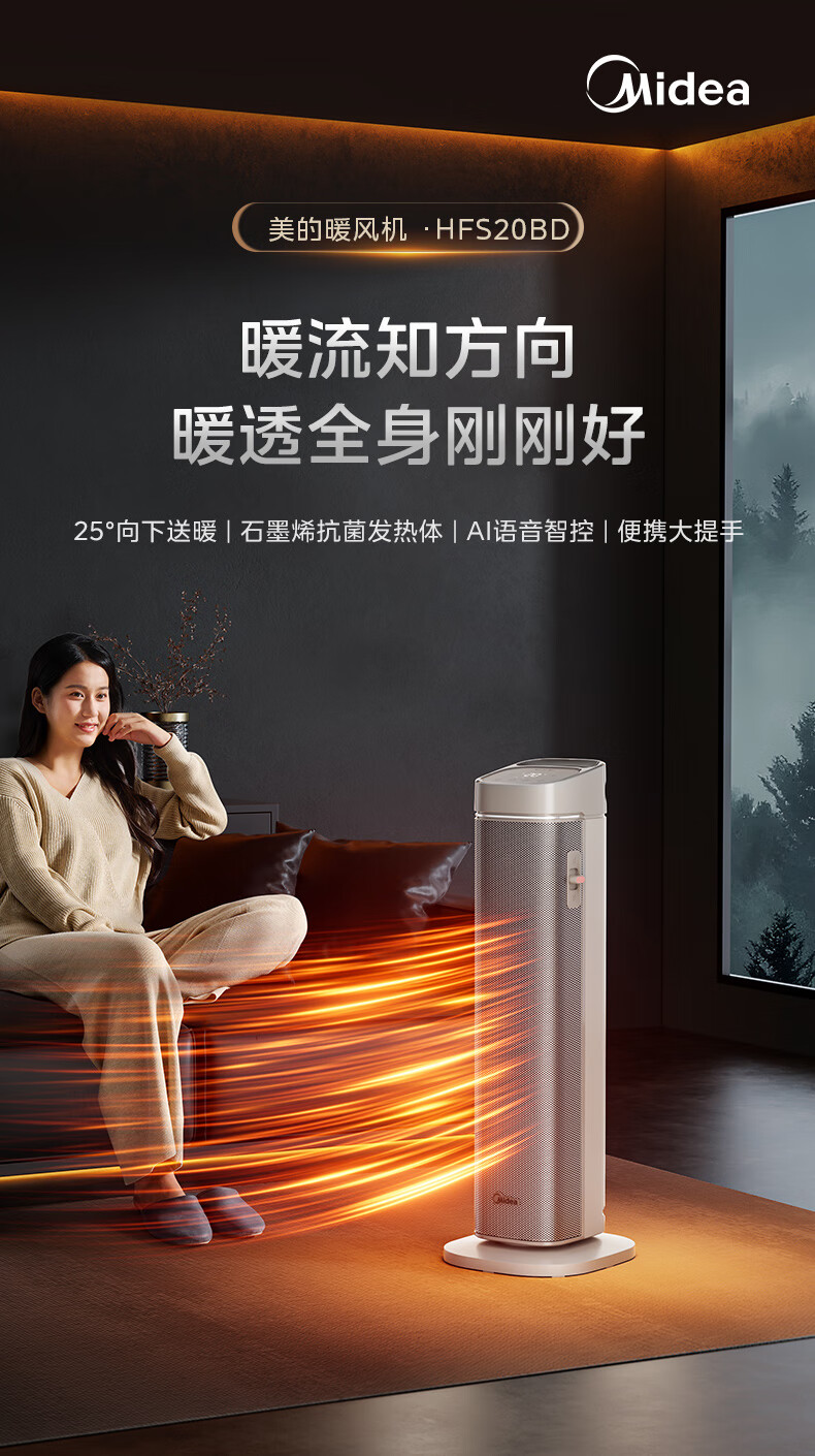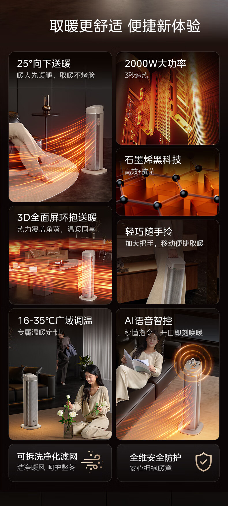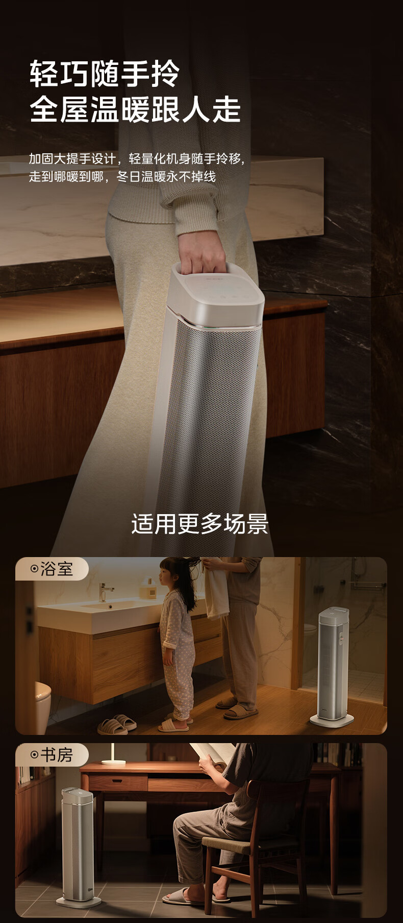 蓝牙链接微信小程序,再也不用担心找不到遥控;顶部屏显触控+远程红外遥控;25°向下送暖,暖脚暖全身-可调节向下导流叶片
