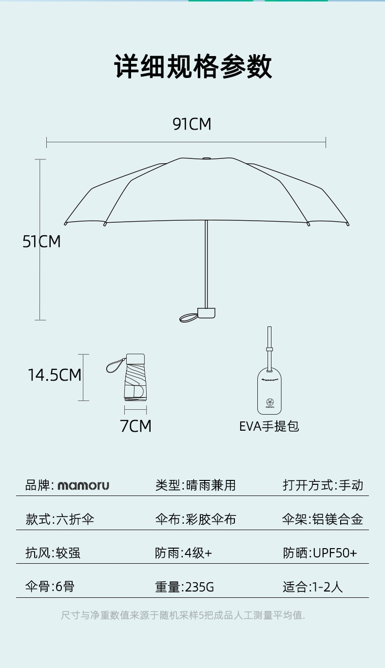 伞面尺寸/规格:91CM,51CM*6K