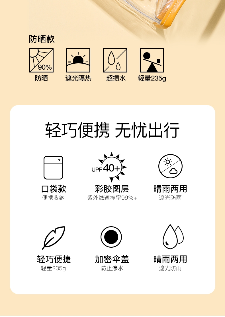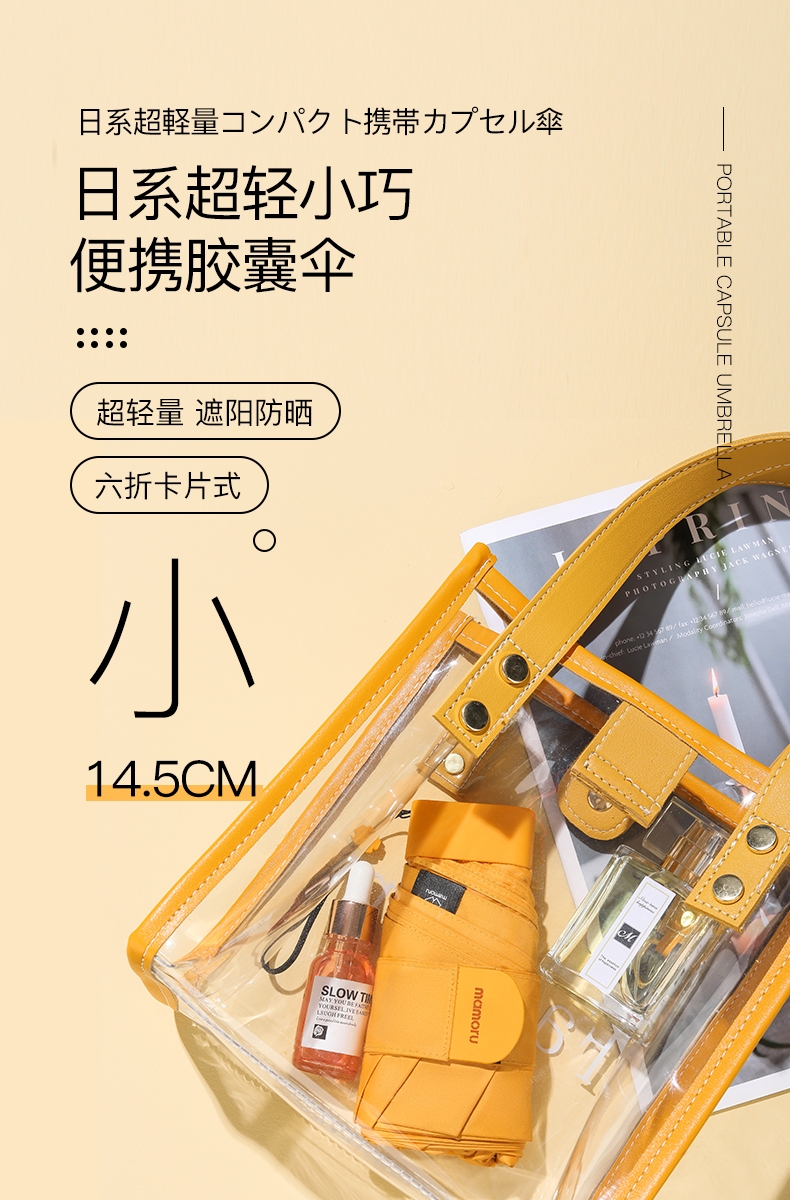 小巧,收起长度14.5CM,重量230g;便携箱包式手袋设计,高颜值高品质体现;把手加大,增加了把手的握感舒适度