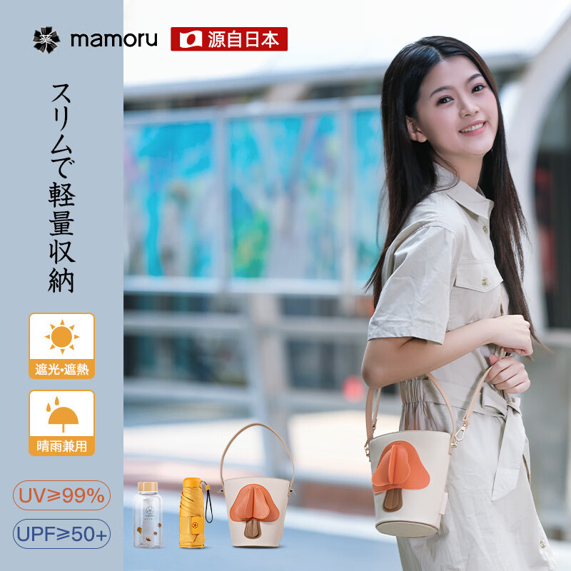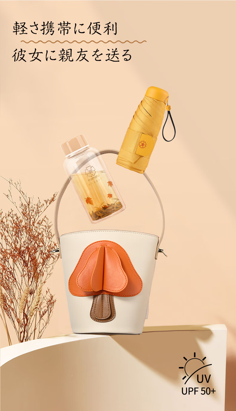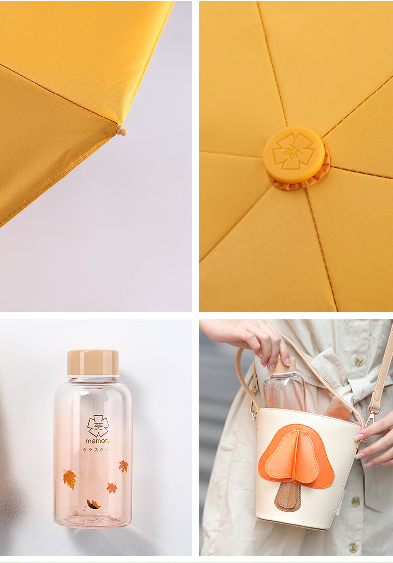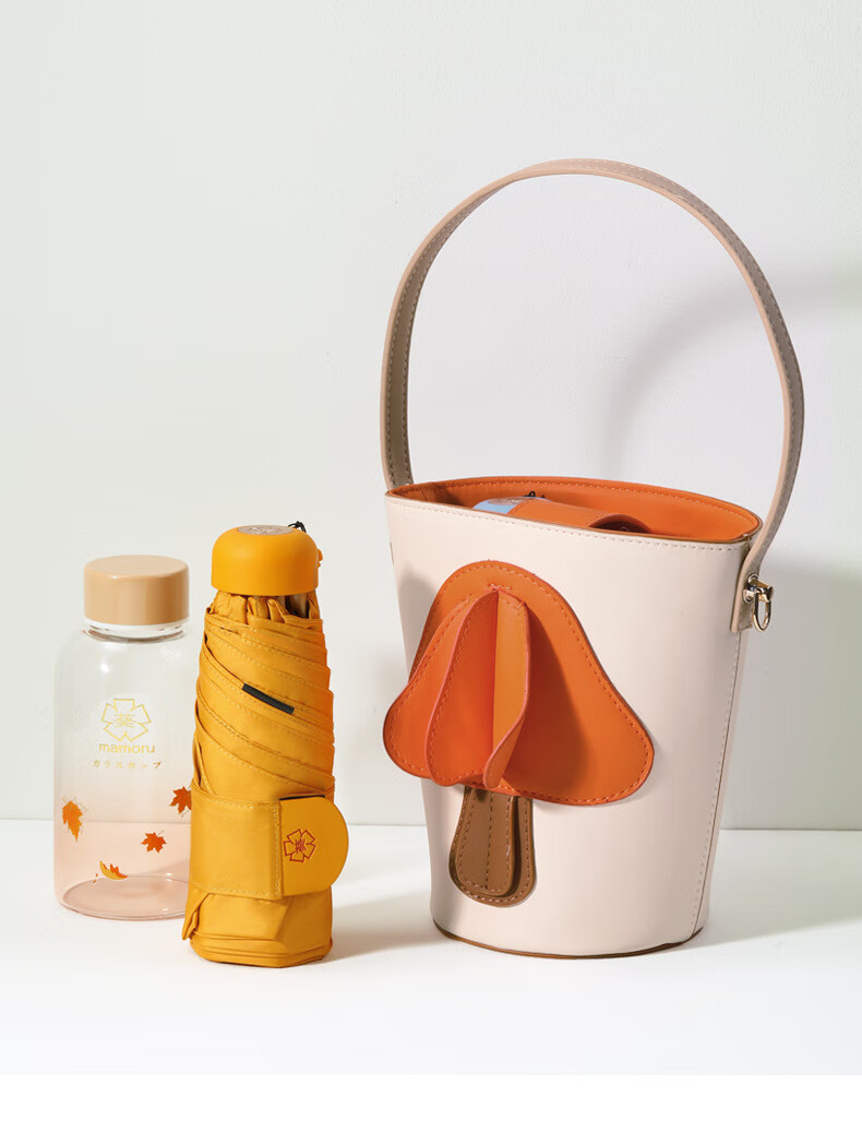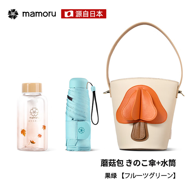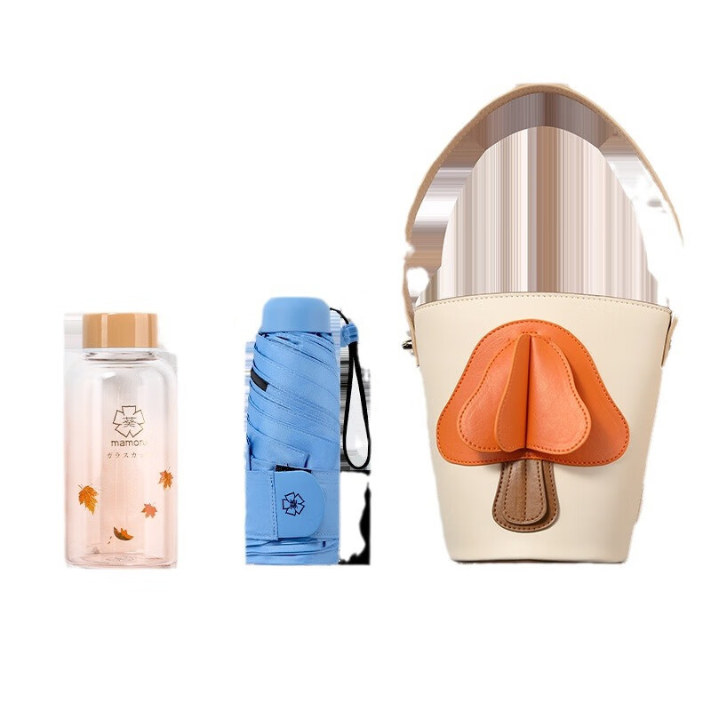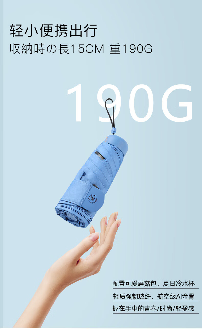 配置时尚可爱蘑菇包、夏日冷水杯;轻质强韧玻纤、航空级AI金骨;握在手中的青春/时尚/轻盈感