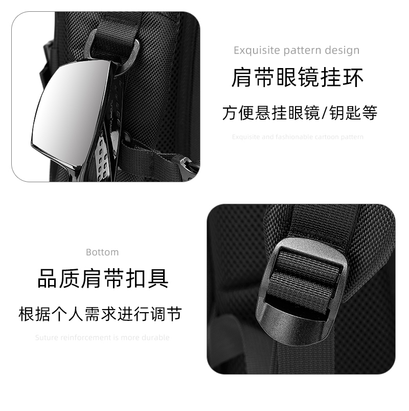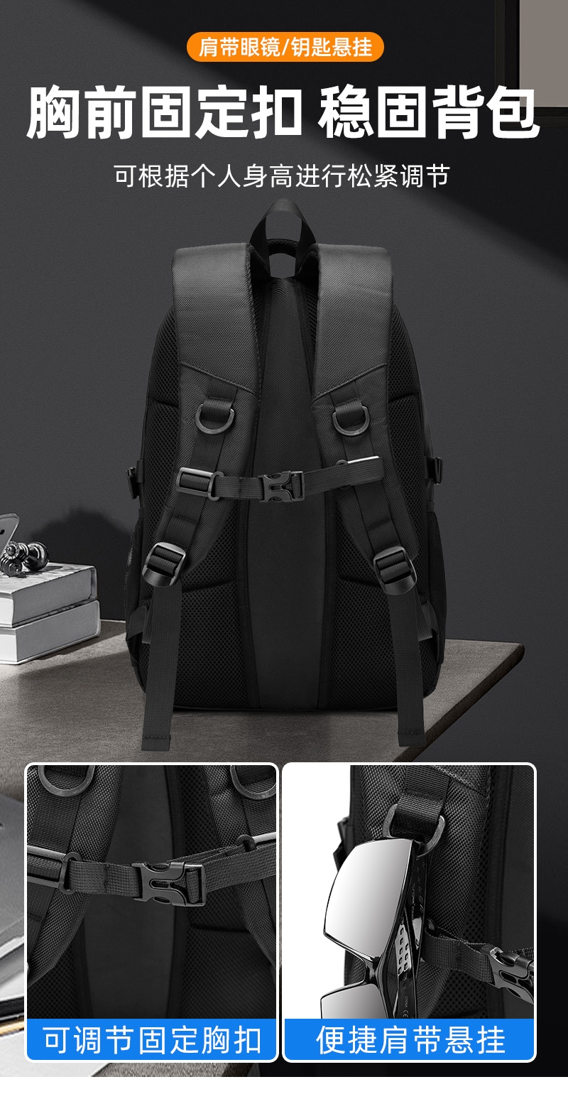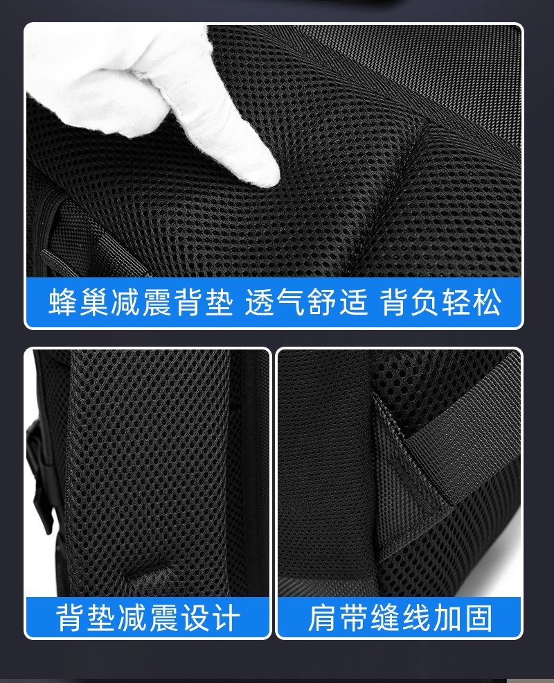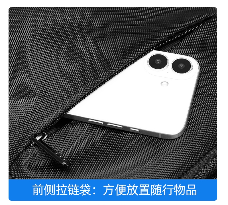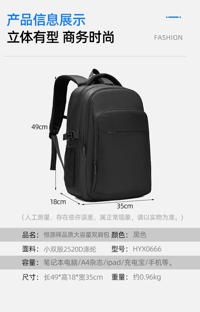 小双股2520D涤纶材质;两侧水杯、雨伞专用收纳袋;四层收纳拉链袋