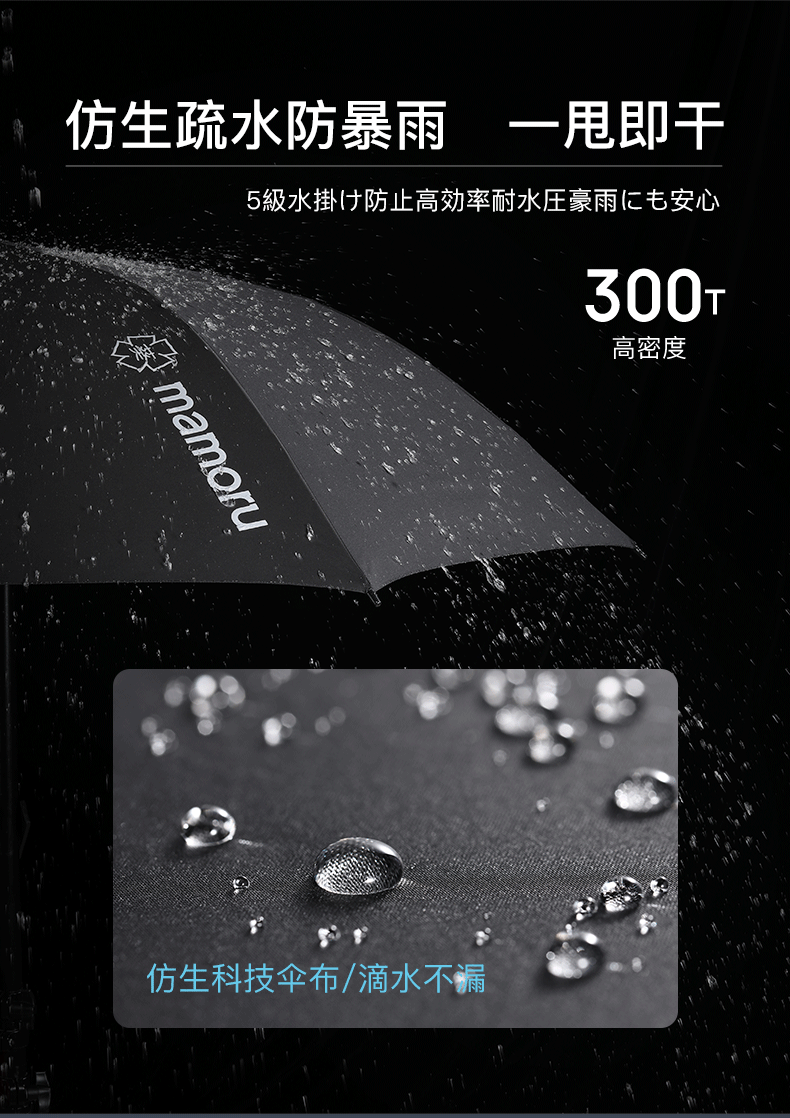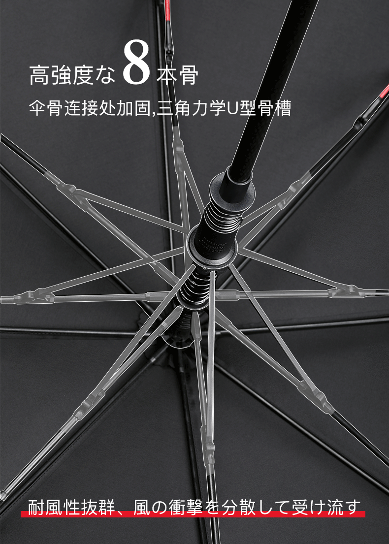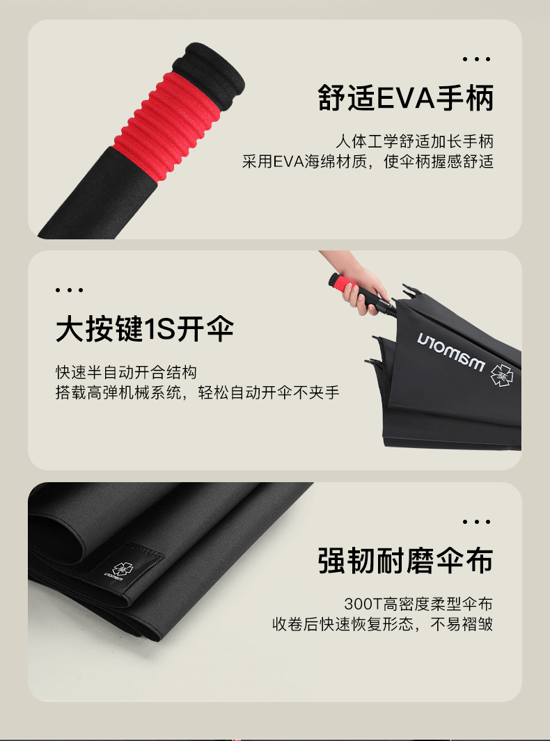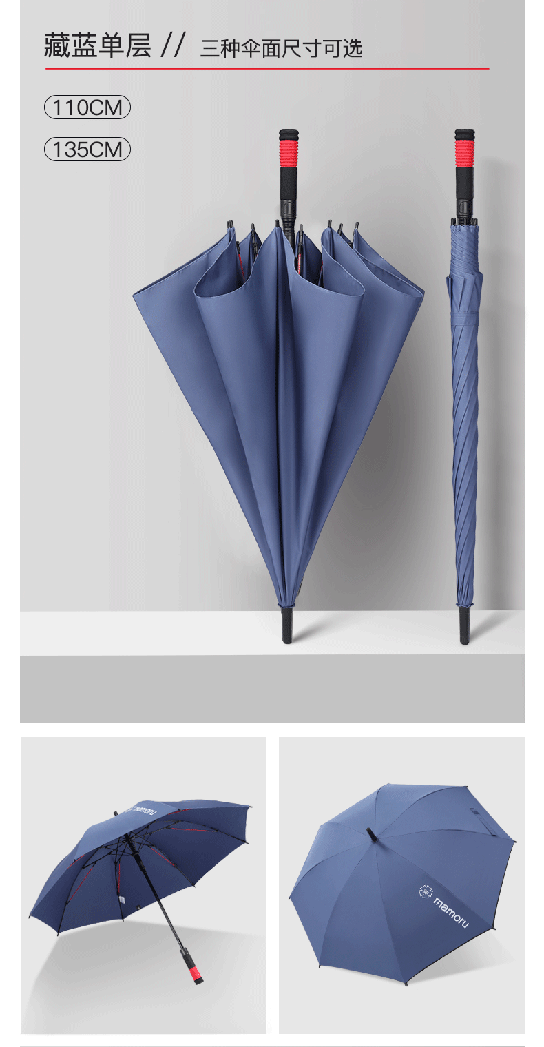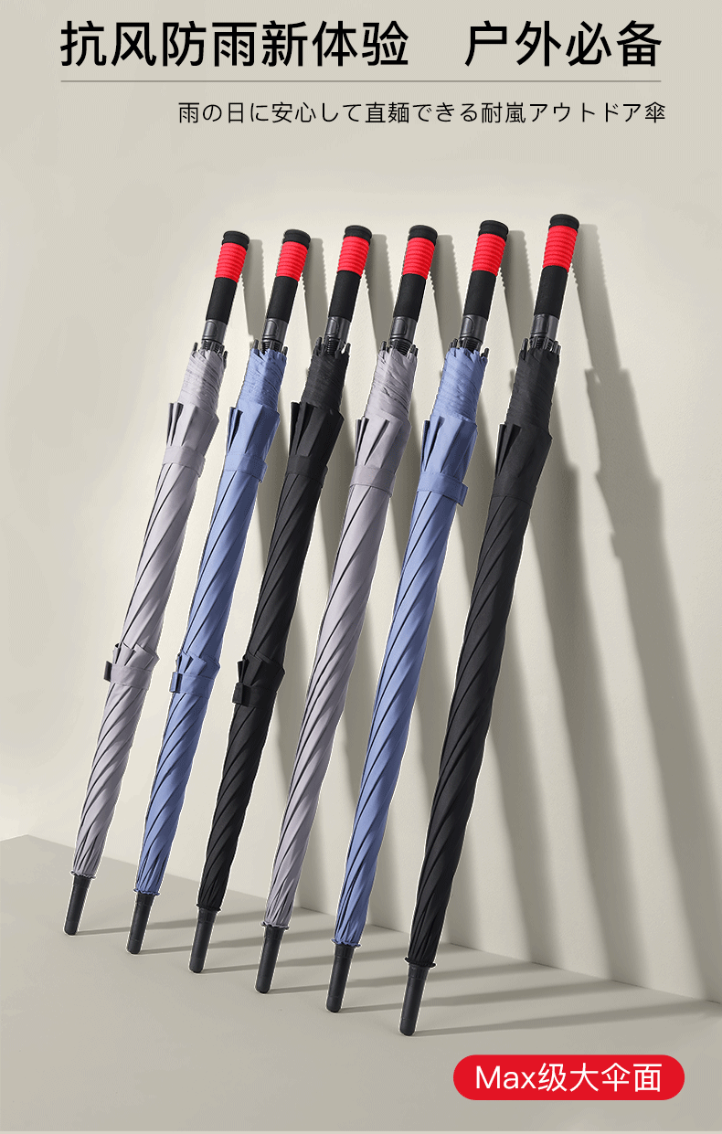 超大伞面打开直径1.35米,双层的伞面结构设计;抗风伞骨,增加了红色的抗风拉条,可抗8级风;5级超泼水面料,300T加厚防雨的同时兼顾防晒