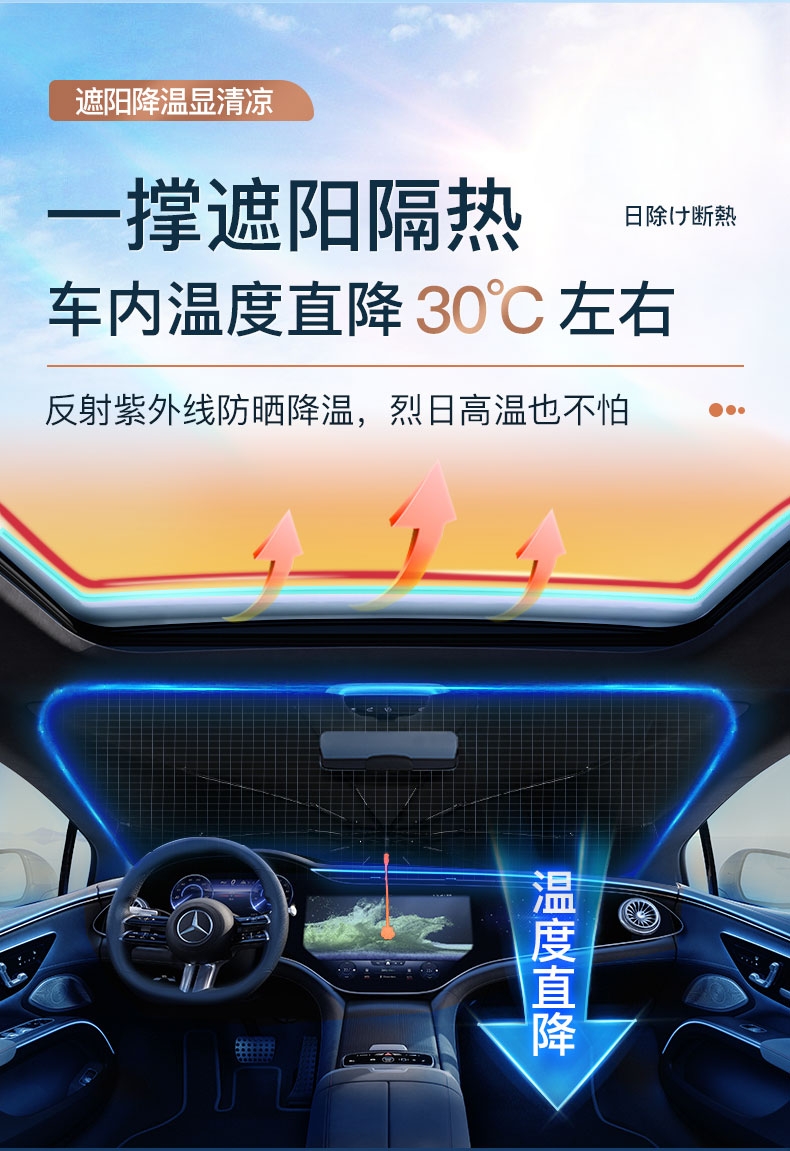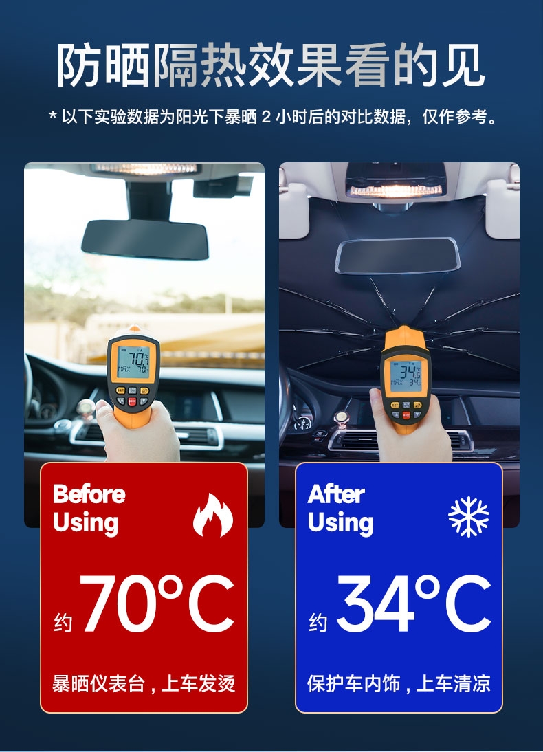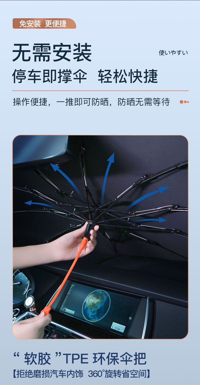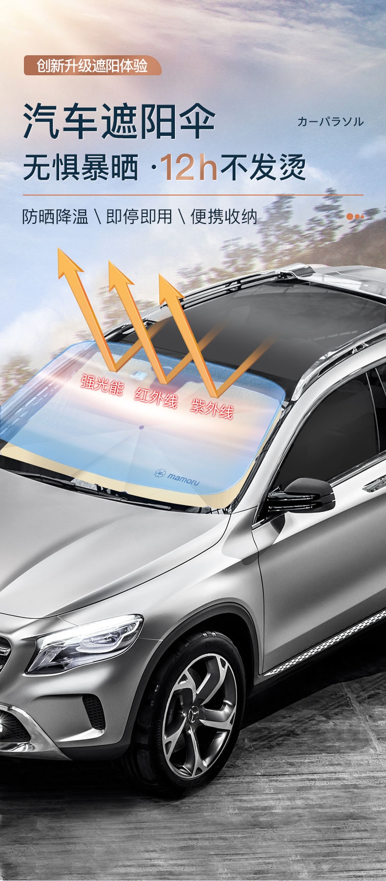 一片式汽车伞通常具备防雨涂层;配备了防紫外线涂层;一片式汽车伞通常设计为大面积的伞盖