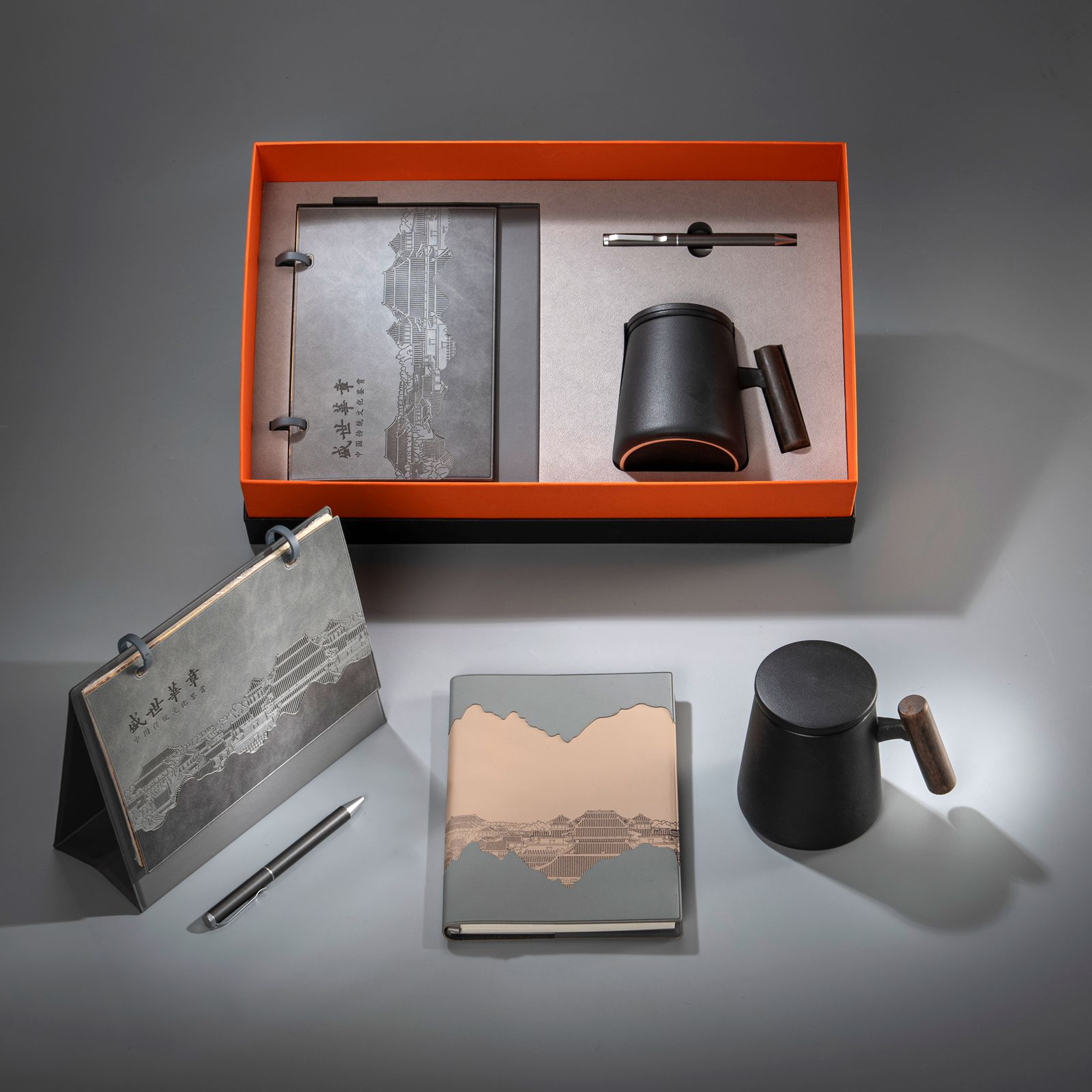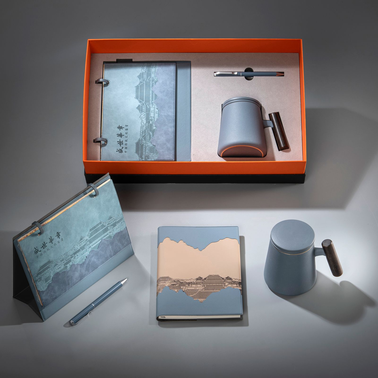 公司采购福利礼品 - 2026定制台历套装(含陶瓷杯金属笔)免费设计