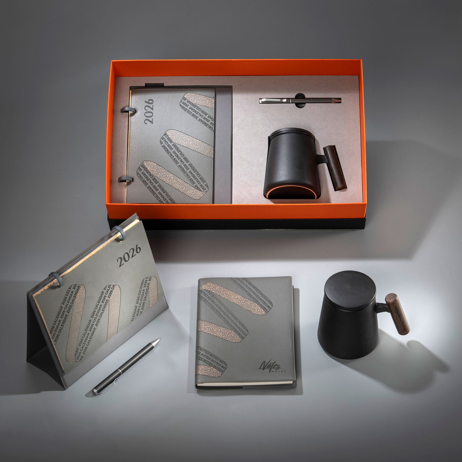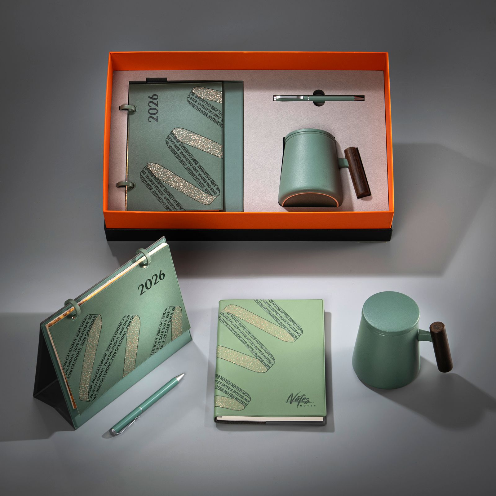 2026高级企业定制礼品套装 | 台历+陶瓷杯+金属笔+笔记本,传递品牌温度