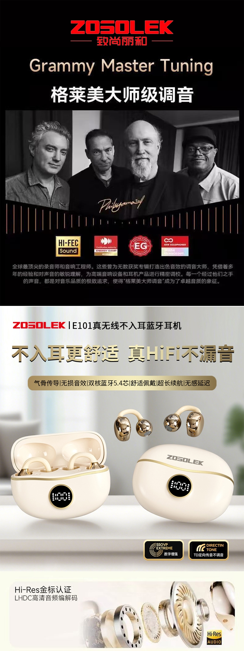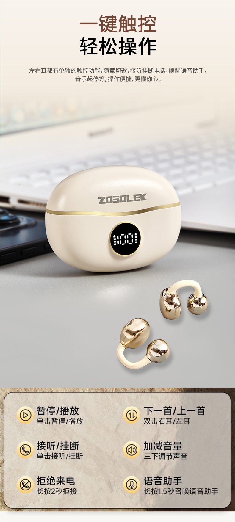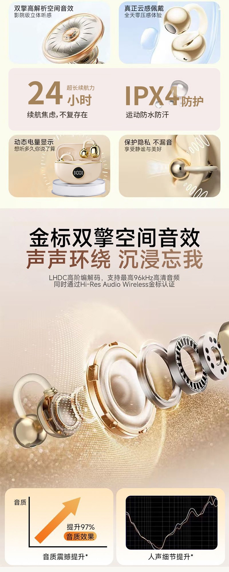 致尚丽和 真无线开放式不入耳数显蓝牙耳机E101