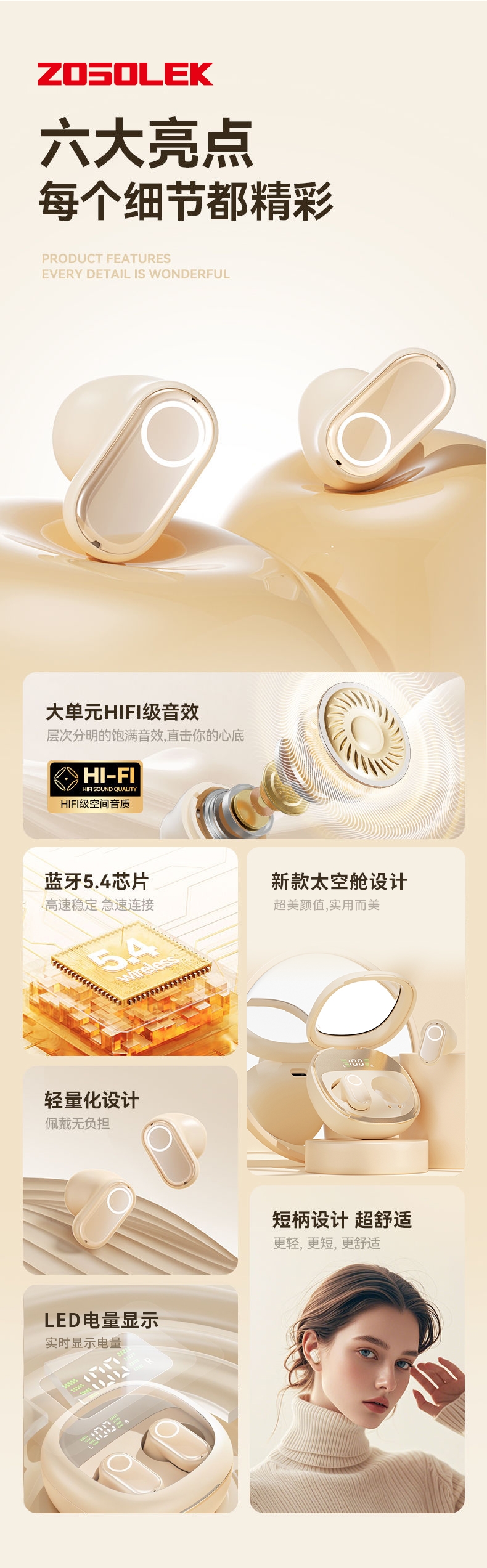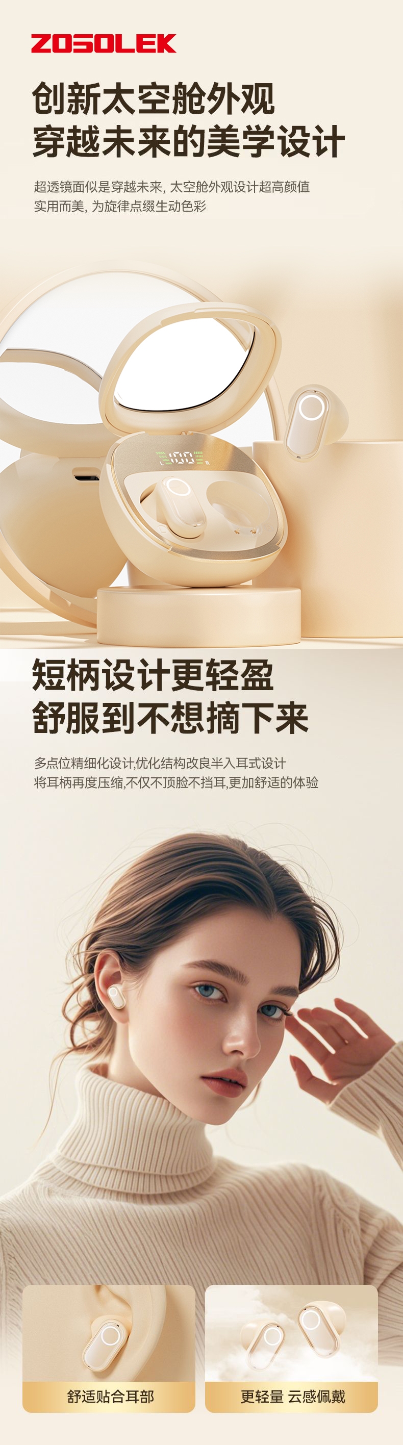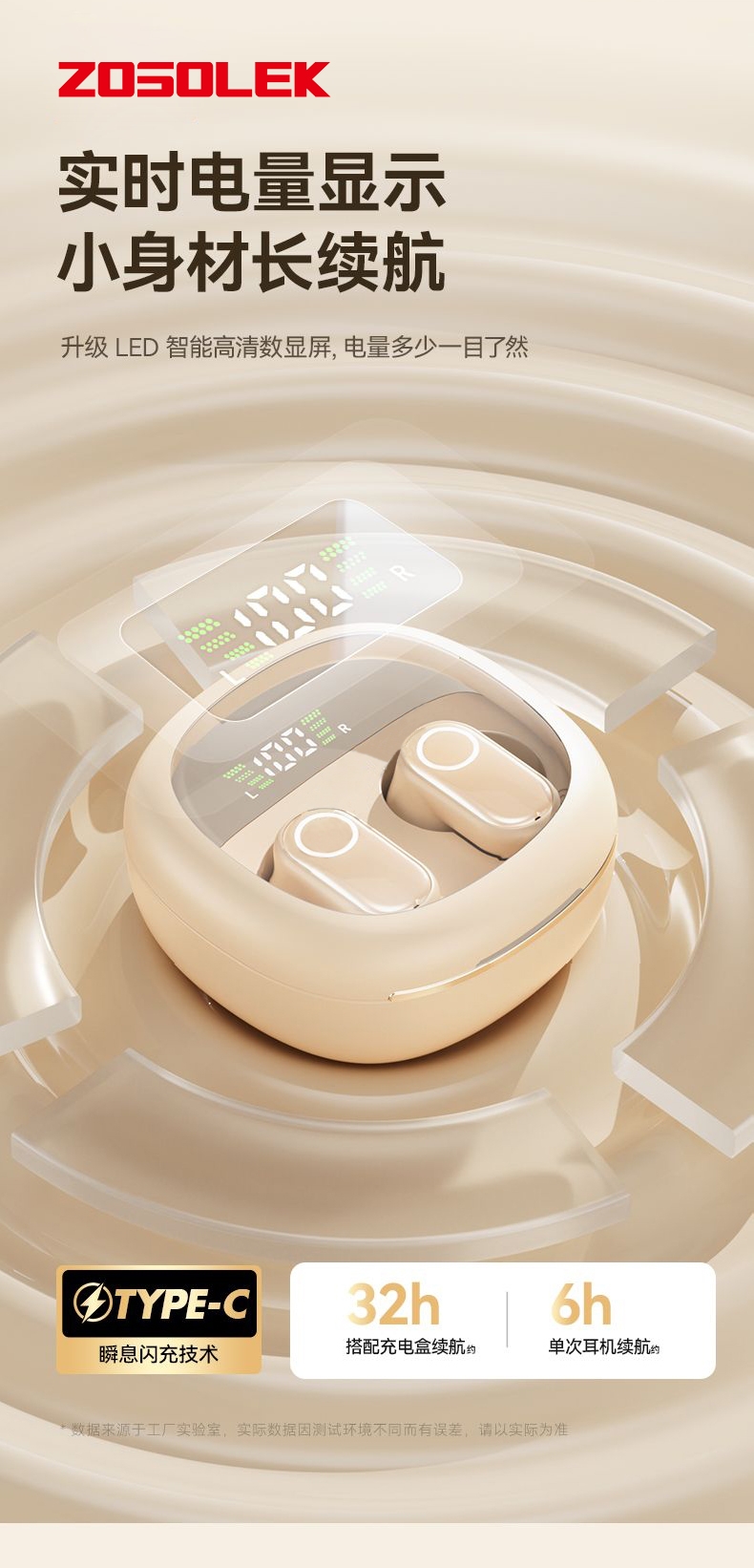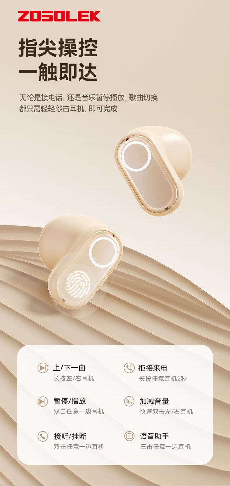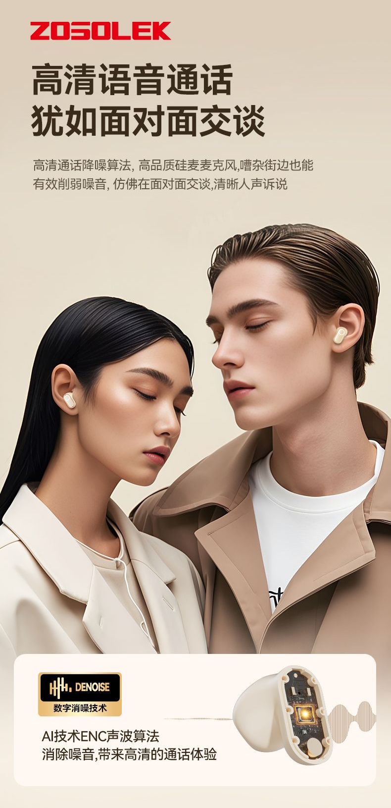轻量化短柄设计,舒适贴合耳部,云感佩戴,小巧精致;AI数字消噪,ENC通话降噪,双重抗风噪,高清通话;安全高标准锂电池,搭配瞬时闪充技术,充电更快续航久