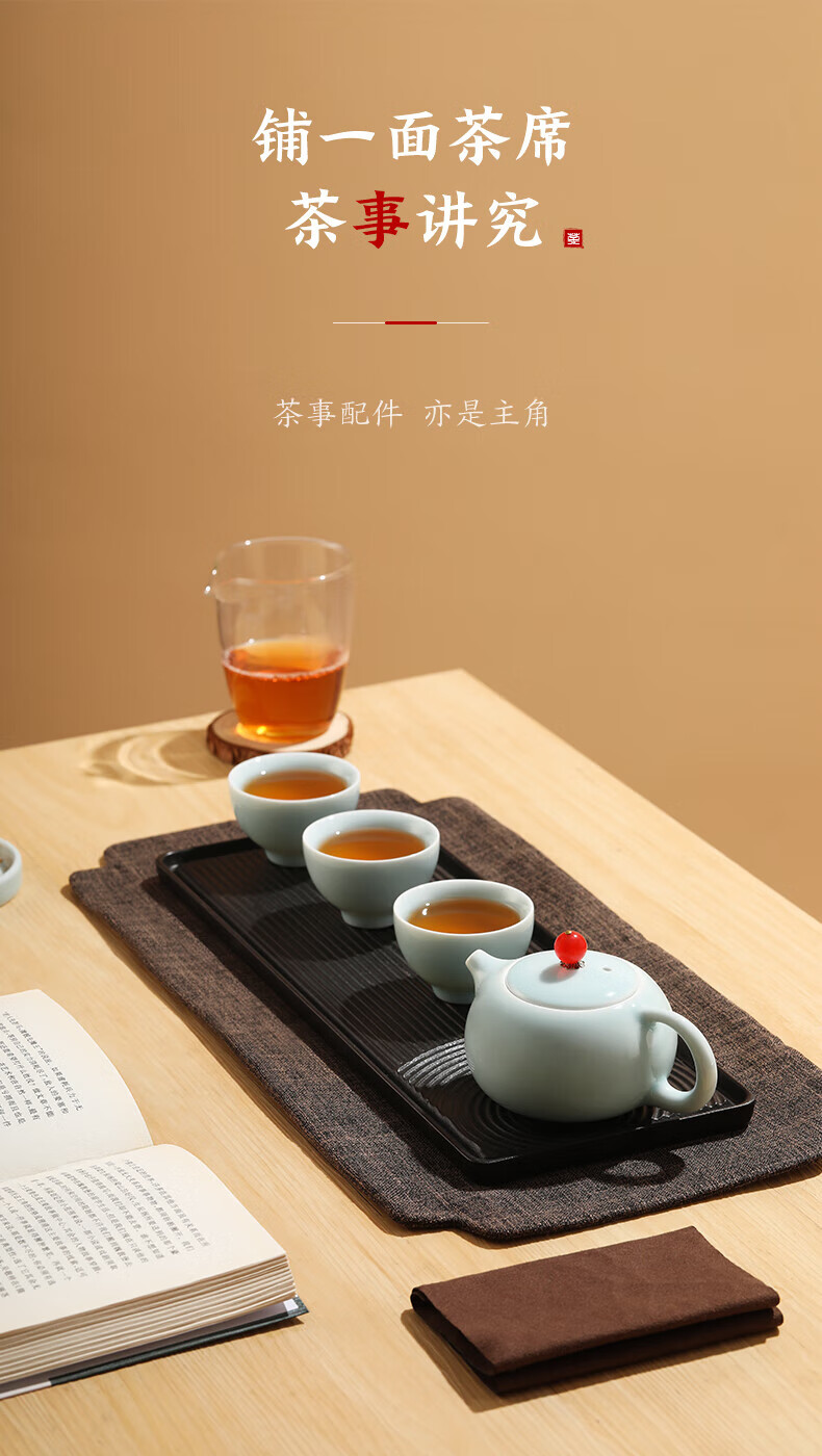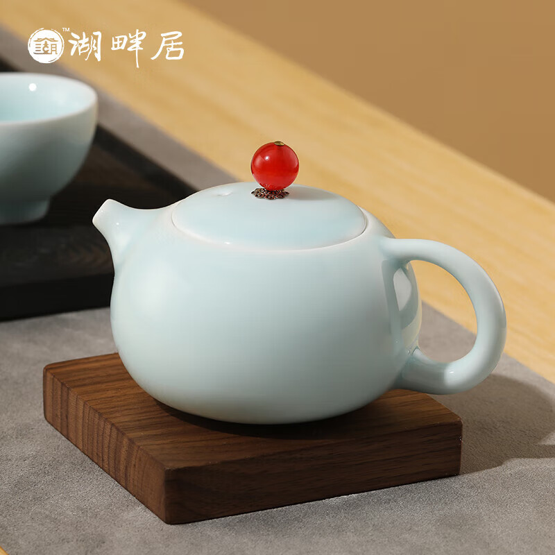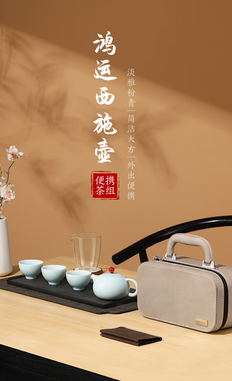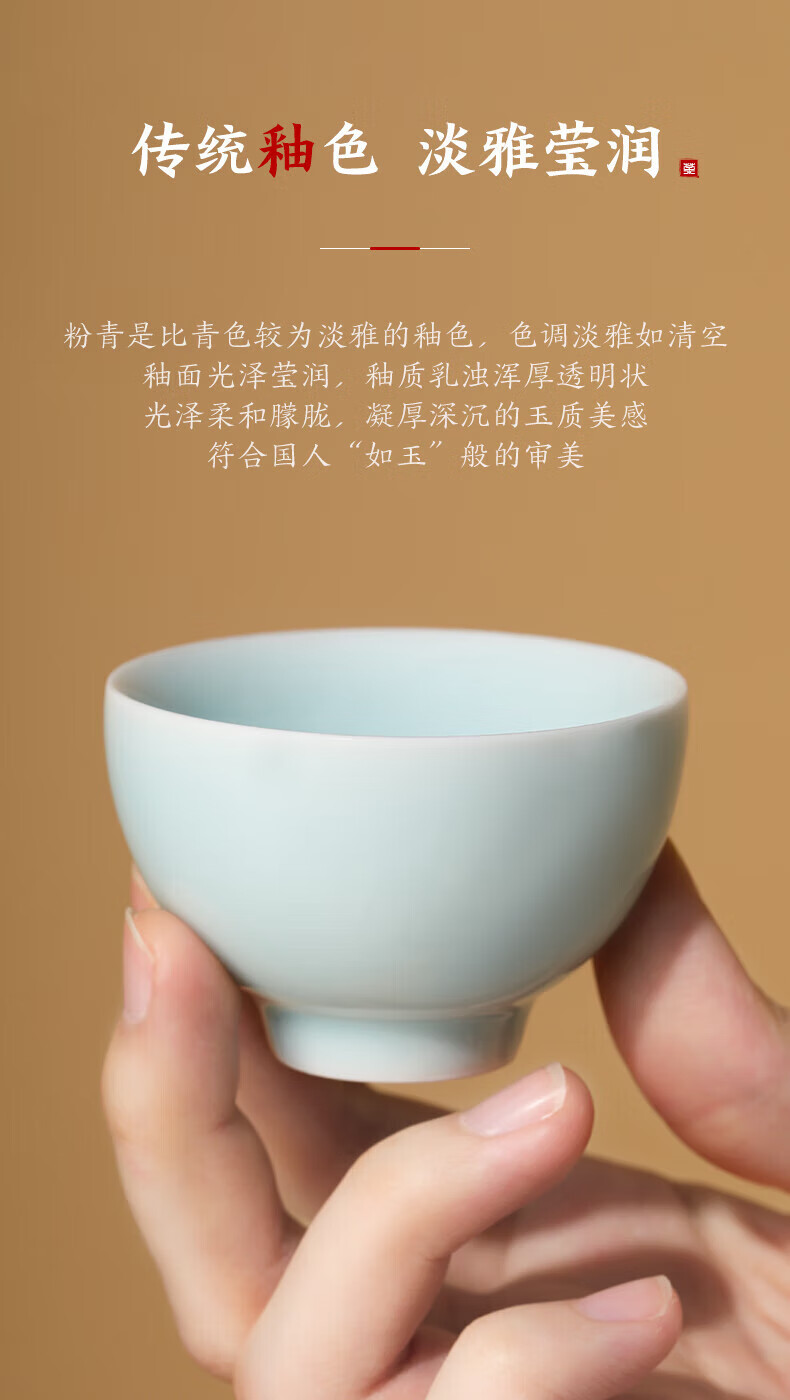 随身便携的茶艺小套装,一套多件,满足日常泡茶需求;传统的粉青釉色,淡雅莹润,如凝厚深沉的玉质美感;鸿运当头,红玛瑙盖纽,有富贵的象征,器如其名