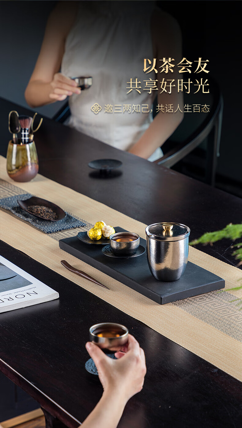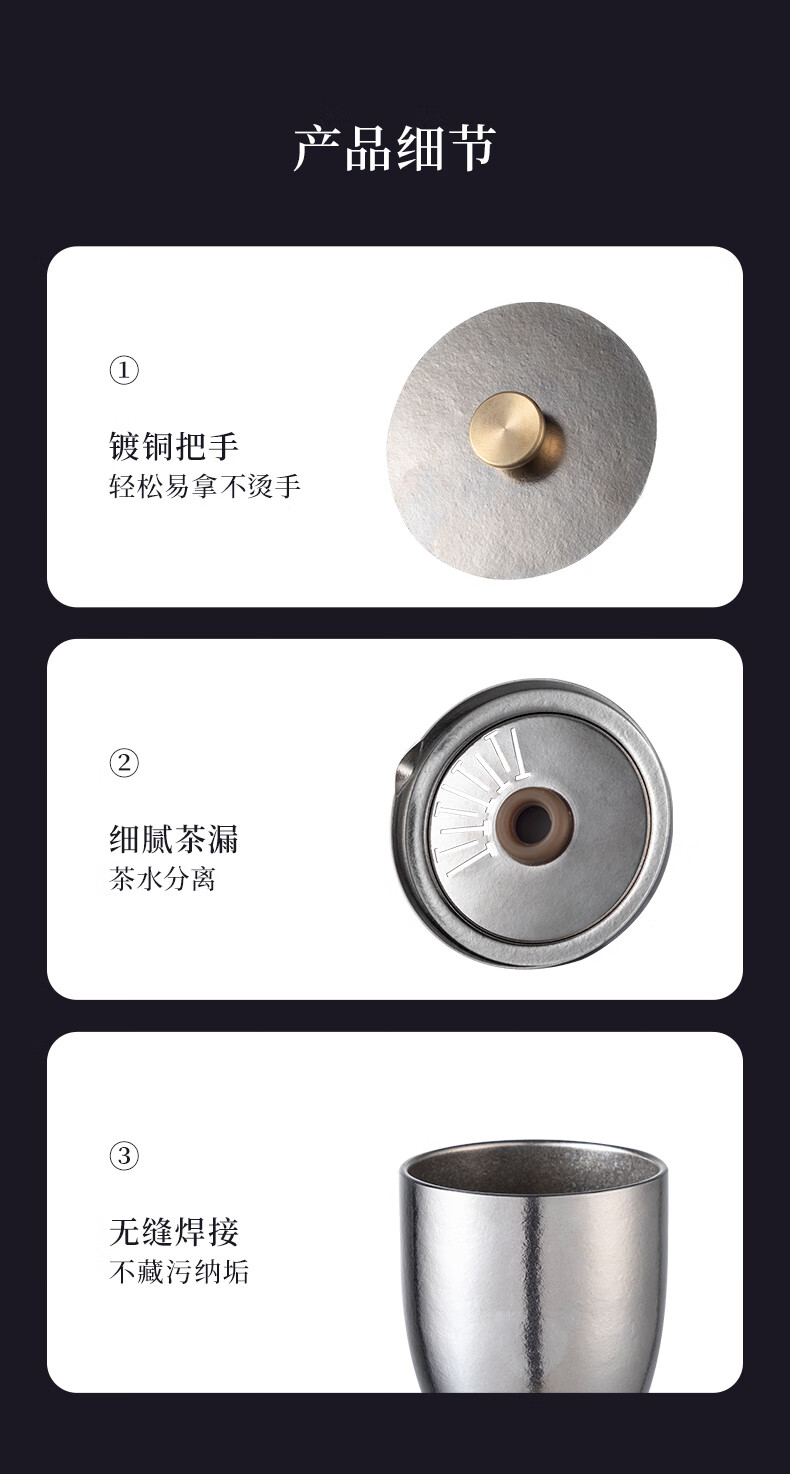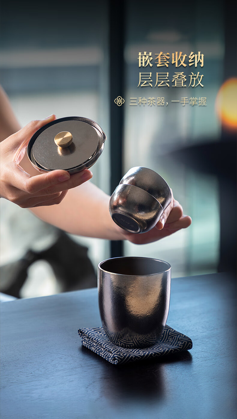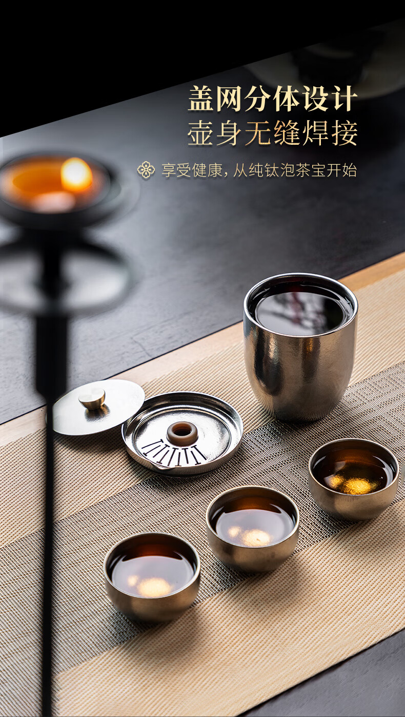 一壶三杯,内外纯钛。轻享每刻,更有实力。;纯真纯钛,天然耐腐,随时随地享受新鲜生活;节省空间,极致收纳,一壶三杯层层叠放
