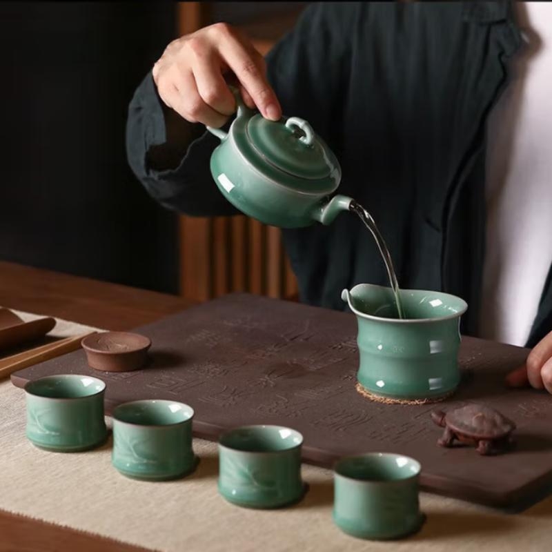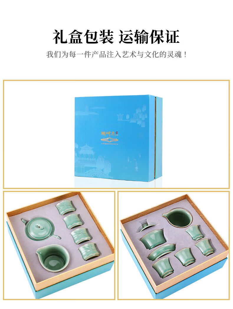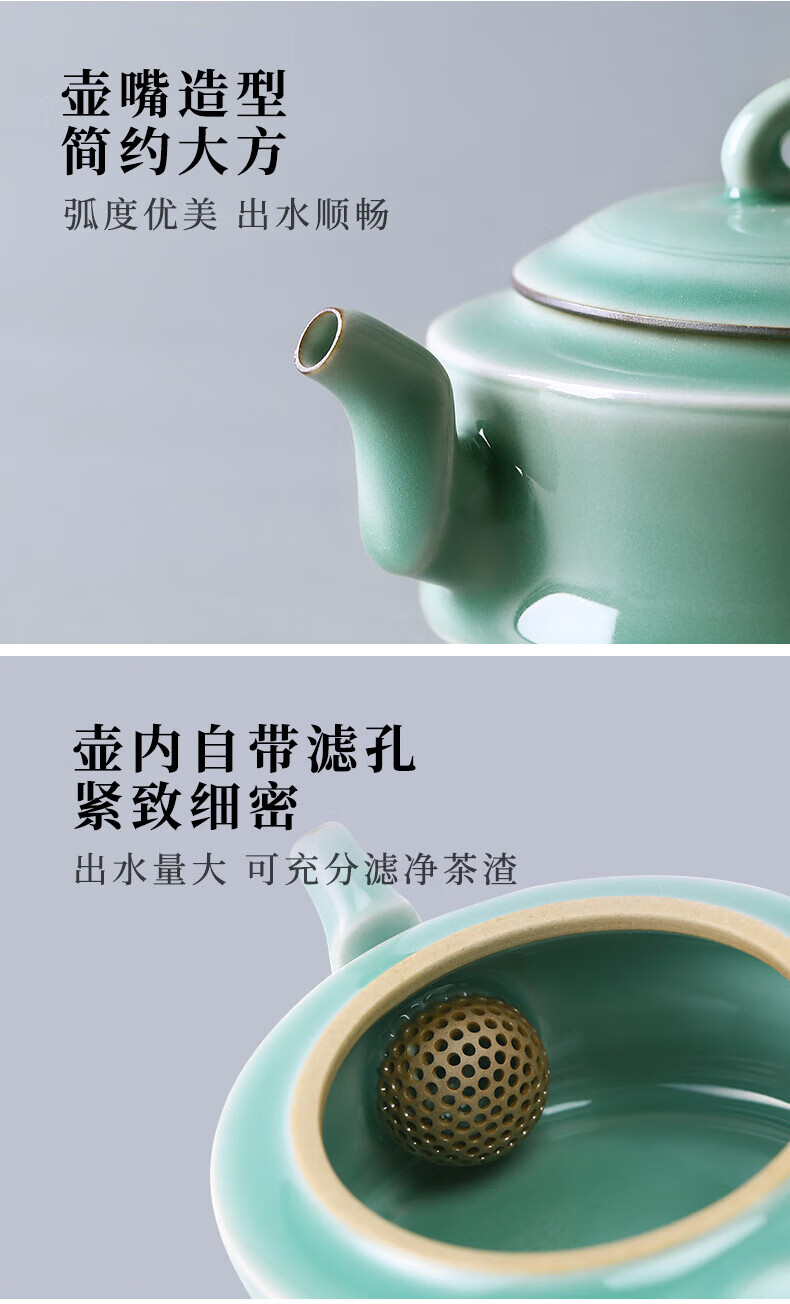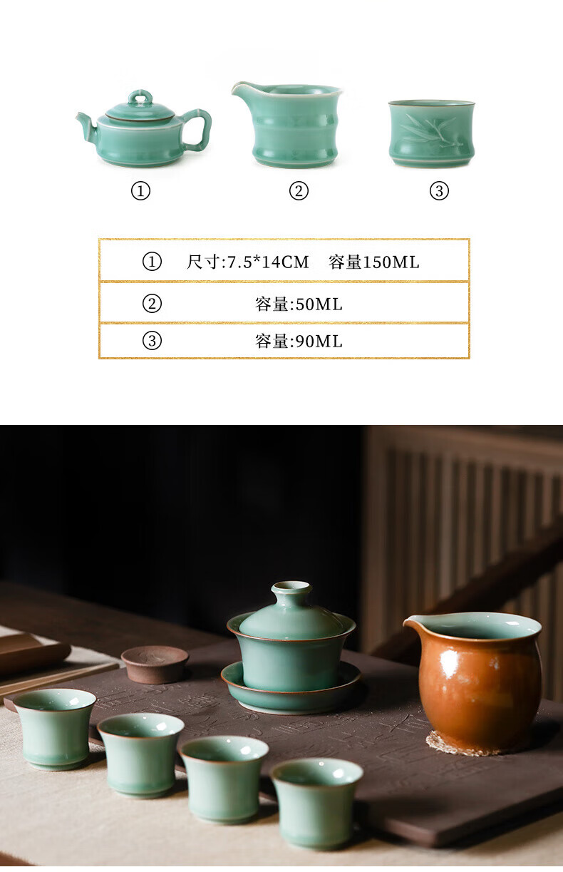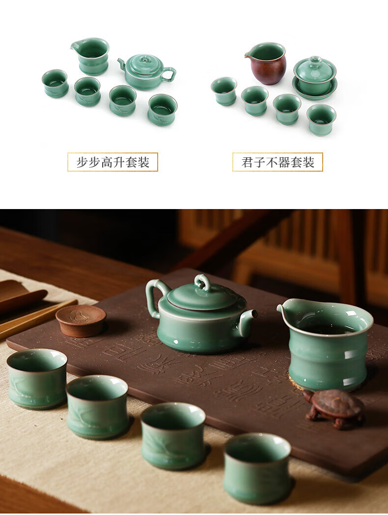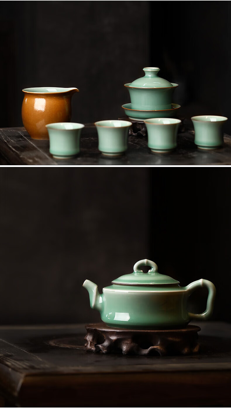 一套多件,自然成席,满足日常居家商务办公招待所用;材质为龙泉青瓷,宋代五大名窑之一;釉层肥厚如凝脂,釉面温润莹澈釉下气泡细密均匀