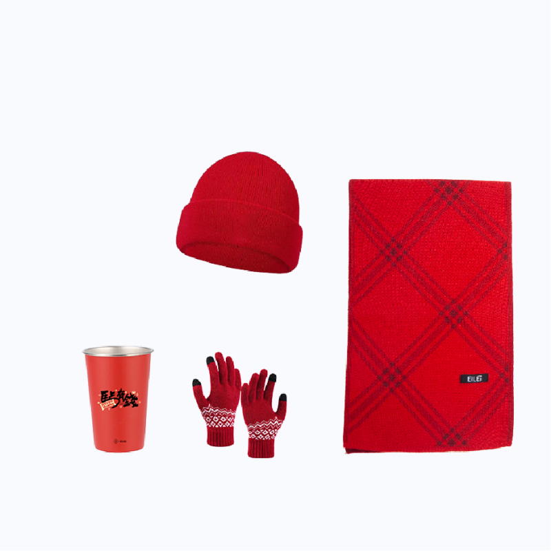 材质:围巾:晴纶+聚酯纤维 帽子手套:聚酯纤维 杯子:304不锈钢