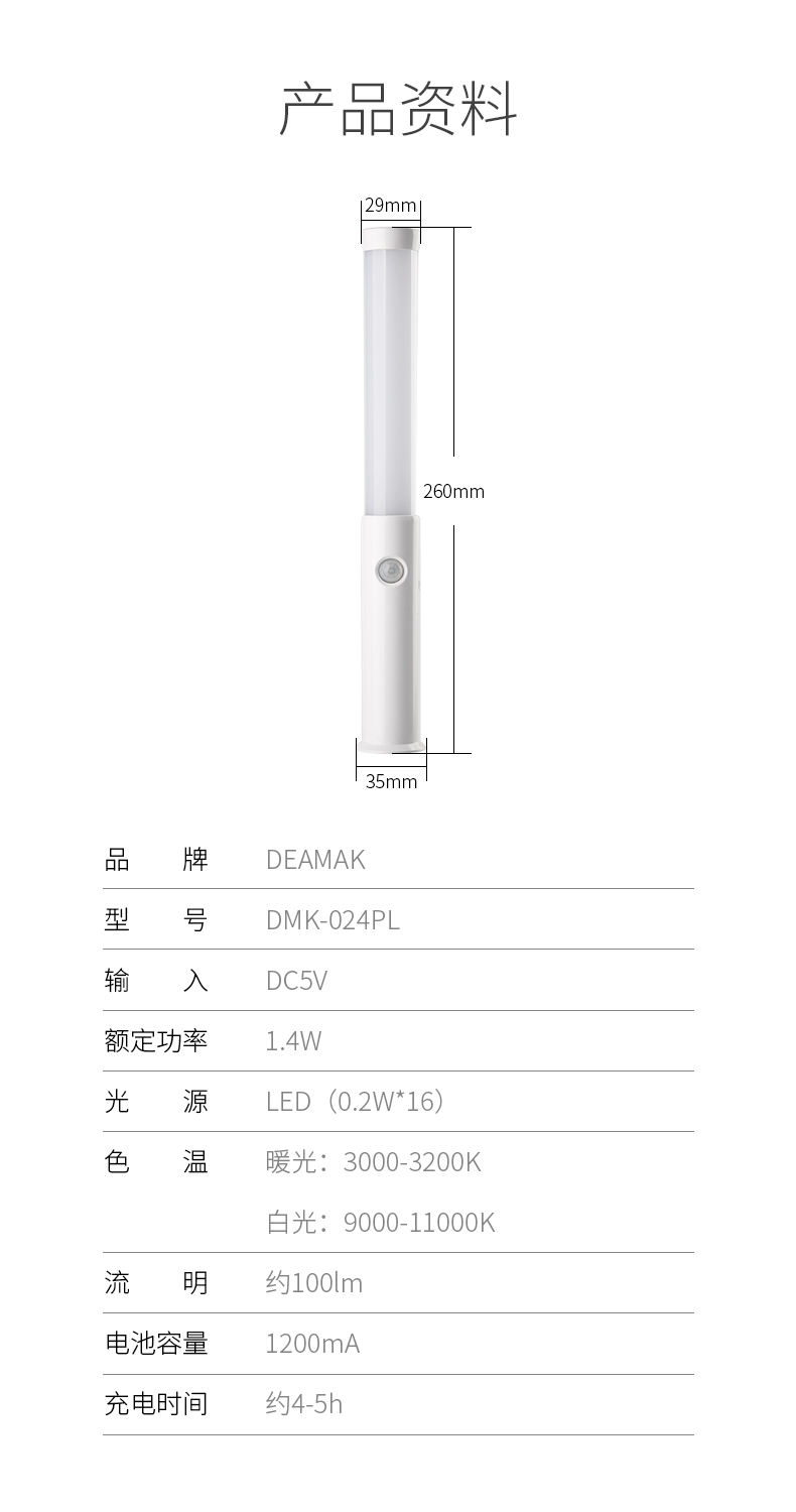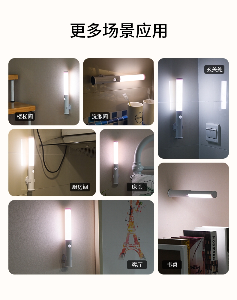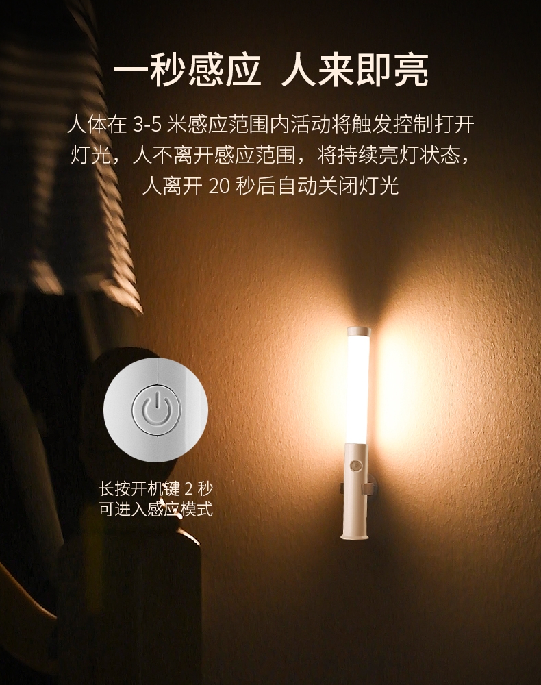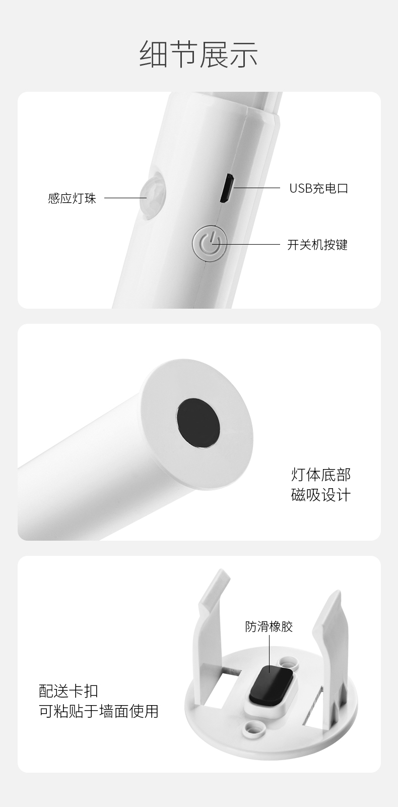 自动感应 点亮夜的黑;可手持照明 USB充电 ;人体感应 3种光源