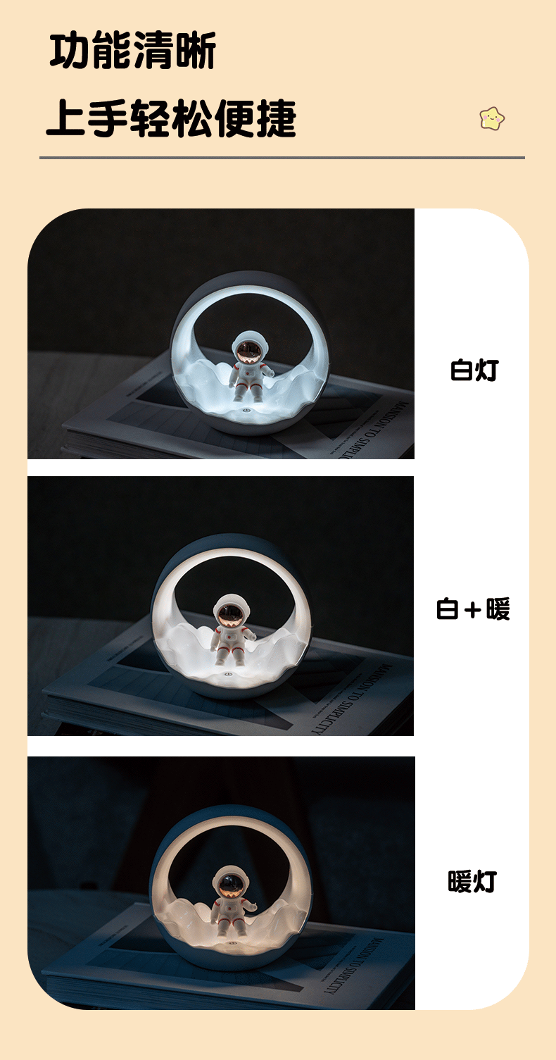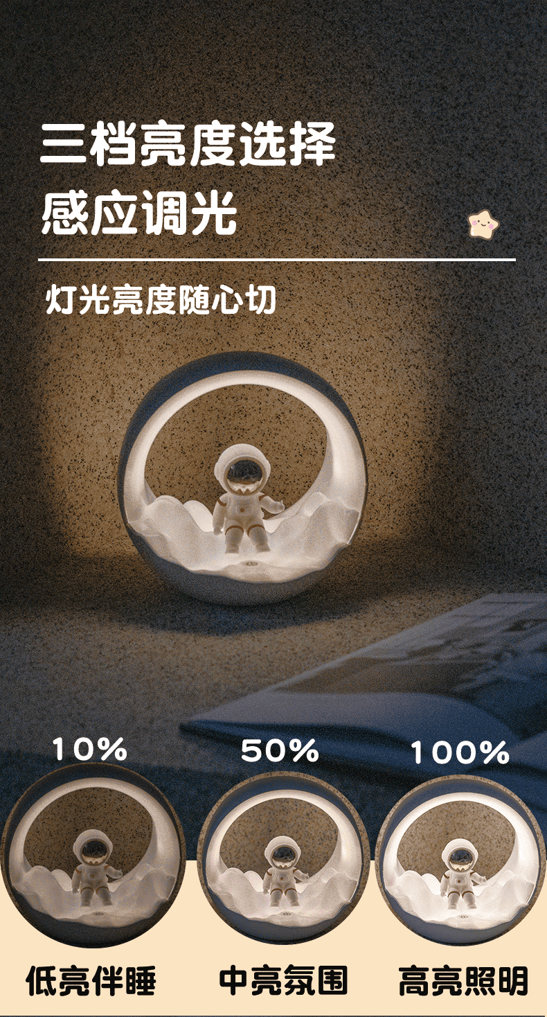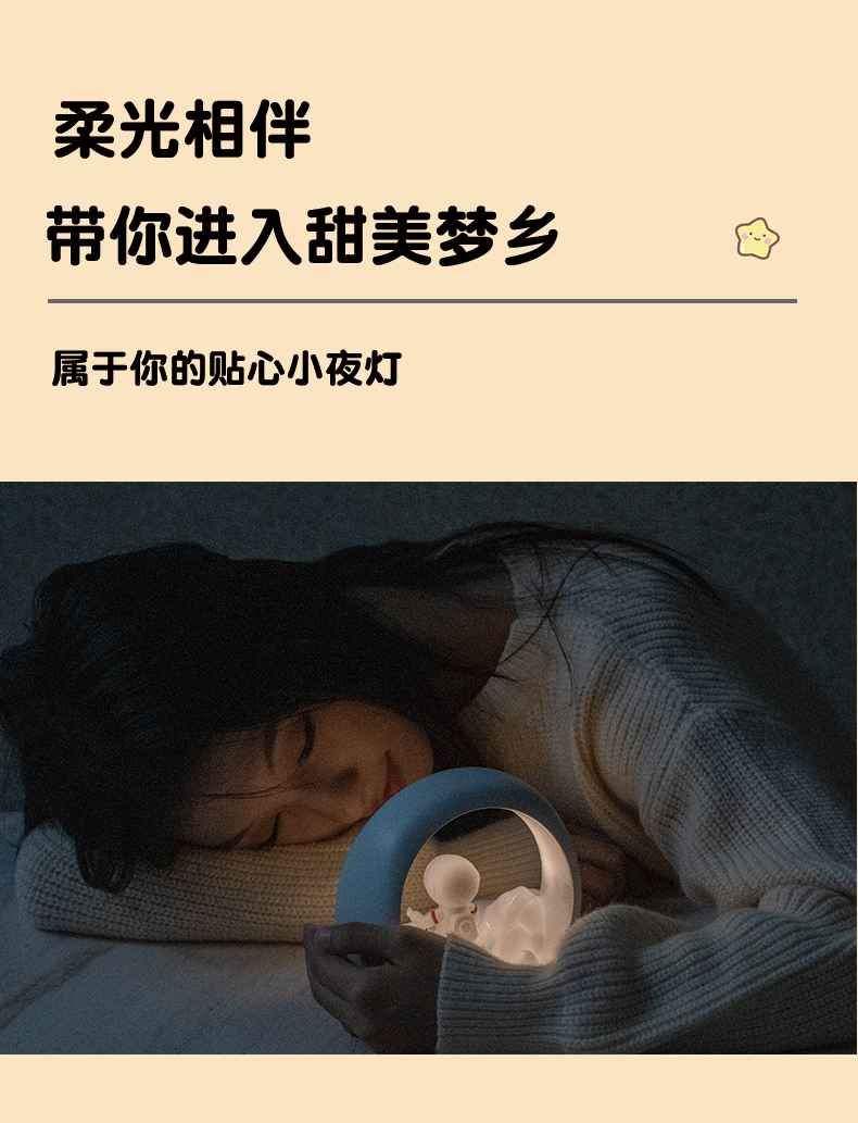 200mAh锂电池、触摸开关;三档调光、拍拍调亮、柔光伴睡;支持小批量定制LOGO