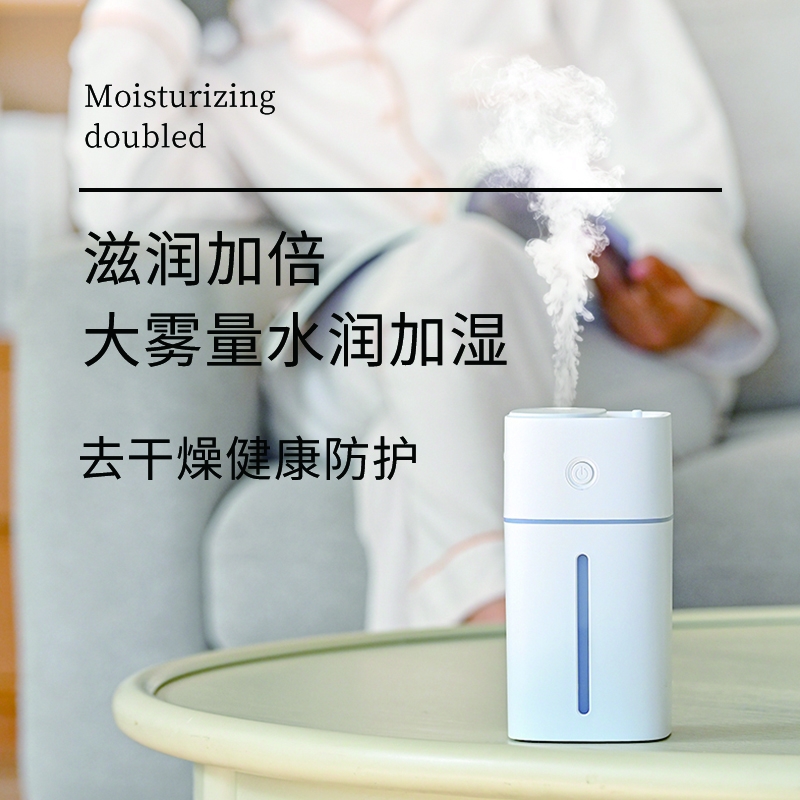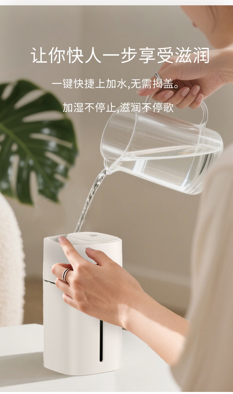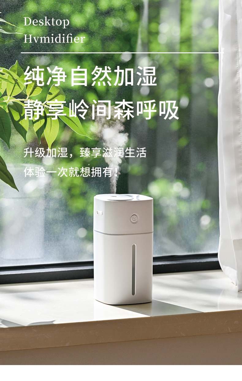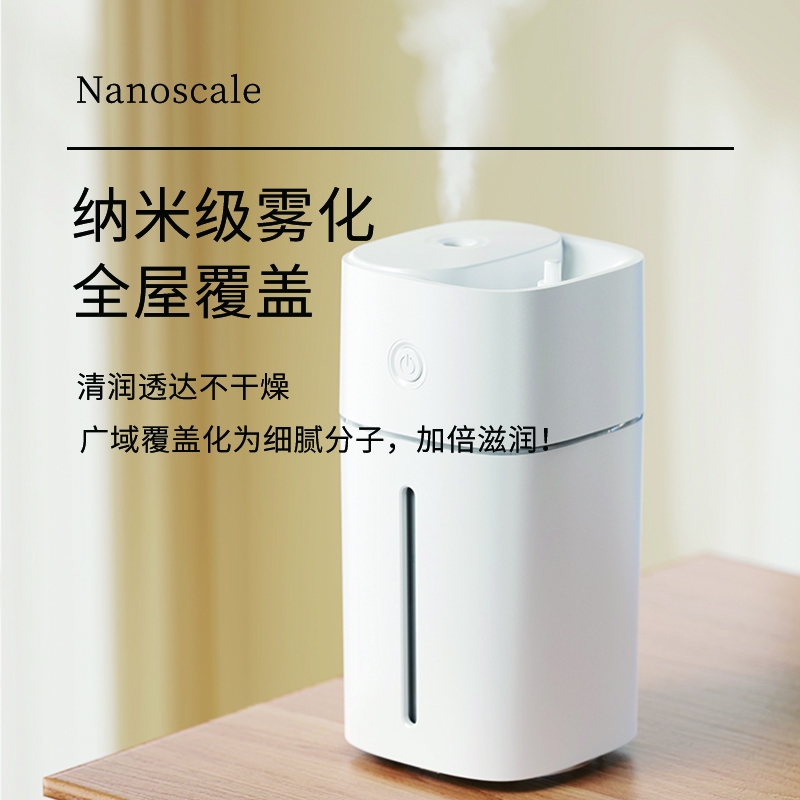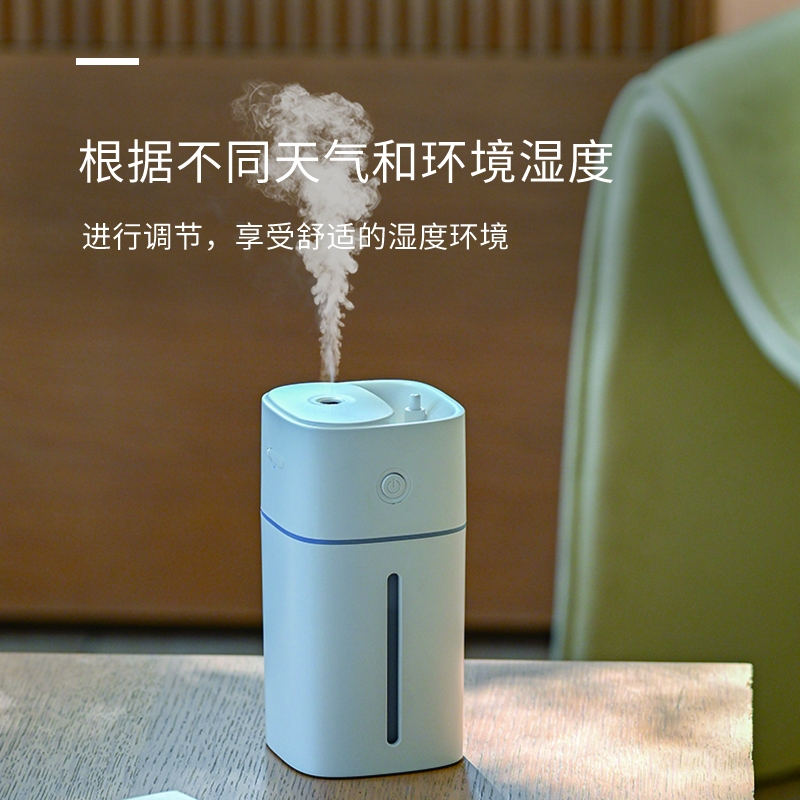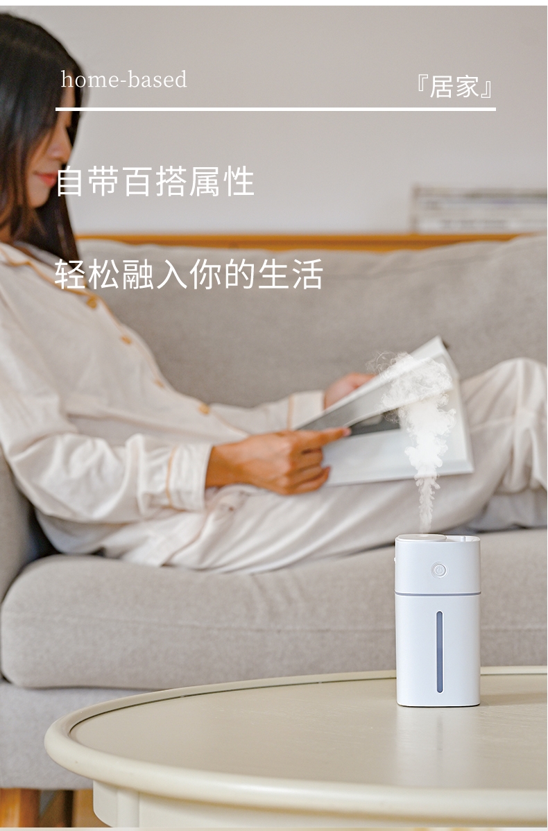 便携上加水设计、间歇14H/持续喷7H;2000毫安电池无线加湿、350ML容量;电池使用时间连续喷雾5.2h, 间歇喷雾10.4h