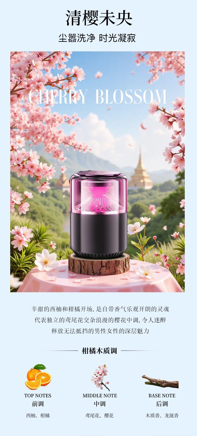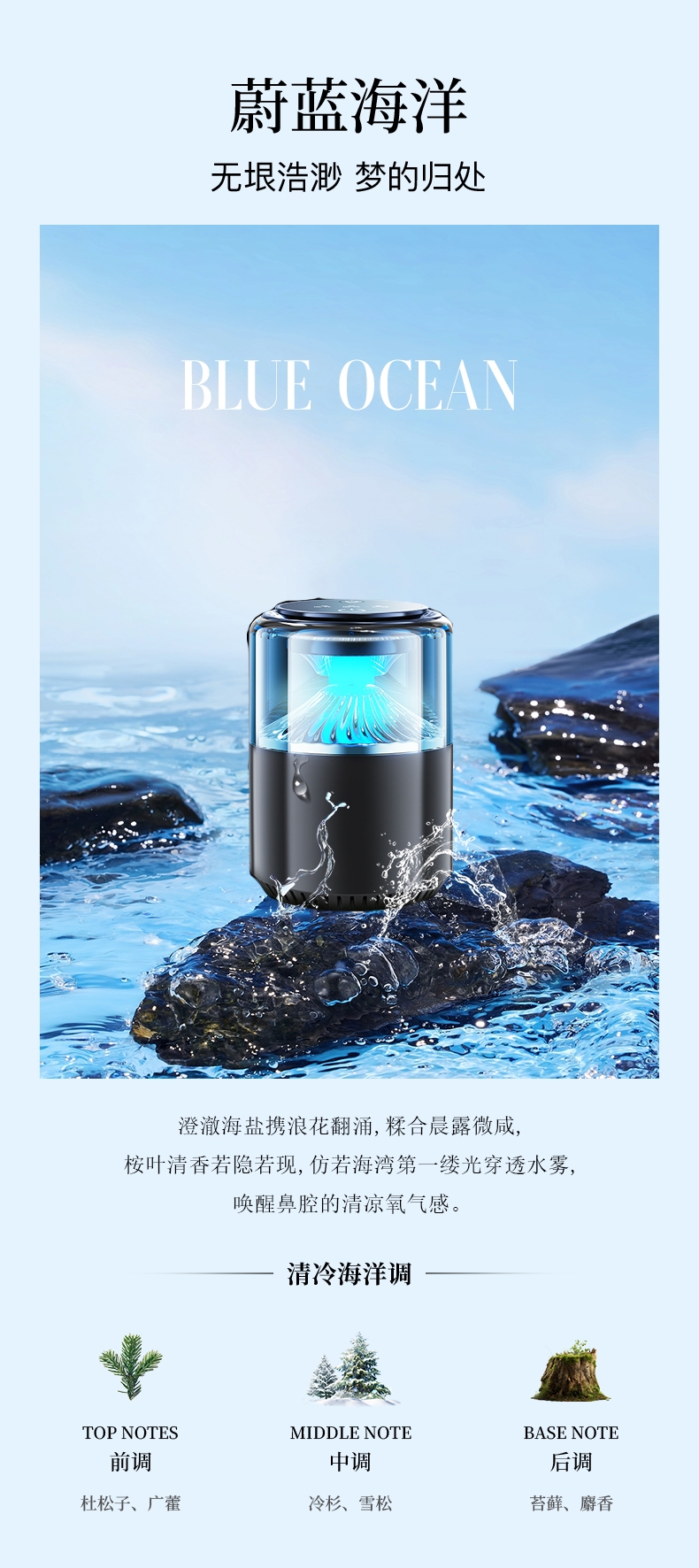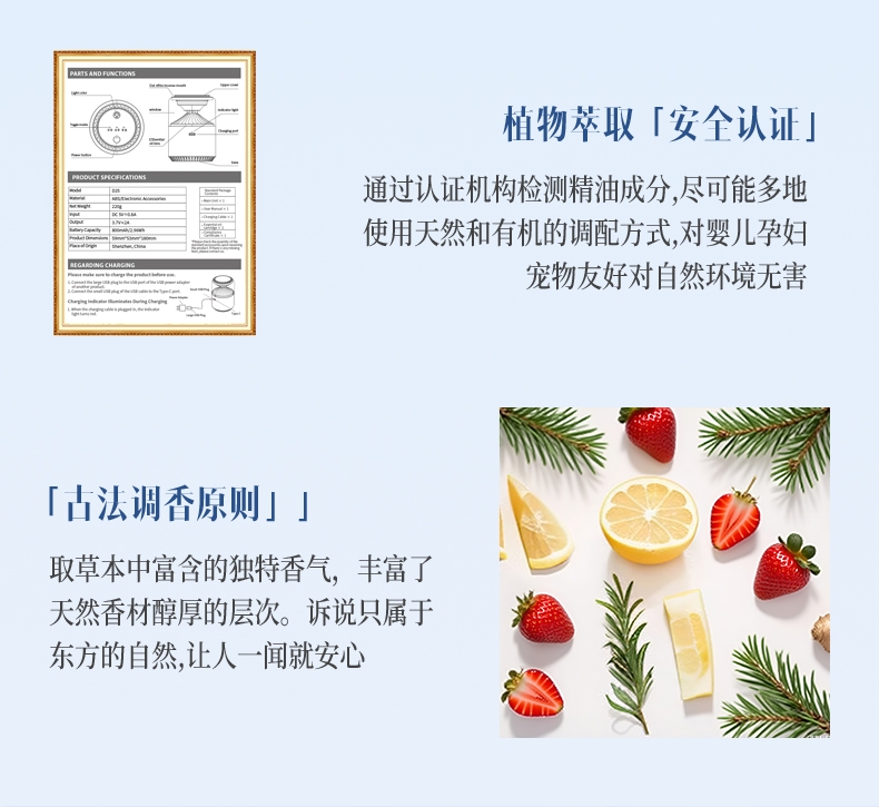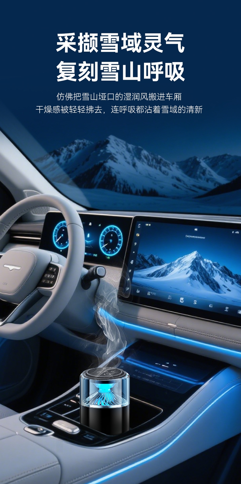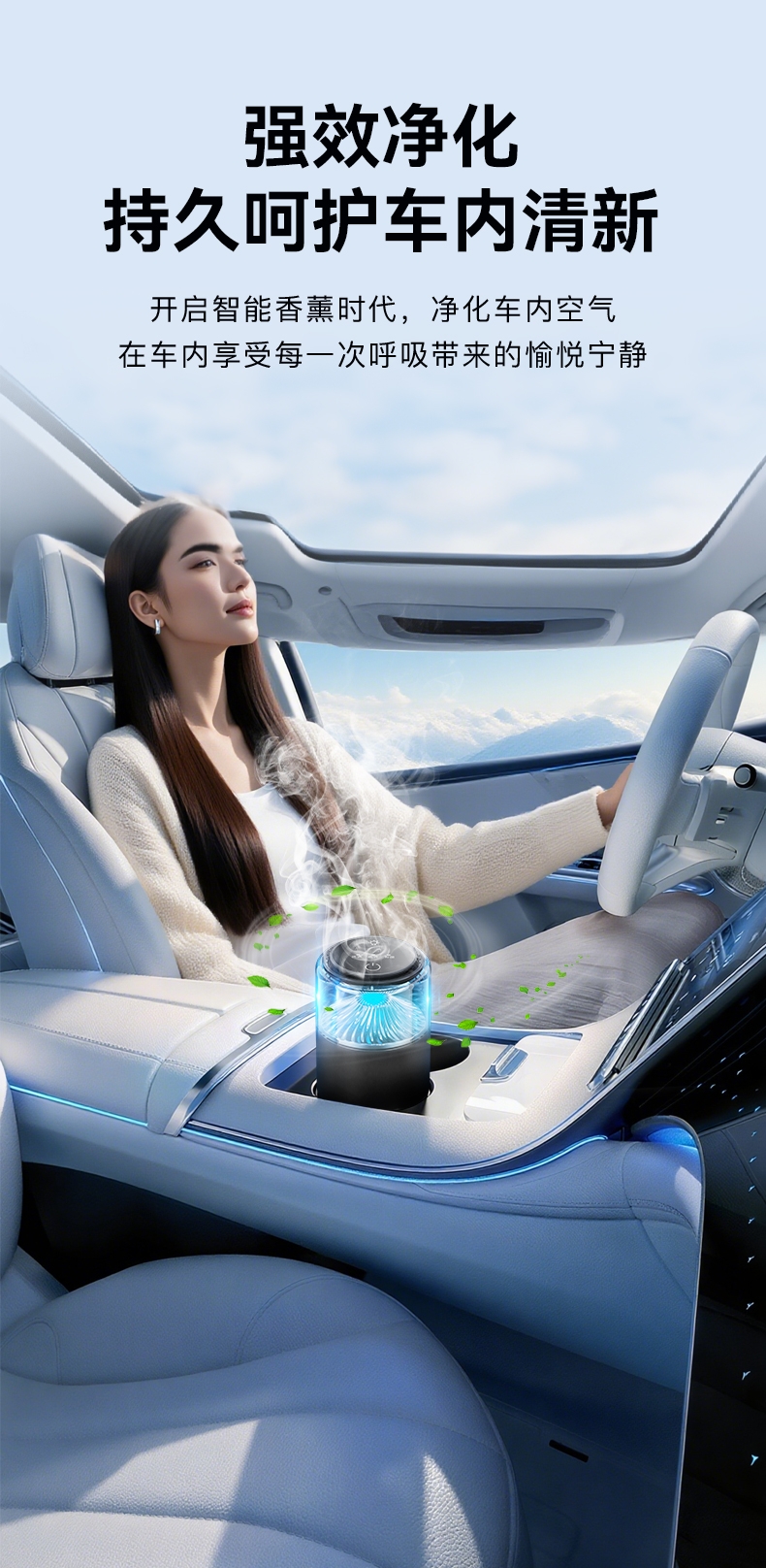 随车启动,三种模式可选,喷雾式散香;配高级精油,可替换,带炫彩氛围灯;800mAh电池,五种香型可选、高级金属色