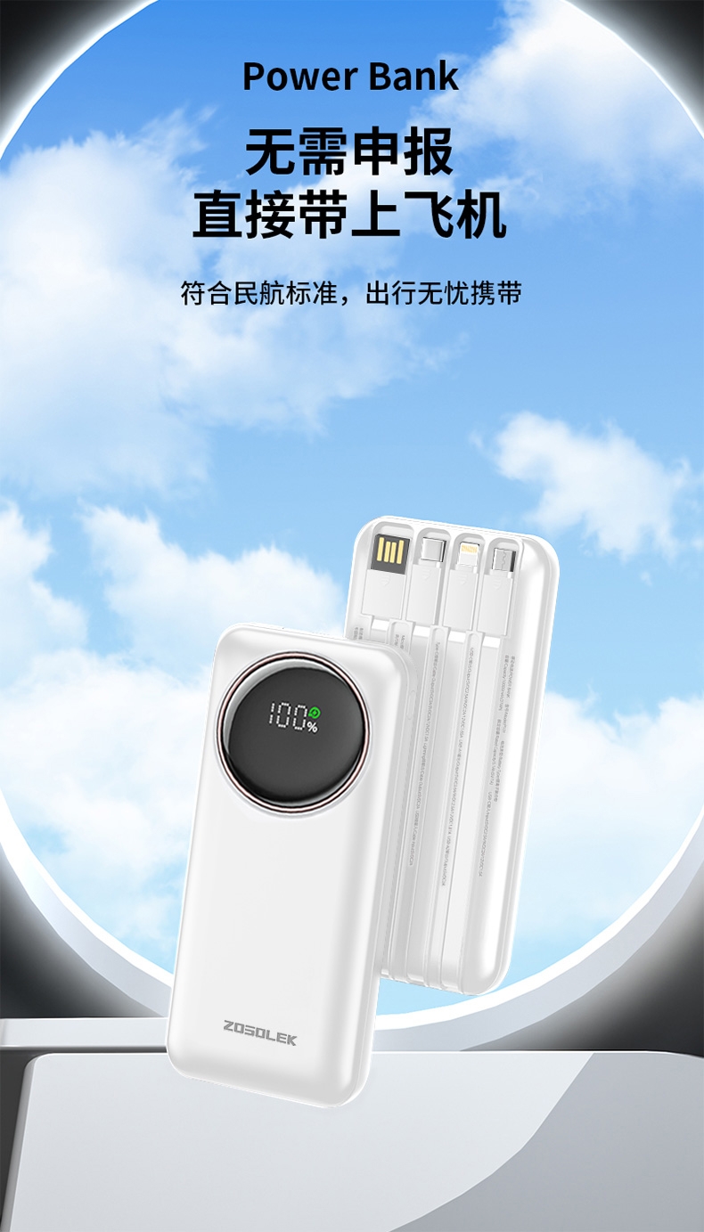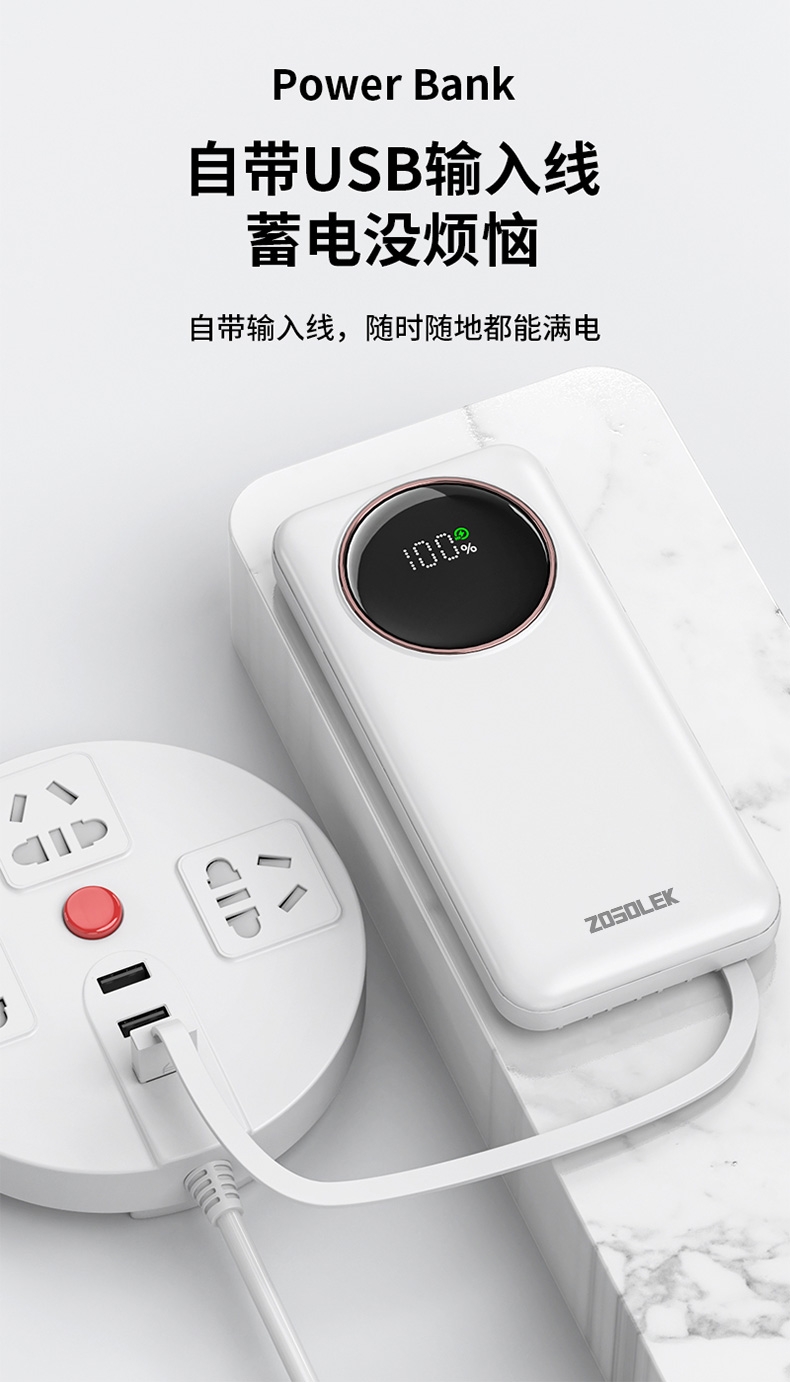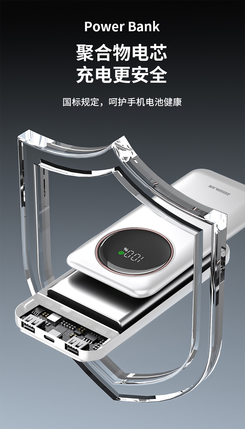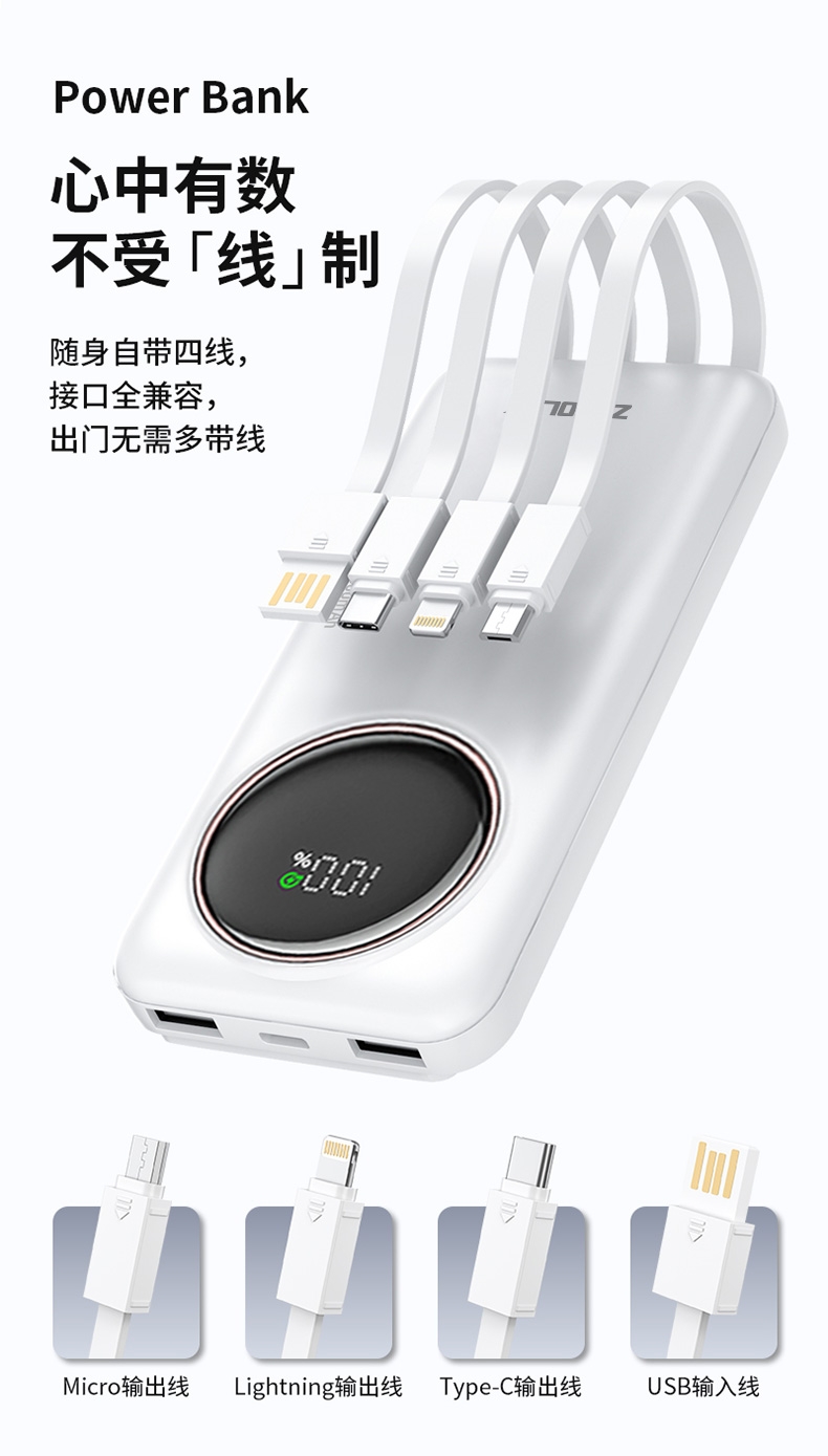 实标10000mAh容量,不玩虚假;自带2种输入方式及6种输出方式,使用方便;支持22.5W超级闪充及PD快充协议,快速充电