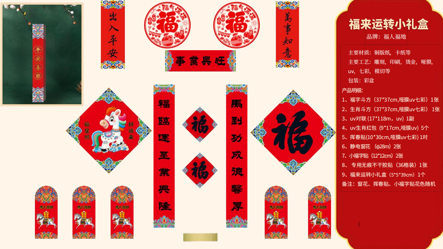 福人福地 马年对联窗花礼盒