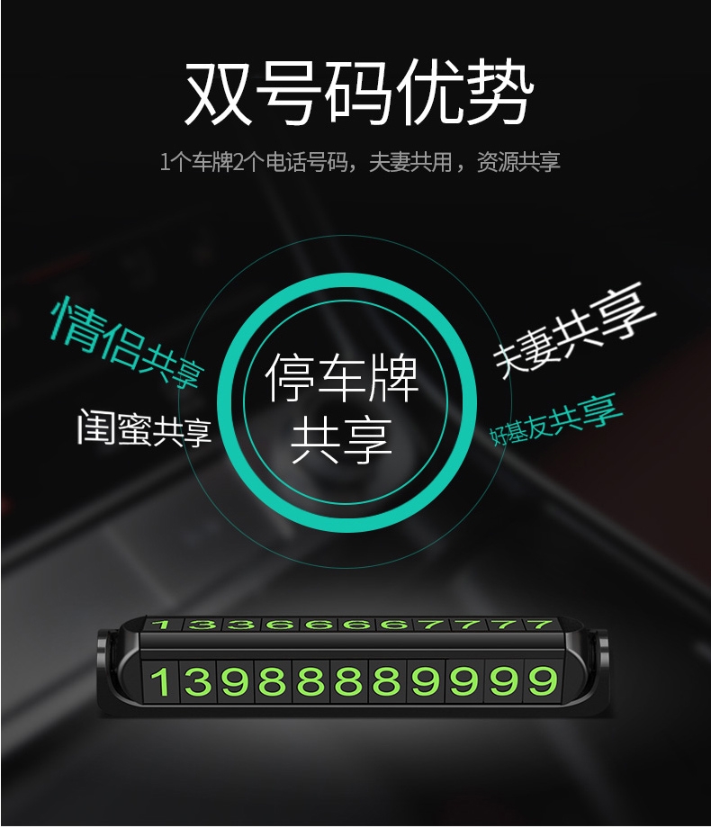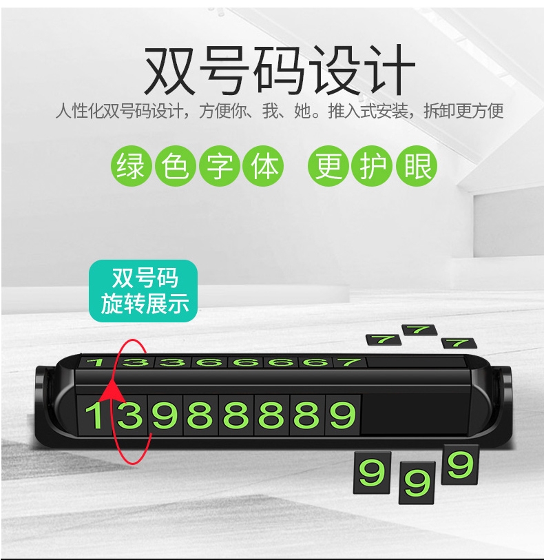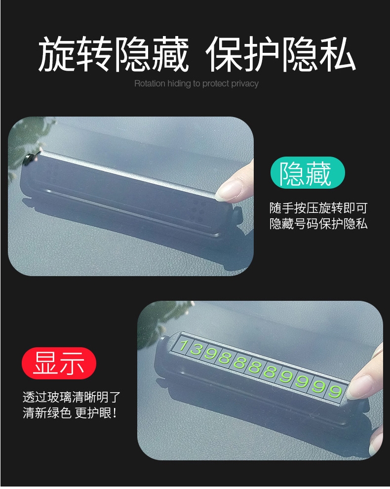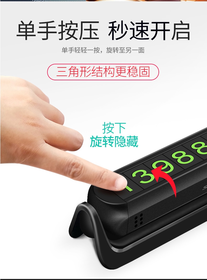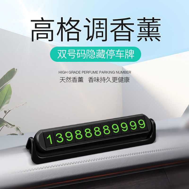 使用方便,一键闭合开关显示隐藏号码;高品质背胶粘贴,稳固牢靠,取出也不伤车;带香薰功能净化车内空气,祛除异味,给您大自然的清新