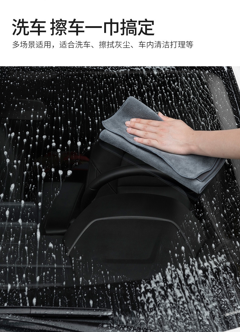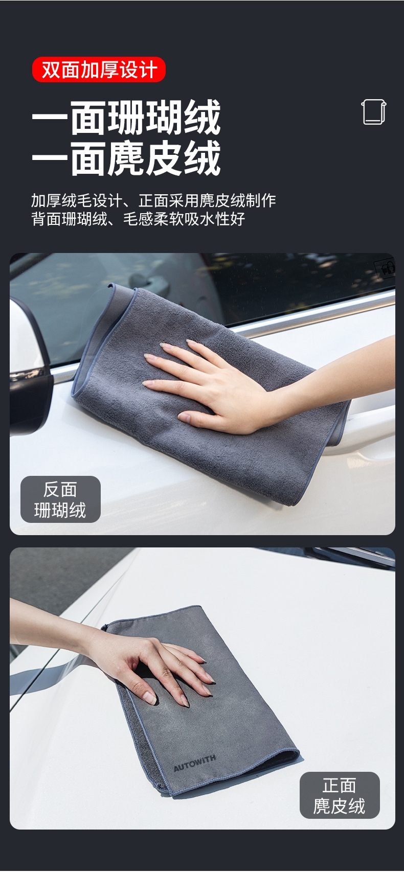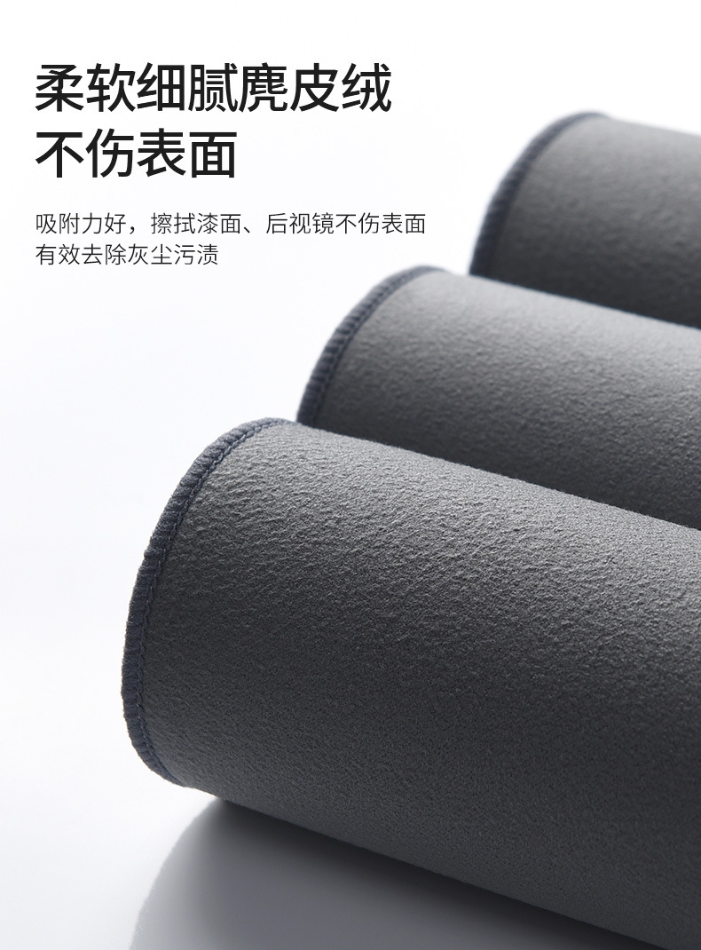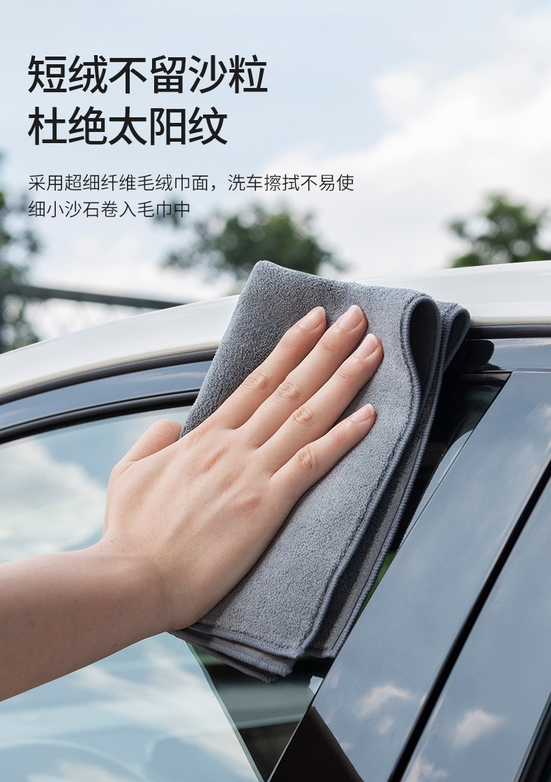 创新采用麂皮绒珊瑚绒双面材质,实现一巾多用;短毛珊瑚绒细腻柔软不留沙粒硬物,防止表面划伤;产品采用灰黑耐脏色系,易清洗,实用性强
