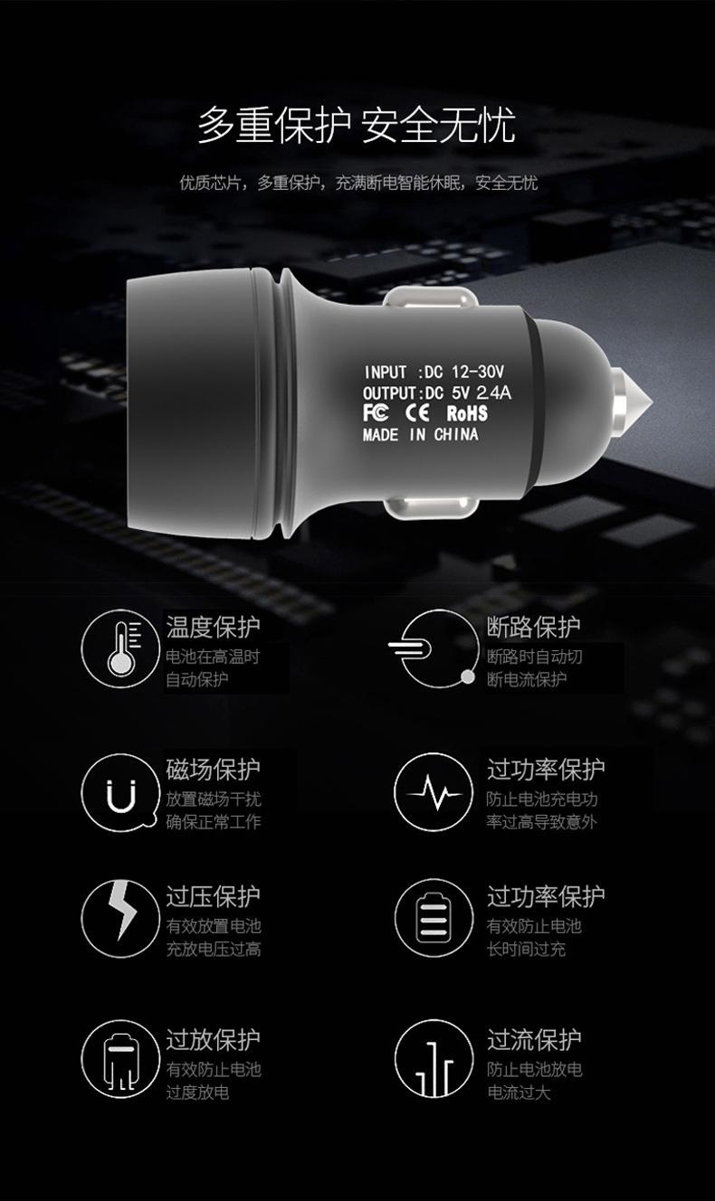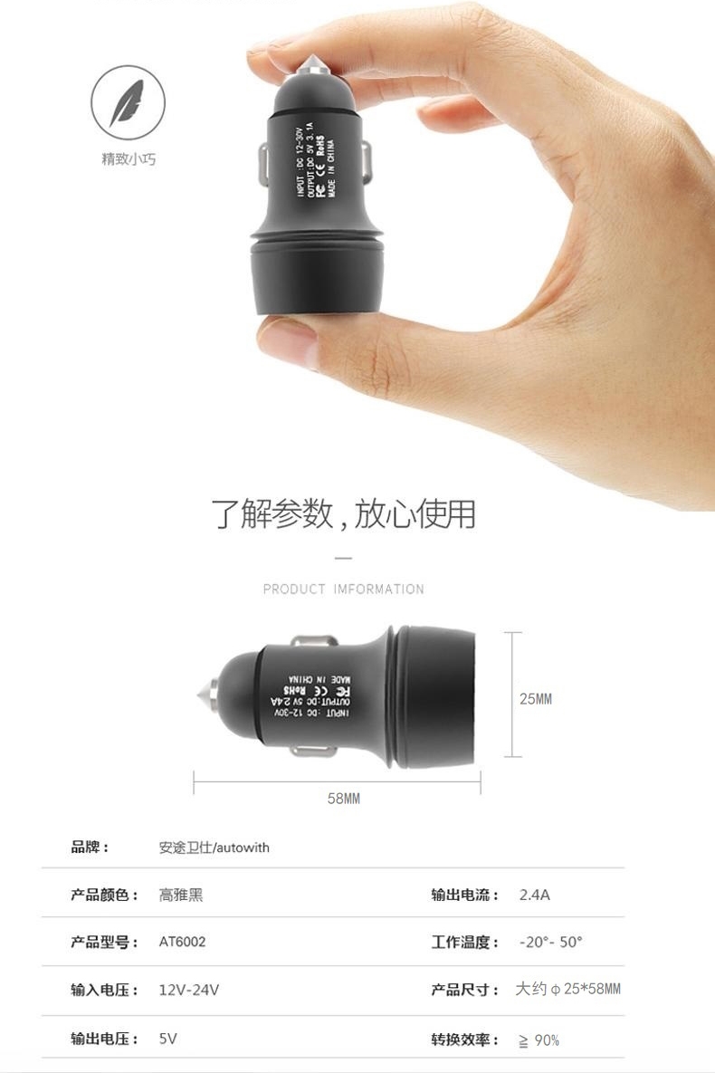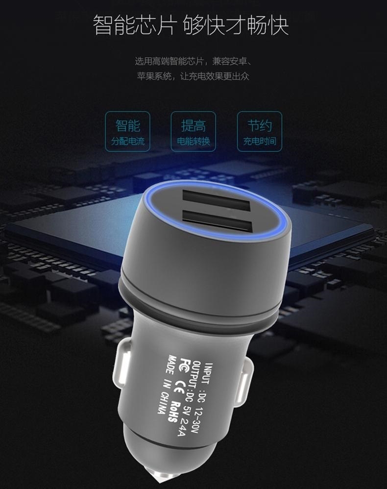 采用全铝合金材质,轻巧精致,质感一流;采用苹果手机磨砂喷砂氧化工艺,色彩亮丽;采用智能识别芯片,智能匹配设备的输入电流