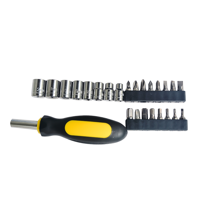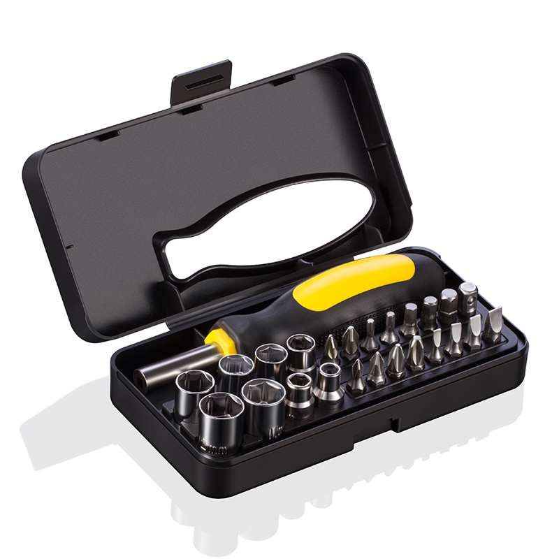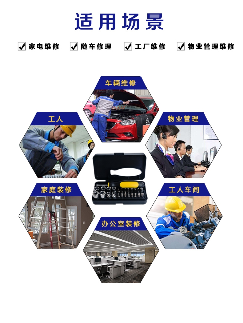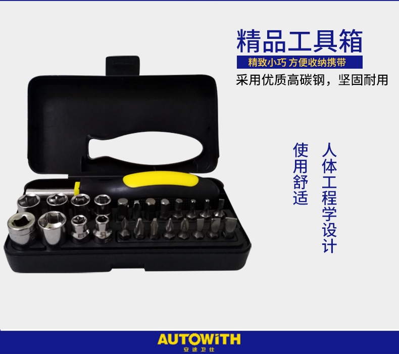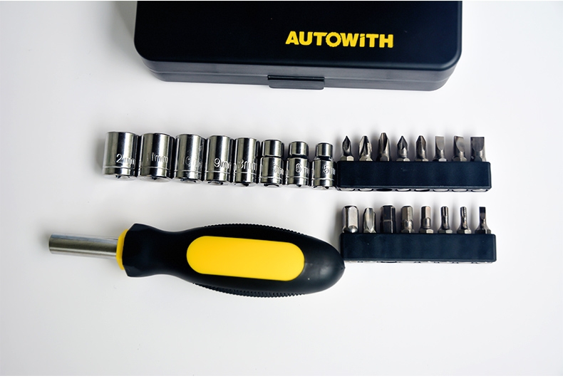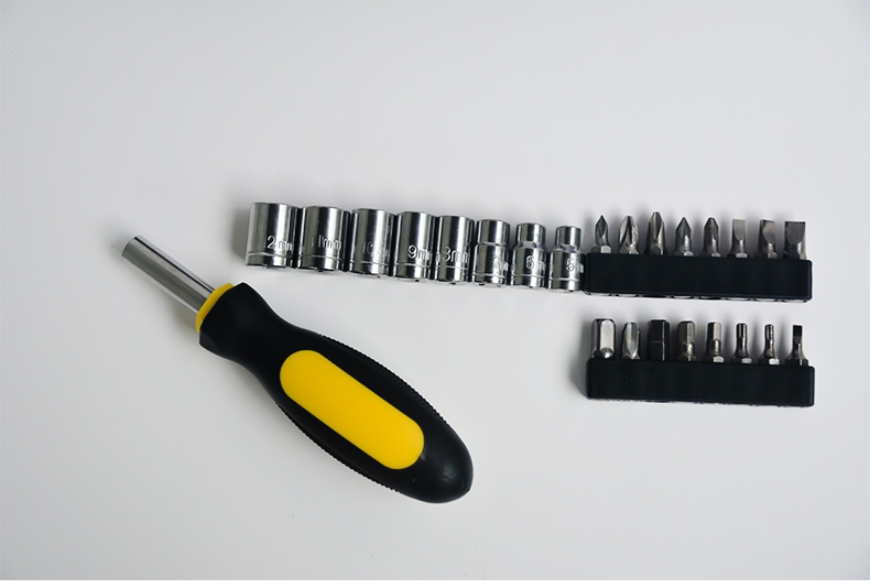 产品组成:16个替换螺丝批头 8个套筒 1把双色螺丝刀手柄
