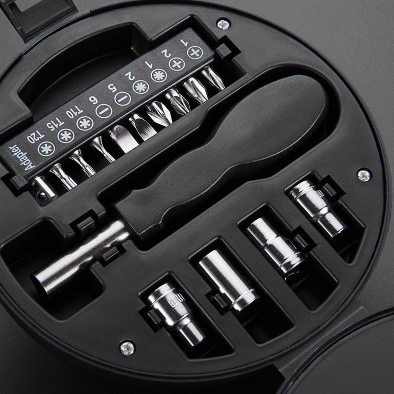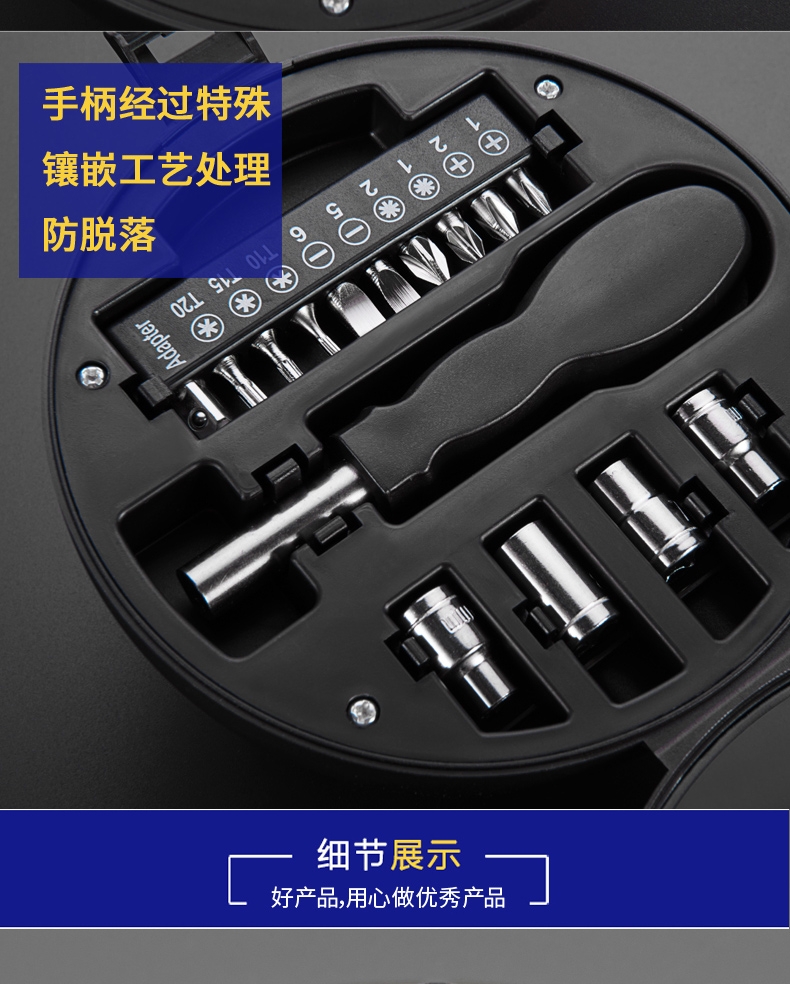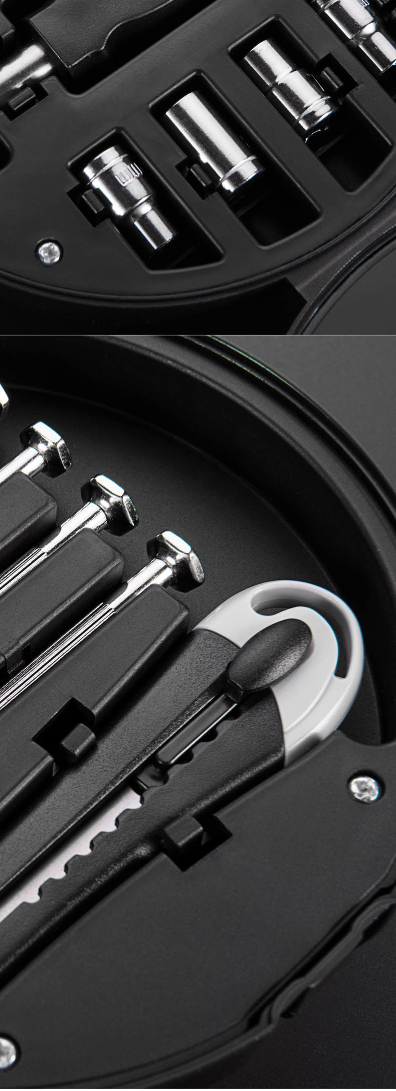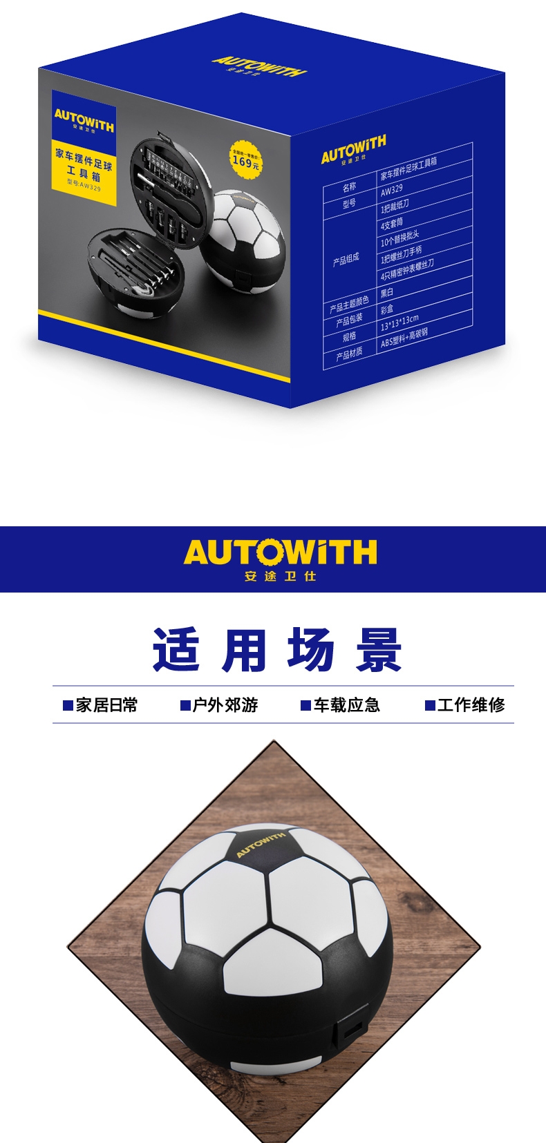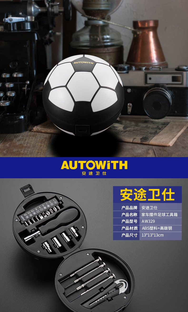 全新足球摆件设计造型,不使用工具的时候可置于桌面;工具采用人体工学造型设计,使用舒适;工具采用优质高碳钢,坚固耐用