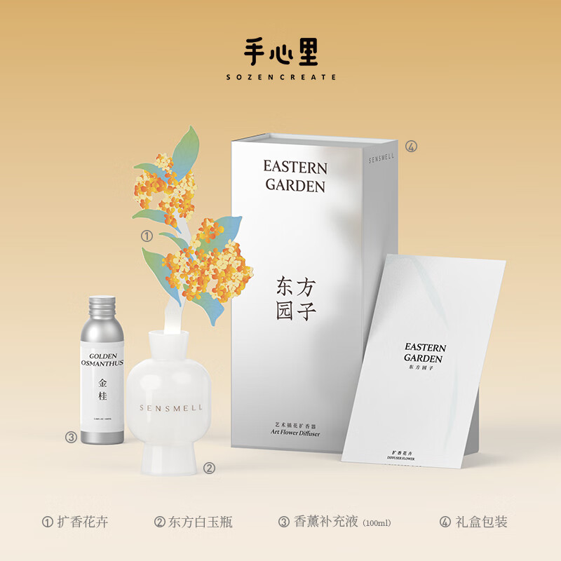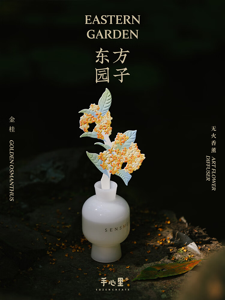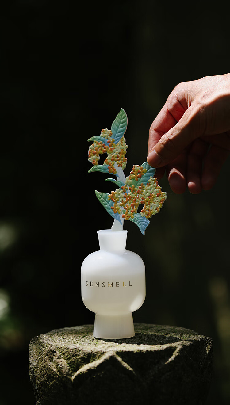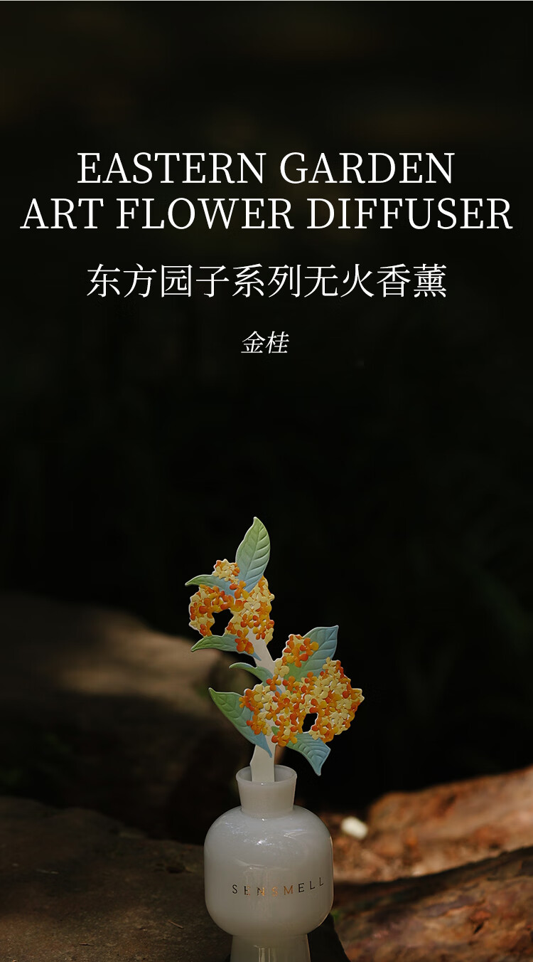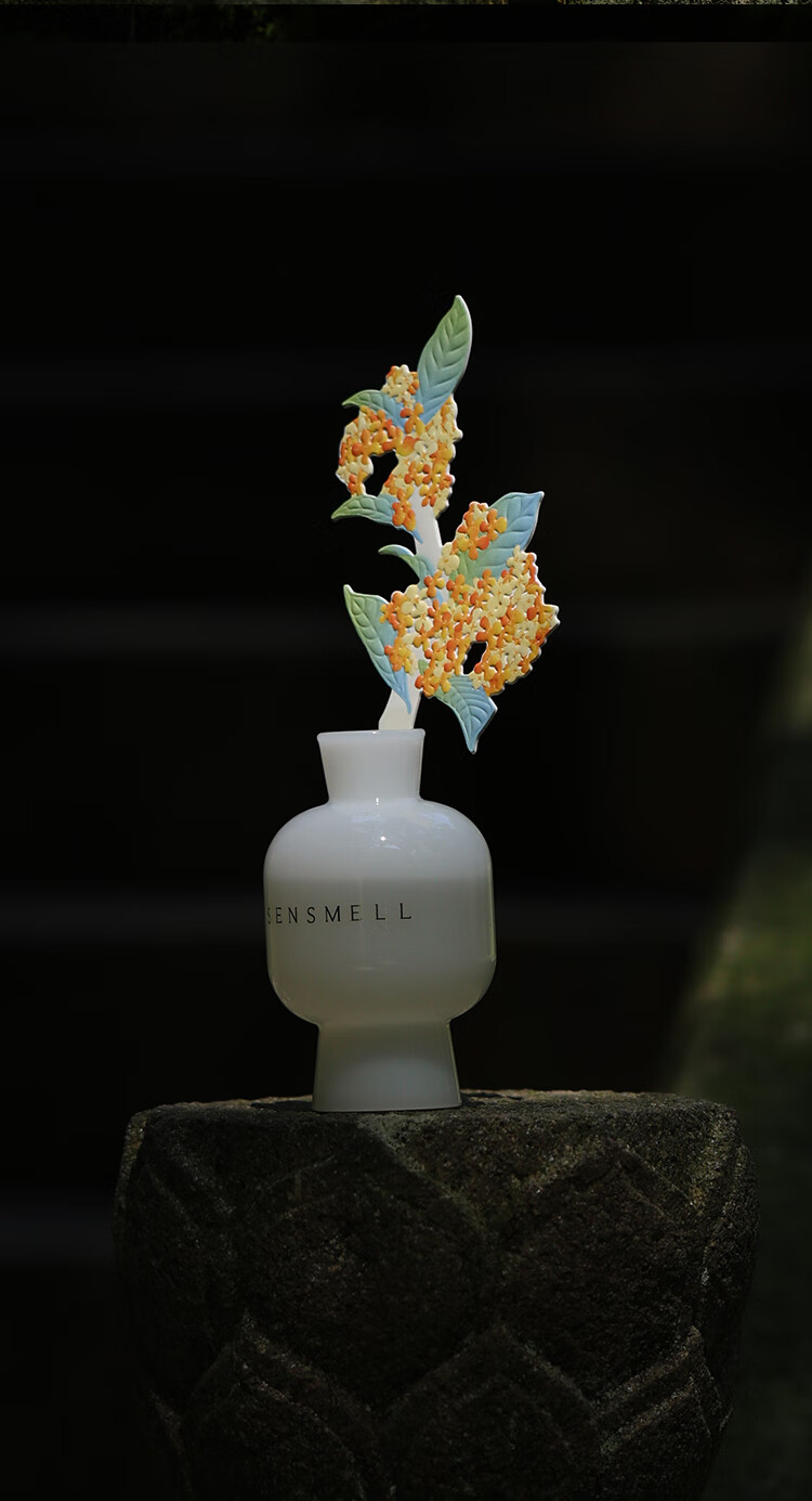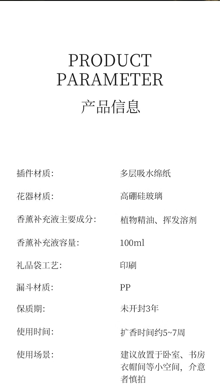 原创设计;无火香氛自然扩香,扩香效果好;人工吹制玻璃花瓶,色泽温润
