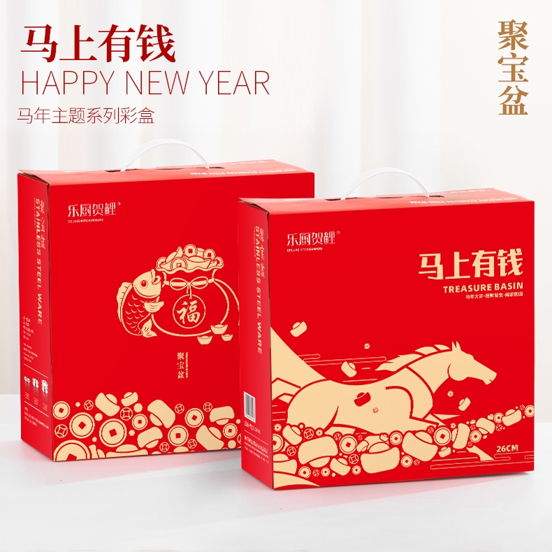 乐厨贺鲤 开门红马上有钱聚宝盆本色单盆