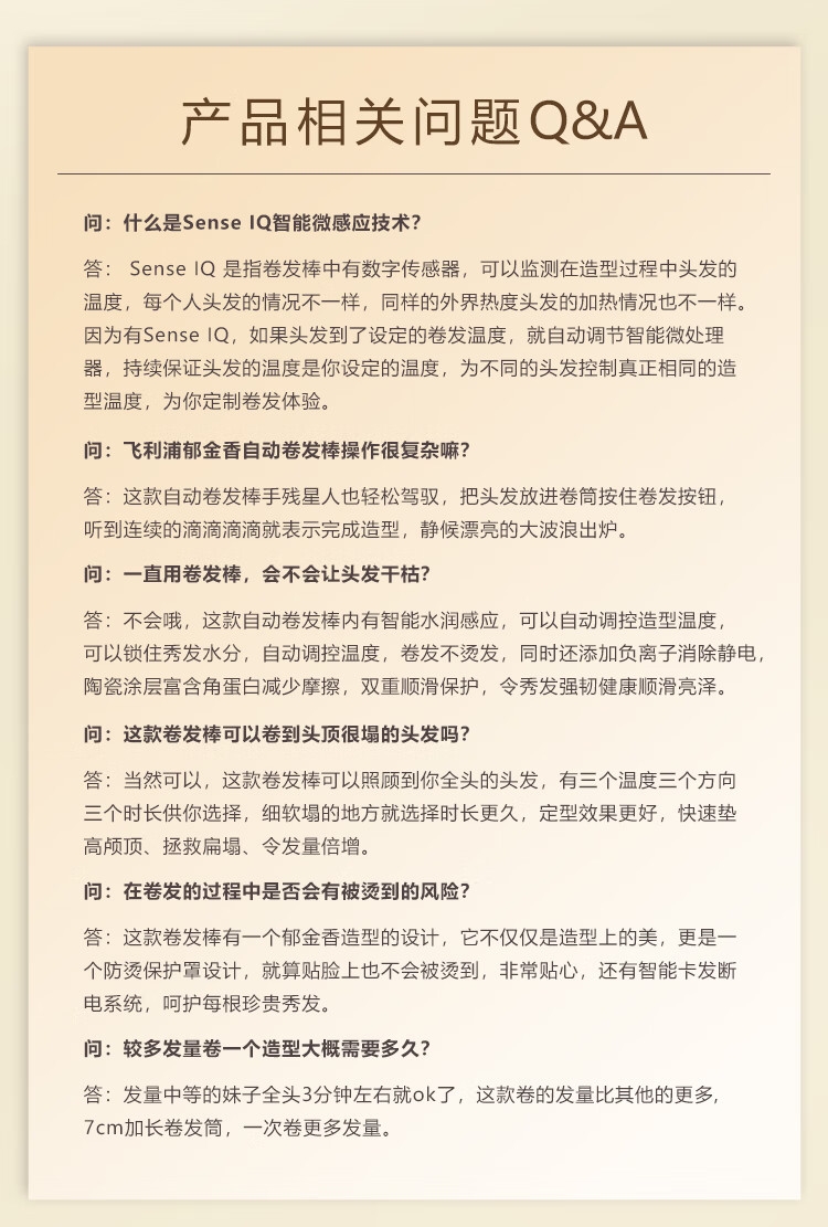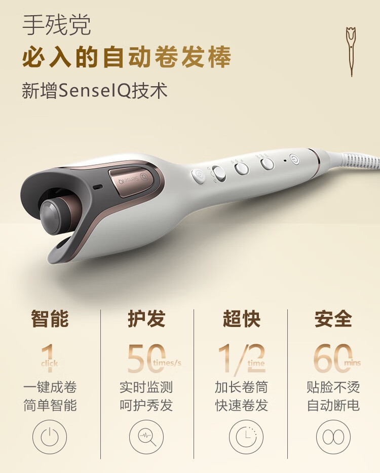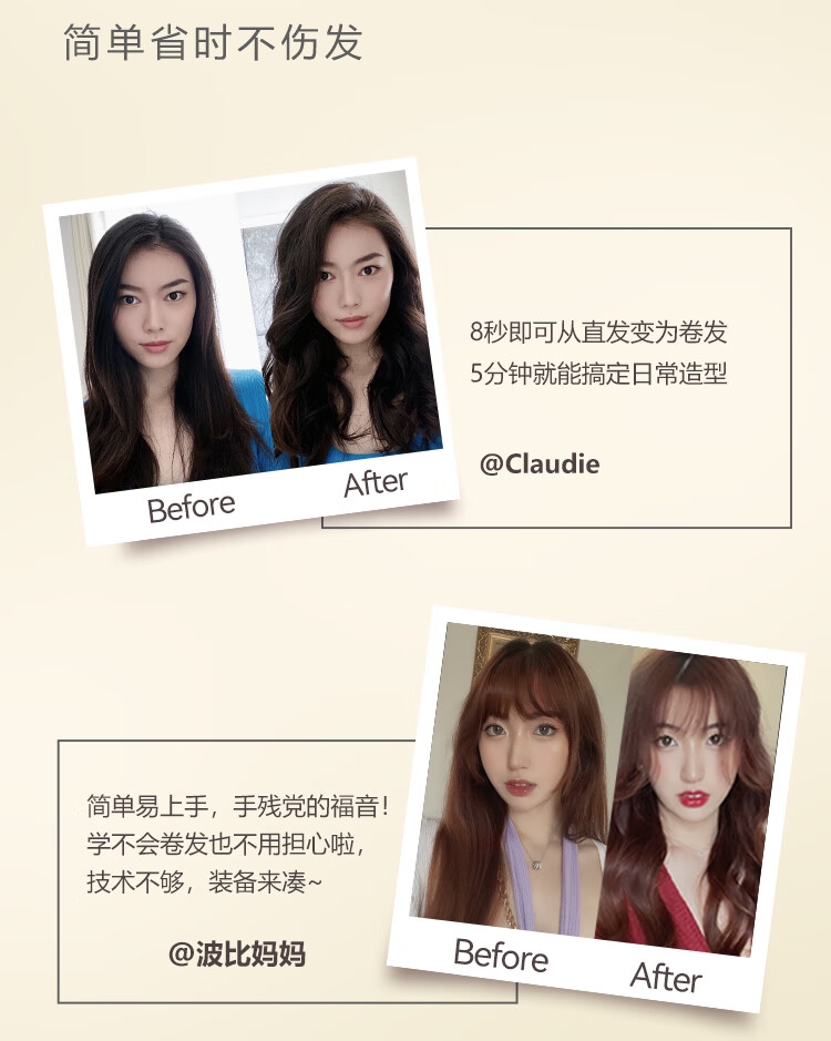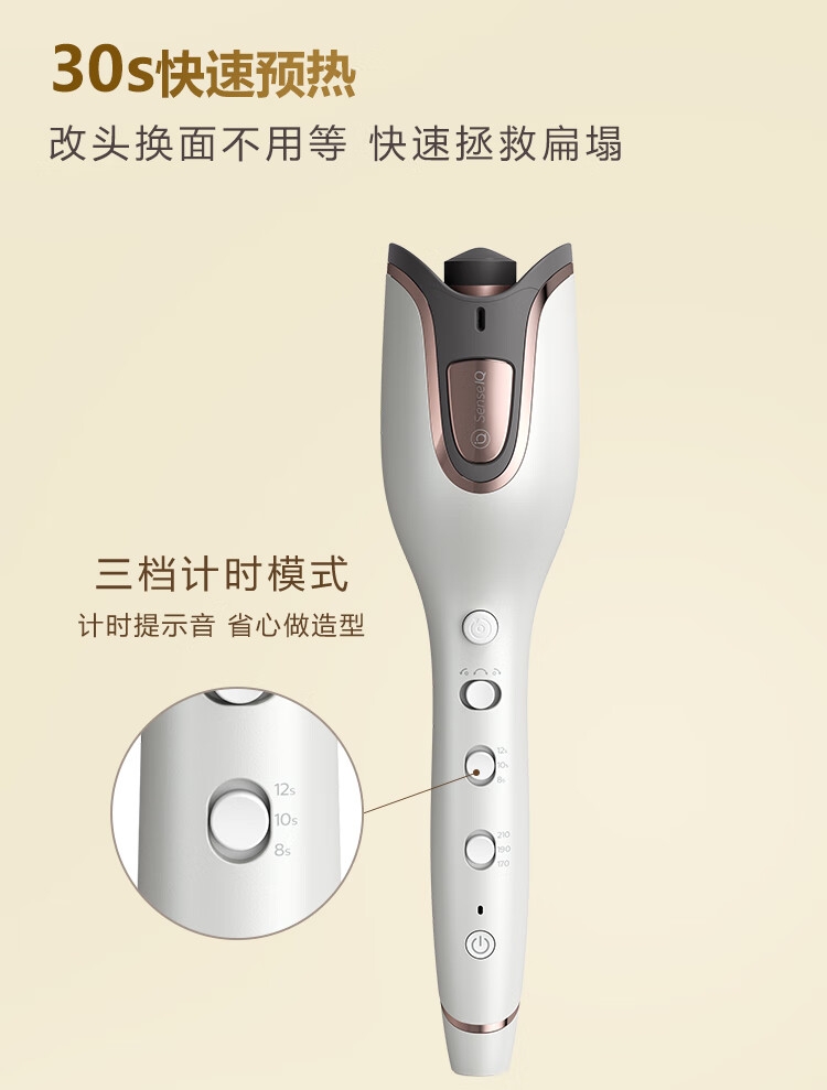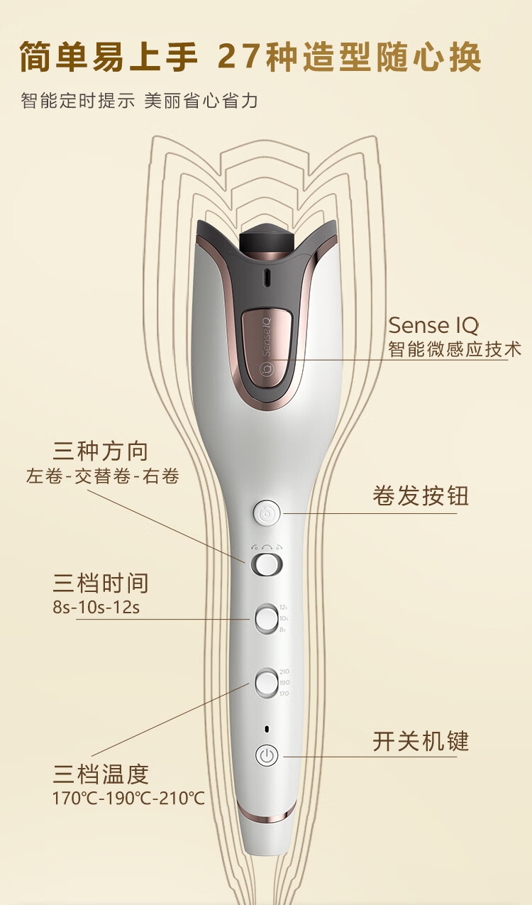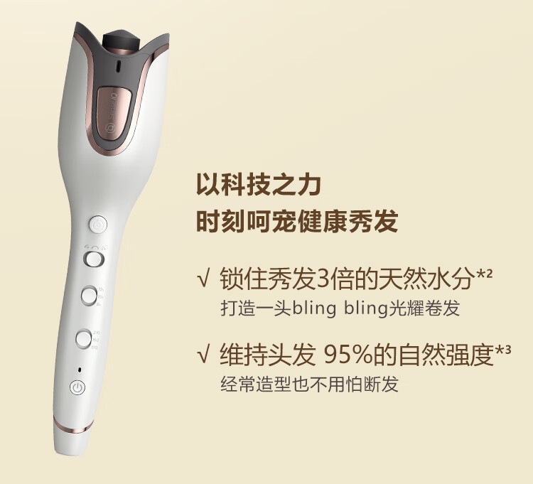 一键成卷简单智能;实时监测 呵护秀发;加长卷筒快速卷发;贴脸不烫 自动断电
