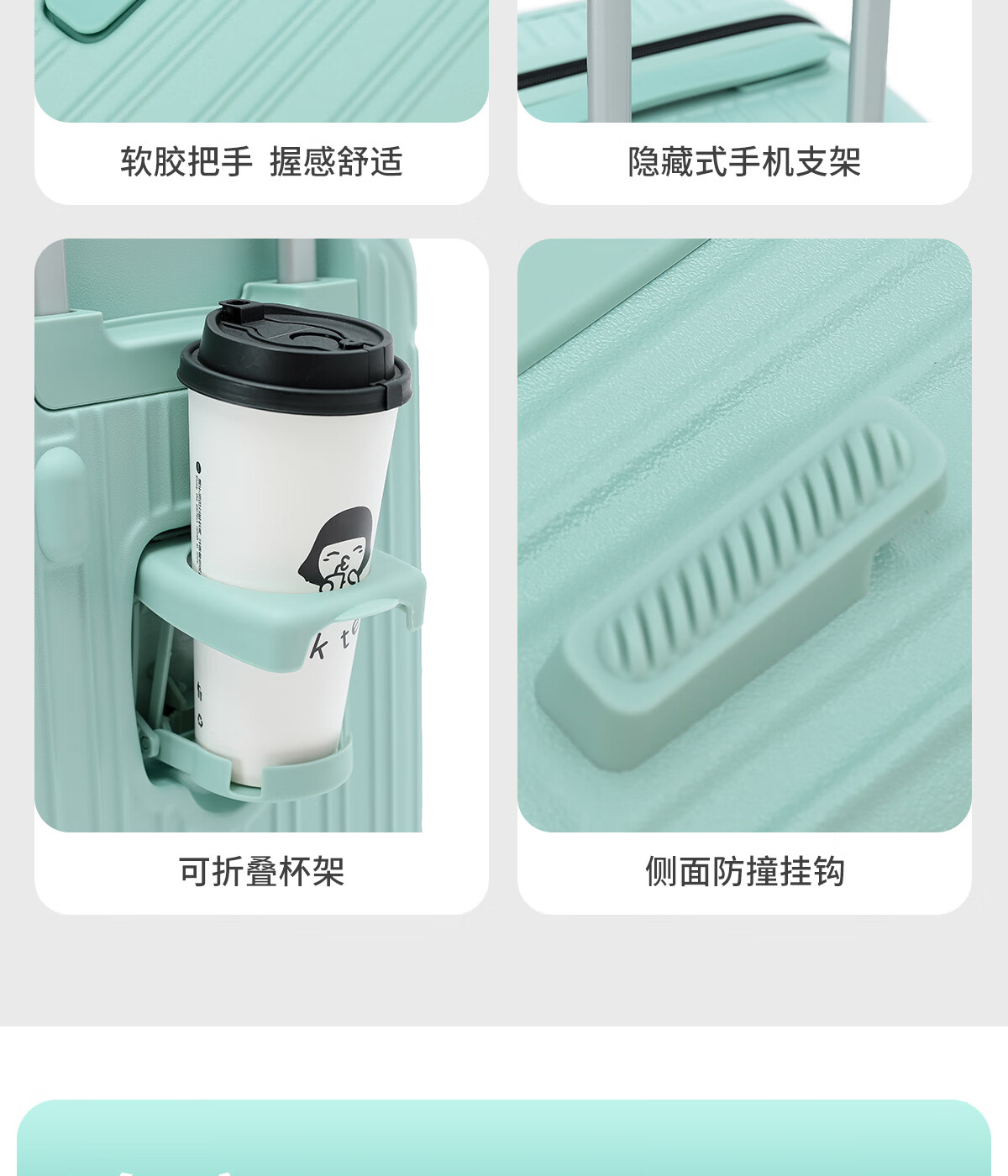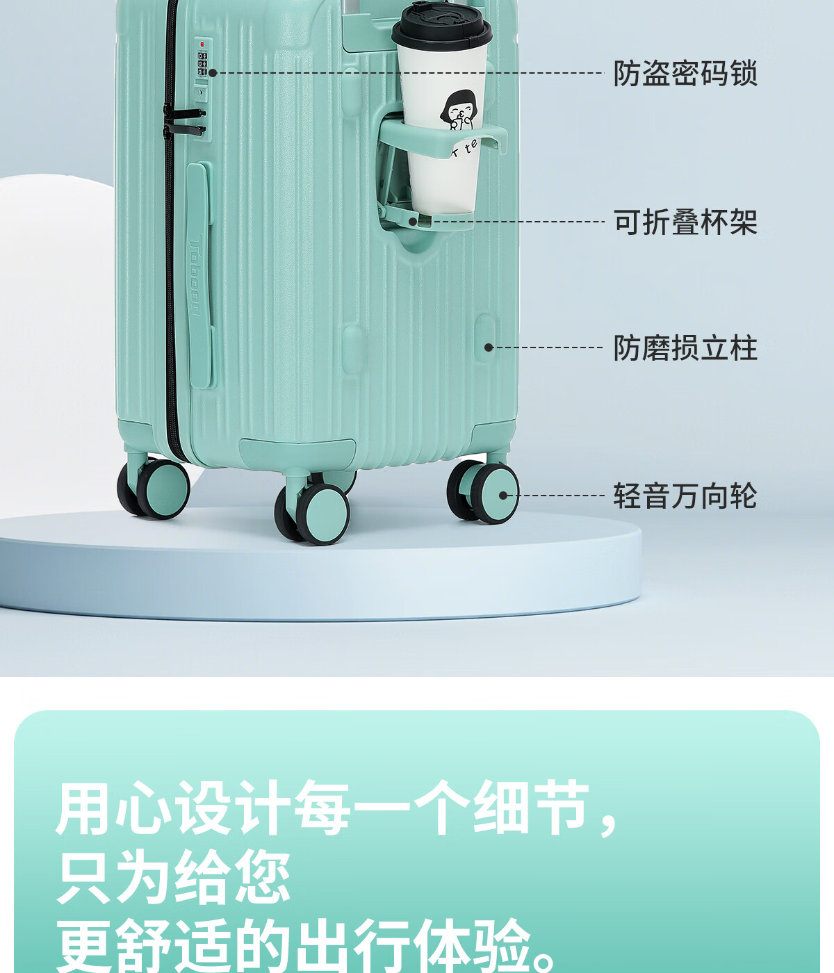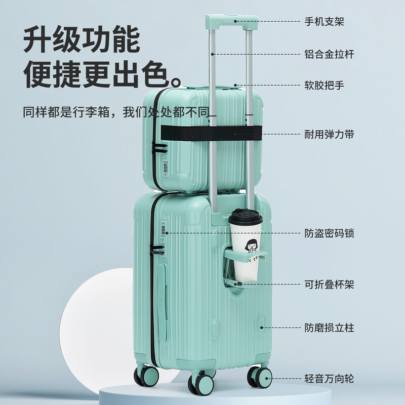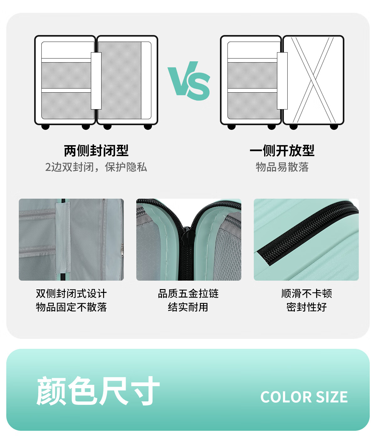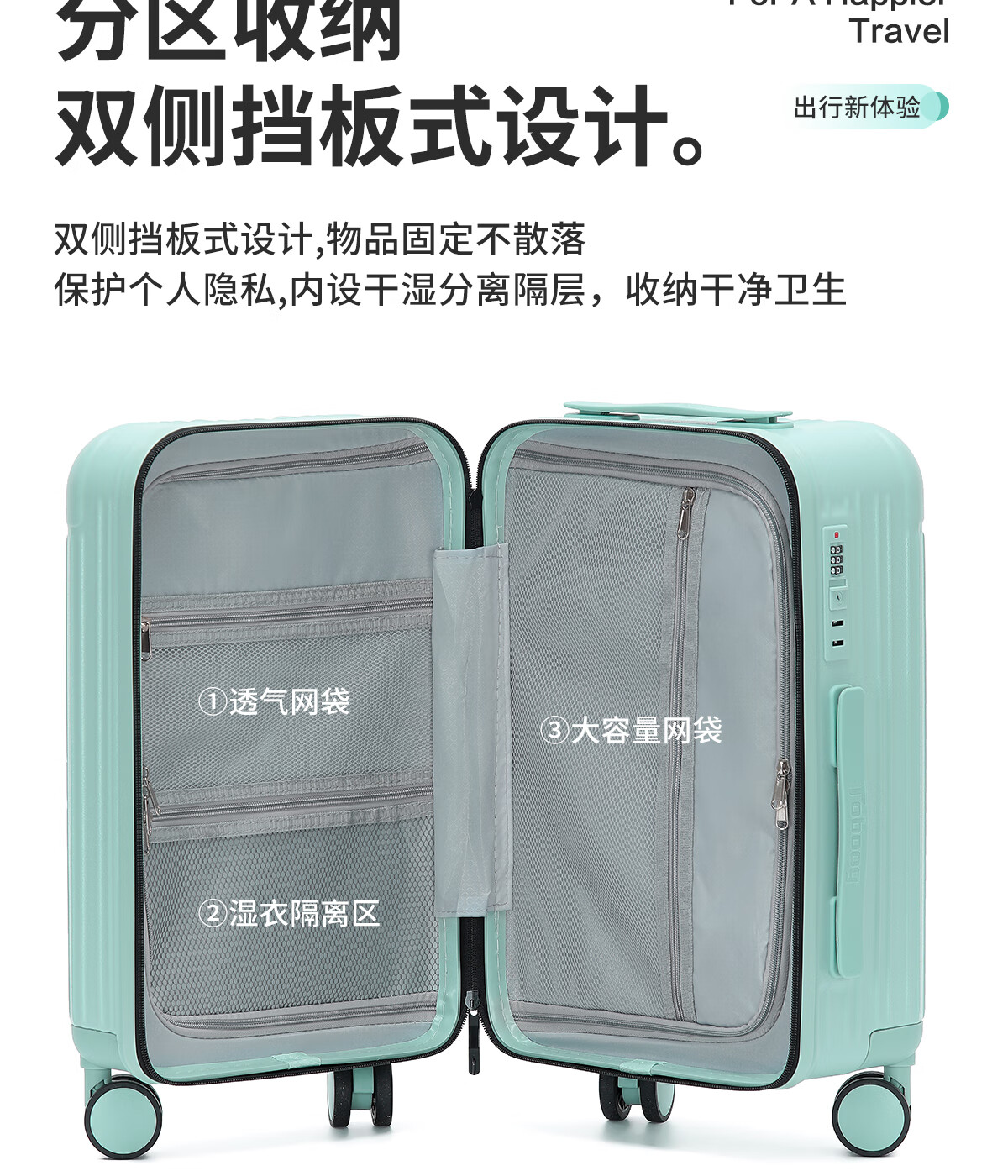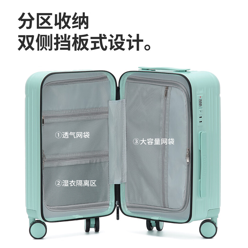 大小搭配 出行不累 小物放置,随手取用更方便;三档高度可调节拉杆;科学归纳随身物品 合理分配内部空间收纳更多衣物