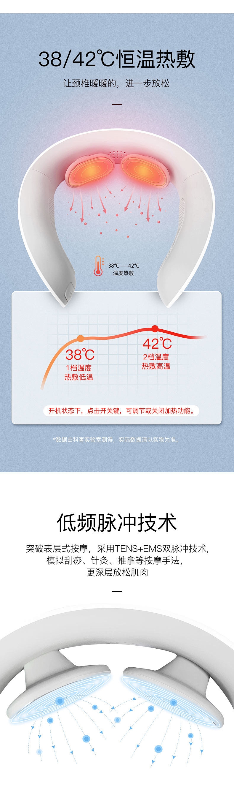 16 档力度自由掌控;十大模式焕活身心;恒温热敷深层治愈;微电脉冲科技赋能