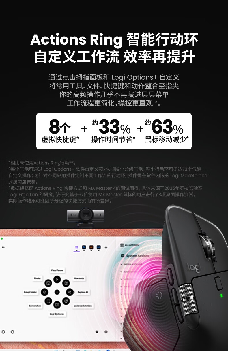 全新触觉反馈,沉浸式精准操控;Actions Ring 智能行动环自定义工作流 ;疾速滚动 一秒千行