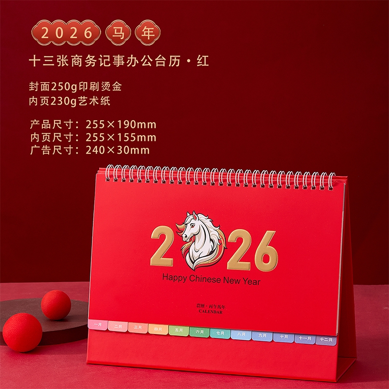 2026马年办公台历(红