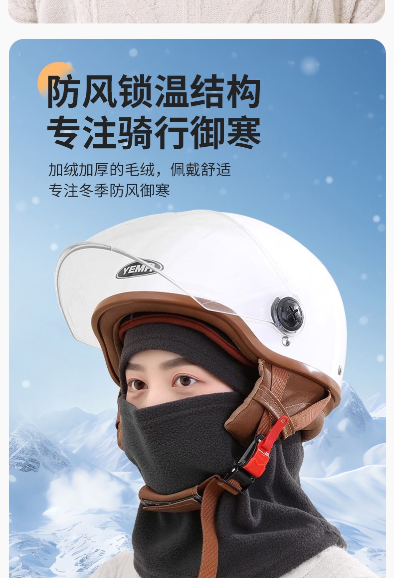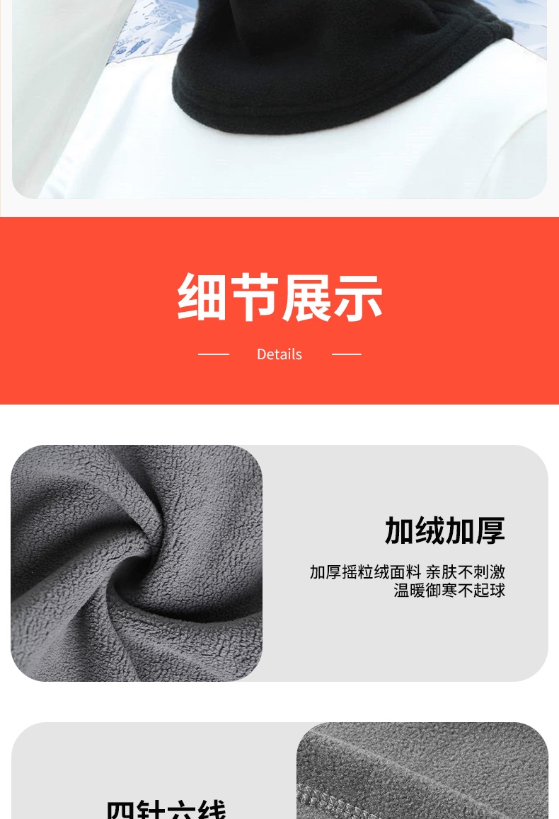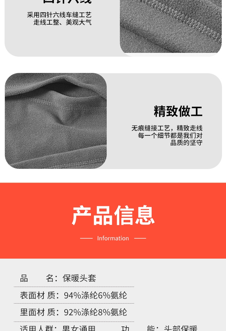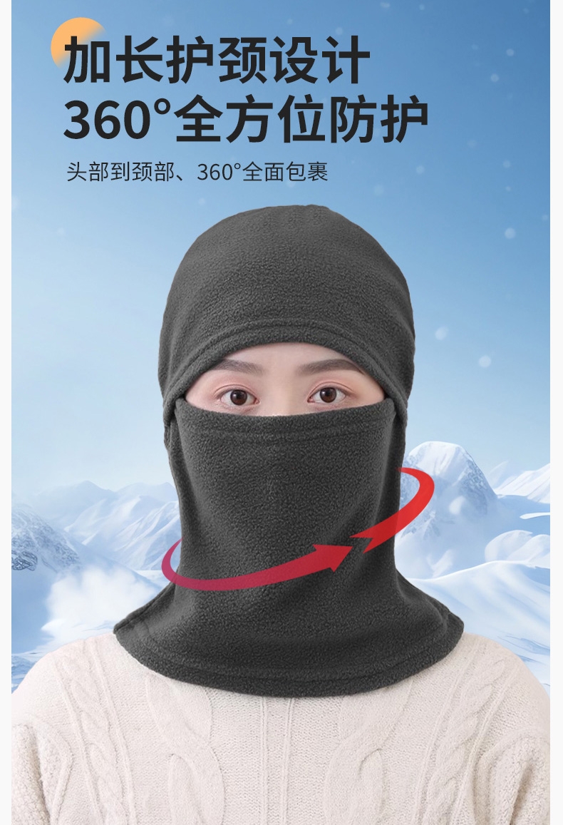 奥粒绒面料,亲肤柔软,保暖性强;强 护头护耳护颈设计;全方位保暖,无惧寒冷