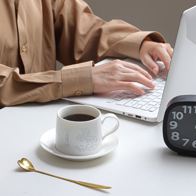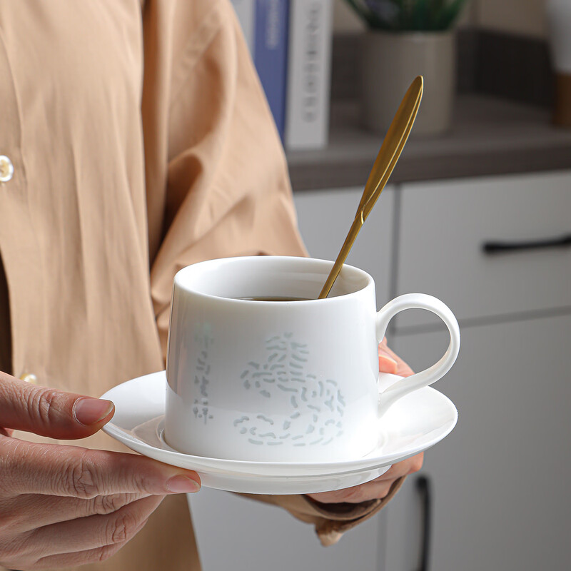 瓷语花香 瑞马生祥玲珑咖啡杯套组858