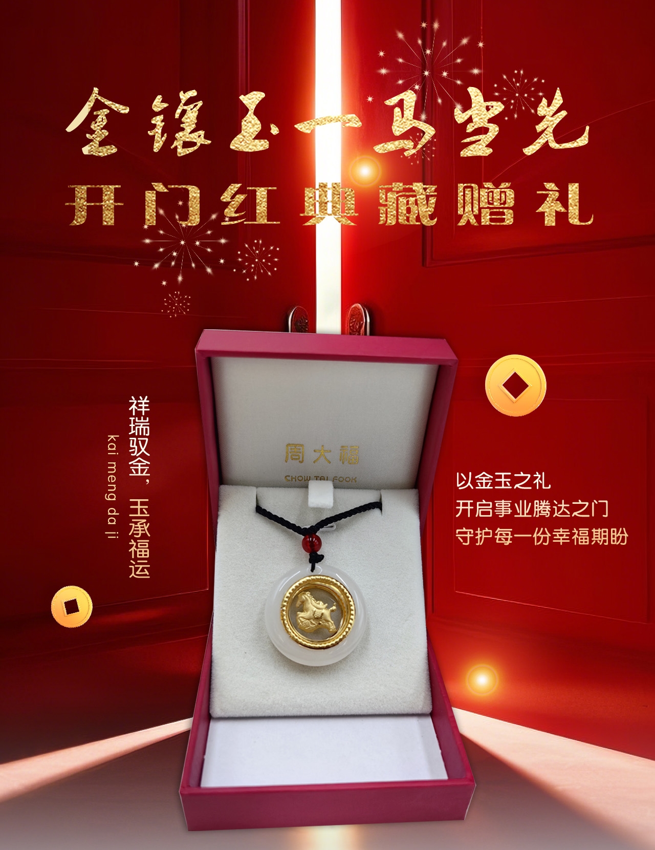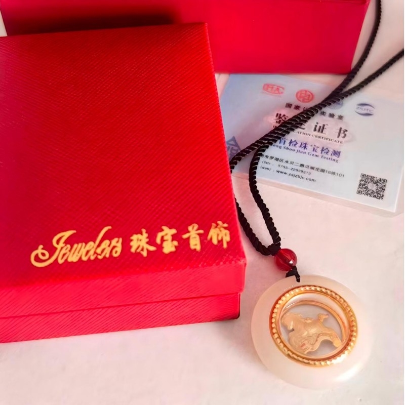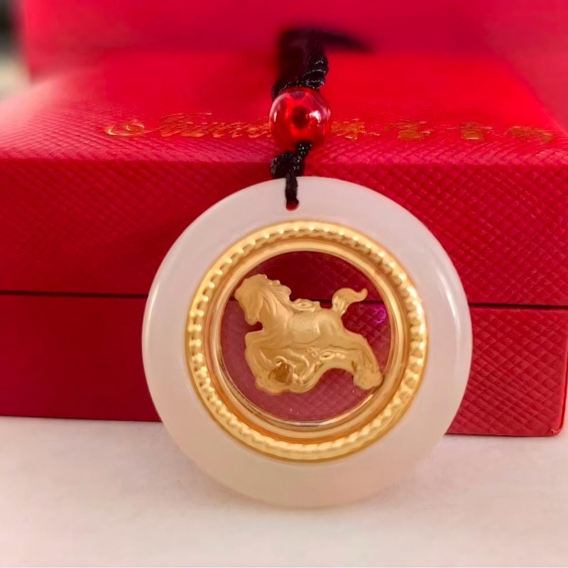 祥瑞驭金,玉承福运!以温润仿玉为基,镀金奔马跃然其;金玉交辉——玉环象征圆满和谐,金色骏马昂首奔腾;鸿运加持——搭配中国红绳与吉祥红珠,佳节赠礼更添喜;寓意人生马到功成!寓意红火开门,福运连连