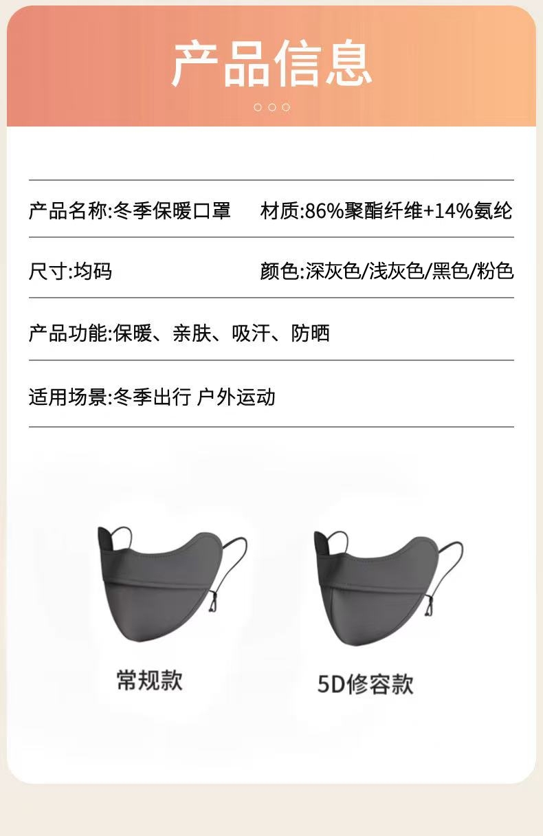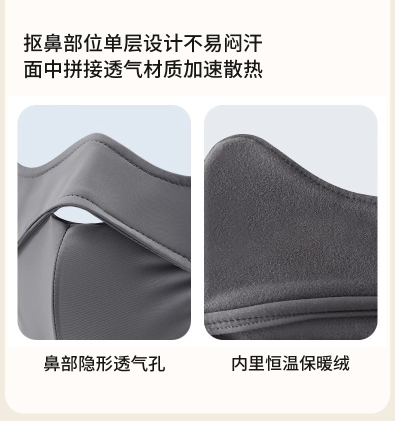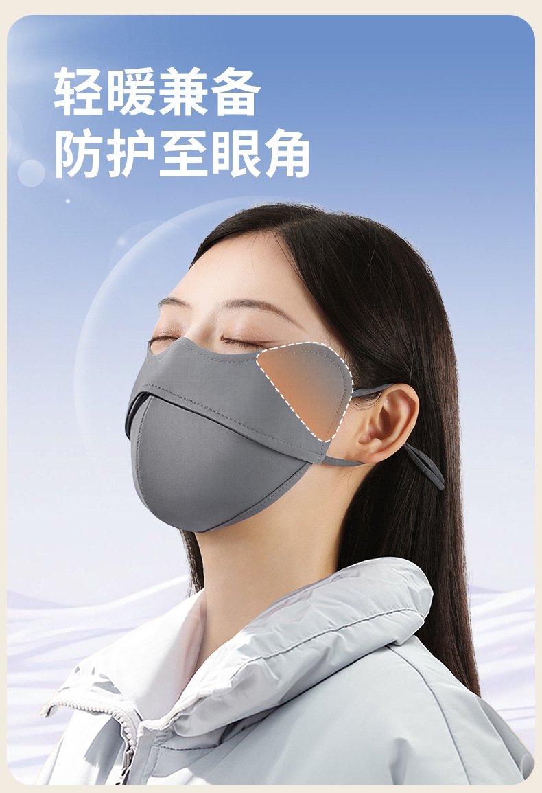 涤纶拉毛处理,柔软亲肤,锁热保暖效果更好;保暖效果更好 防紫外线UPF50+,护眼角设计,防;可调节耳绳设计,不勒耳朵 软骨支撑,立体修容