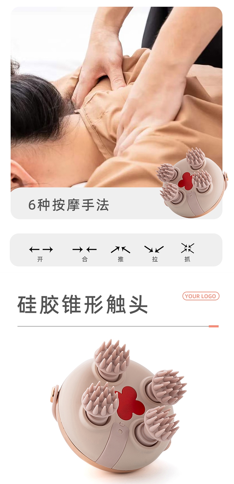 多效理疗 + 舒适体验,开合推拉抓等6种按摩手法;IPX6 防水等级,干湿两用;一键操作,Type-C 充电接口,无线便携设计