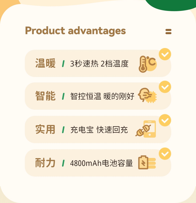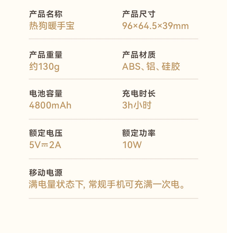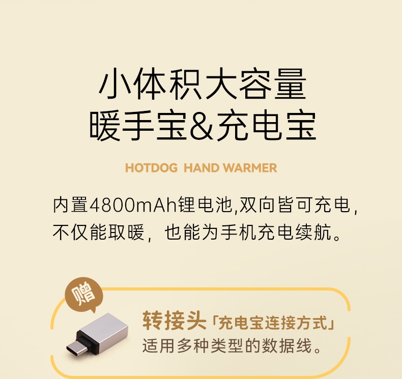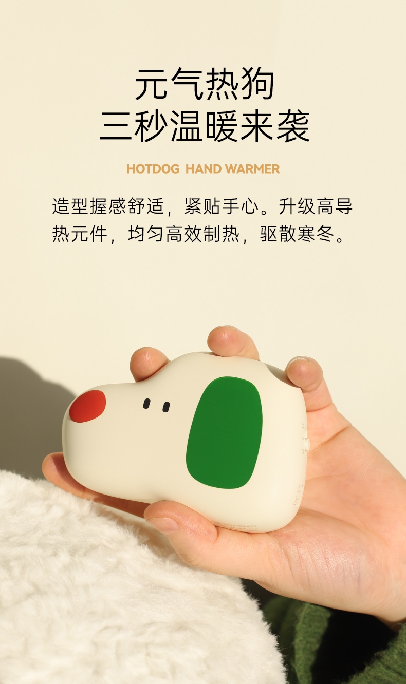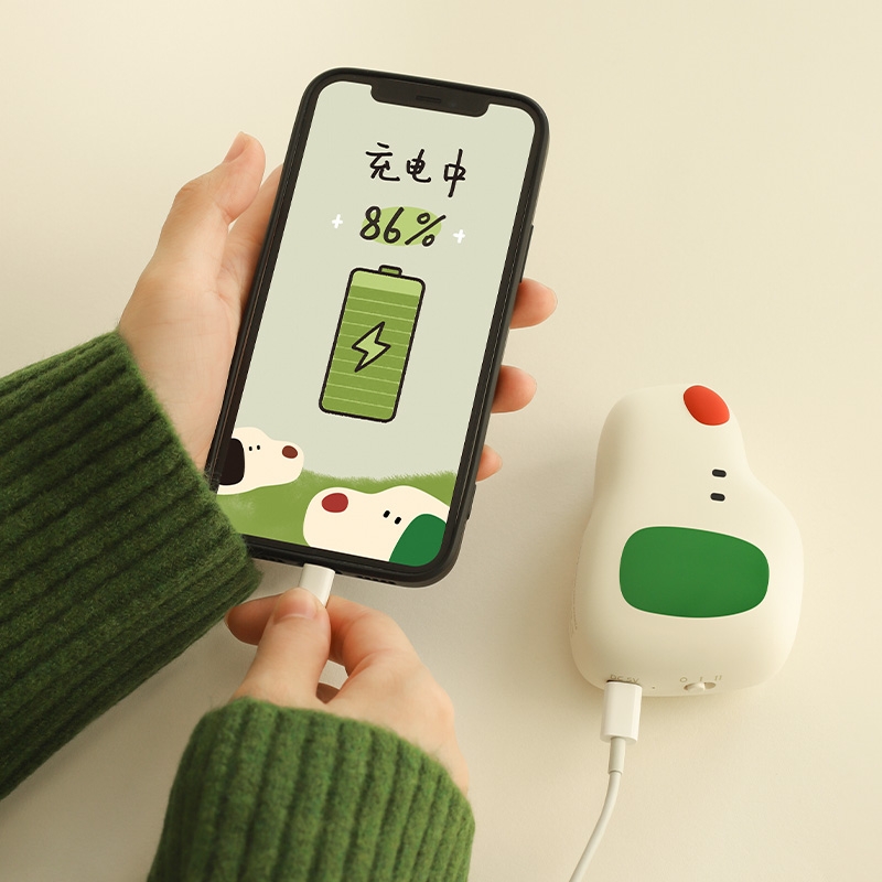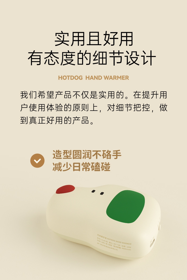 造型握感舒适,均匀高效制热;一键拨动开关,操作简单;暖手宝/充电宝, 双向皆可充电