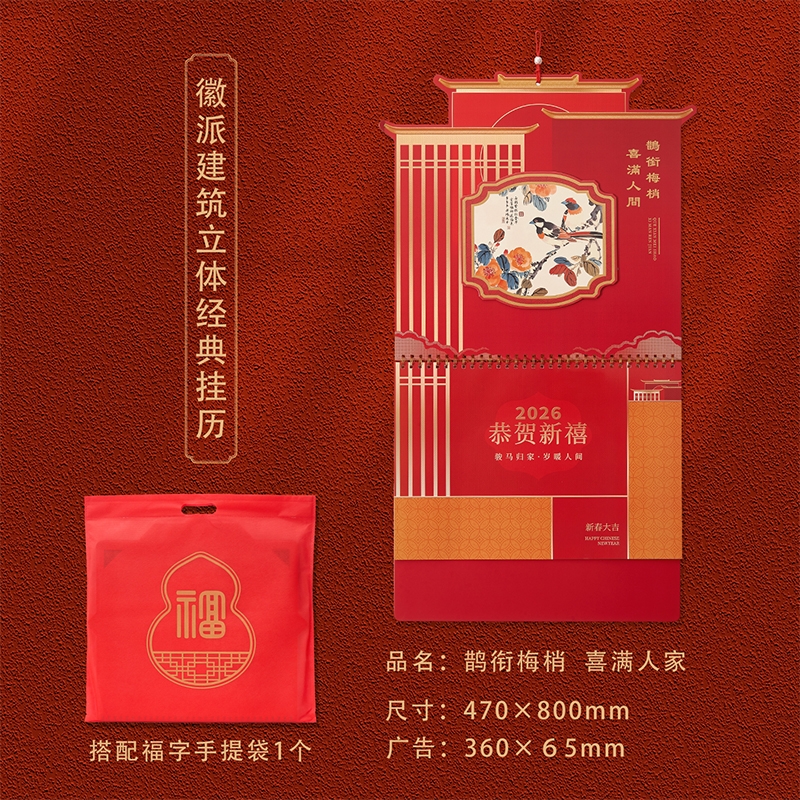 鹊衔梅梢徽派建筑挂历