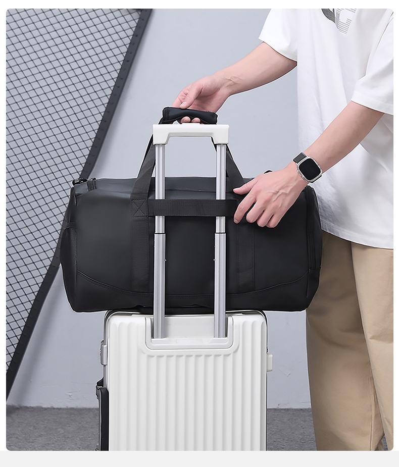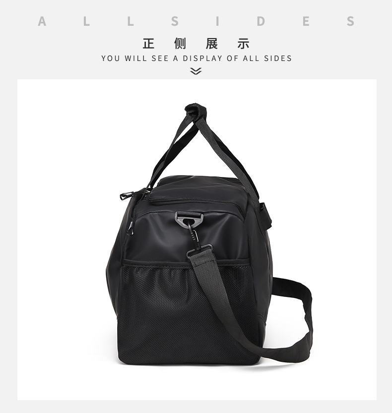 防泼水皮膜面料,一擦即干,轻松打理;主袋约38L大容量,装的更多独立鞋仓设计干净易清理;大容量前置拉链袋,放置贴身物品