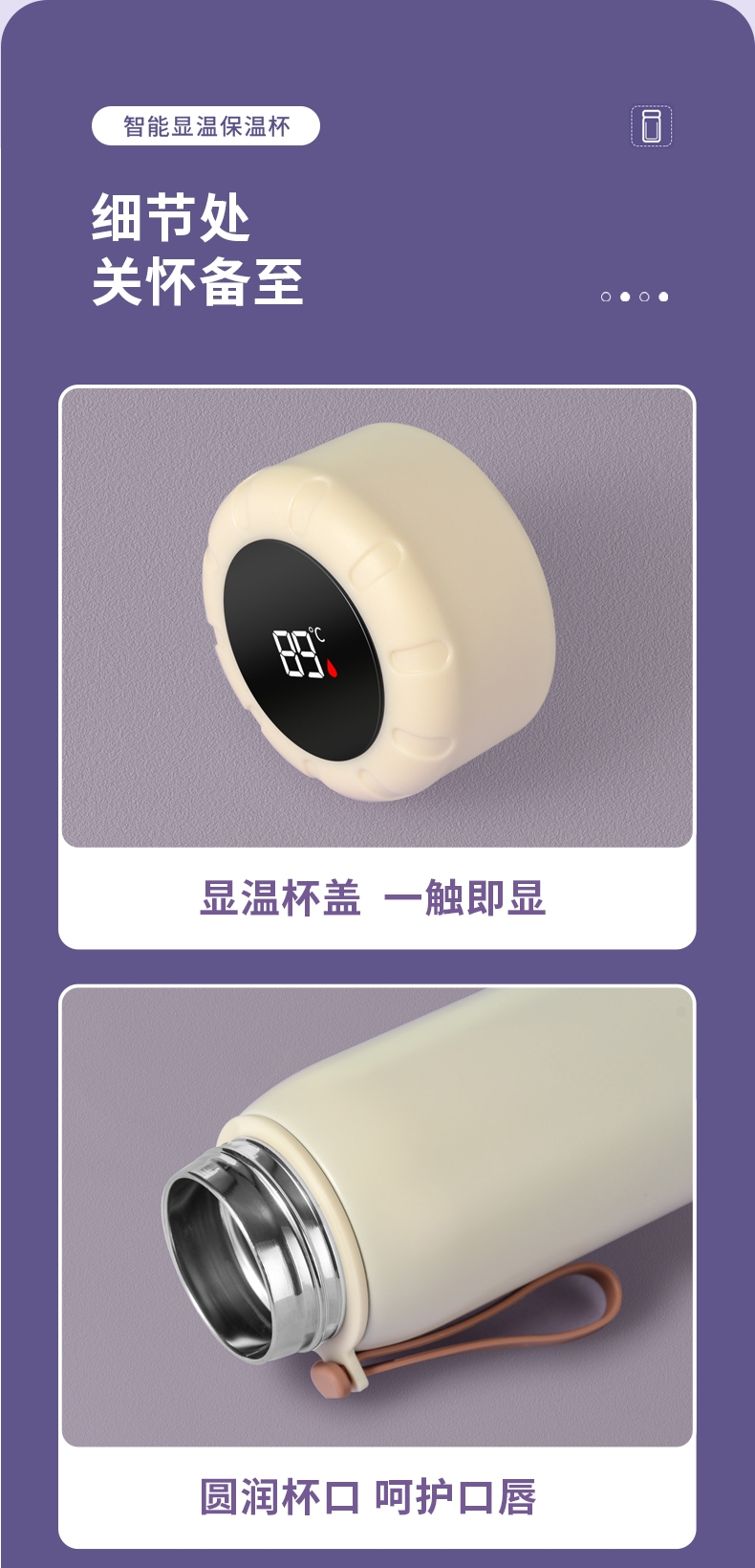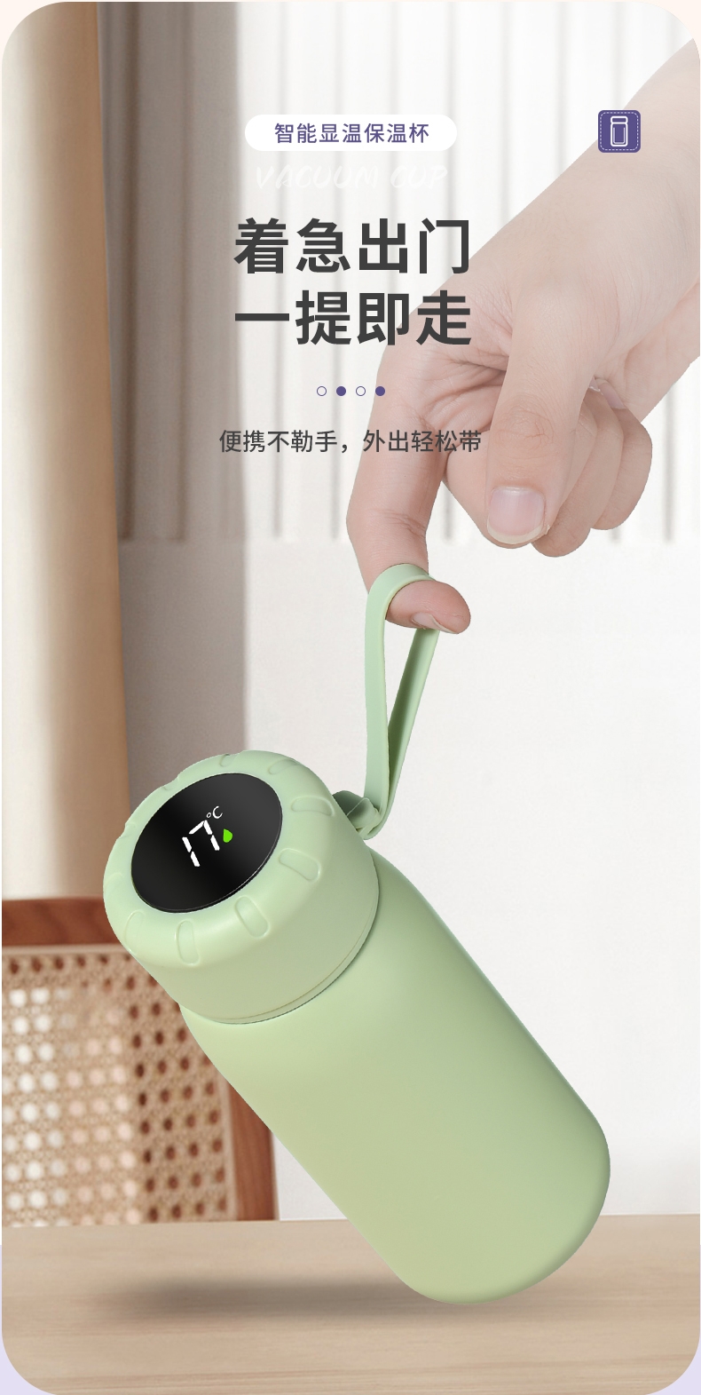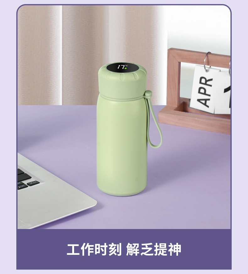316手提保温杯:材质杯体316,茶隔304,盖子抗菌不锈钢+食品级硅胶圈,容量400ML,尺寸73*148MM,颜色活力黄、芥末绿、雪顶白、香芋紫