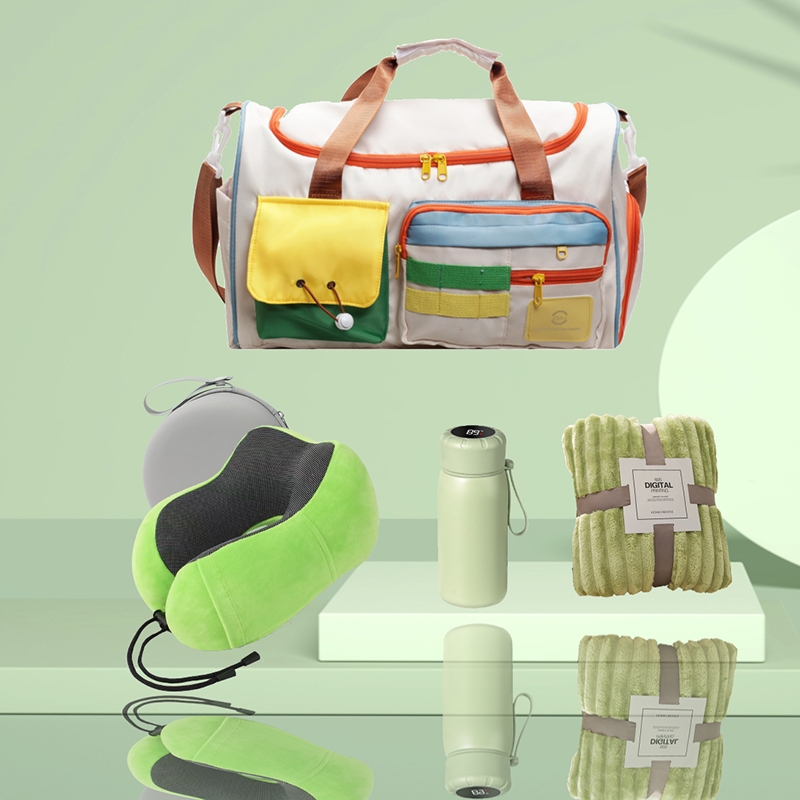 配置清单:U型枕*1、保温杯*1、午休毯*1、健身包