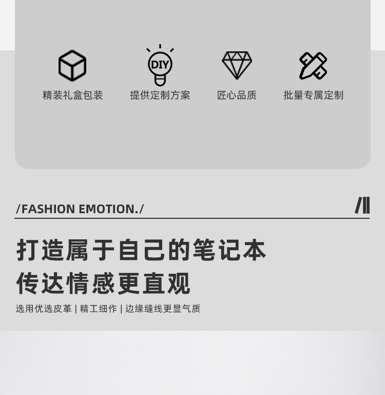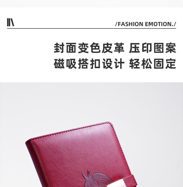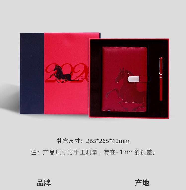 选用优选皮革 | 精工细作 | 边缘缝线更显气质;封面变色皮革 压印图案 磁吸搭扣设计 轻松固定;U型笔夹可夹书本或口袋 | 不锈钢笔尖耐磨损 | ;0.5mm笔芯 滚珠笔头 在书写过程中更加顺滑;书写工具搭配齐全 | 内配精美硫酸纸 | 外盒精致