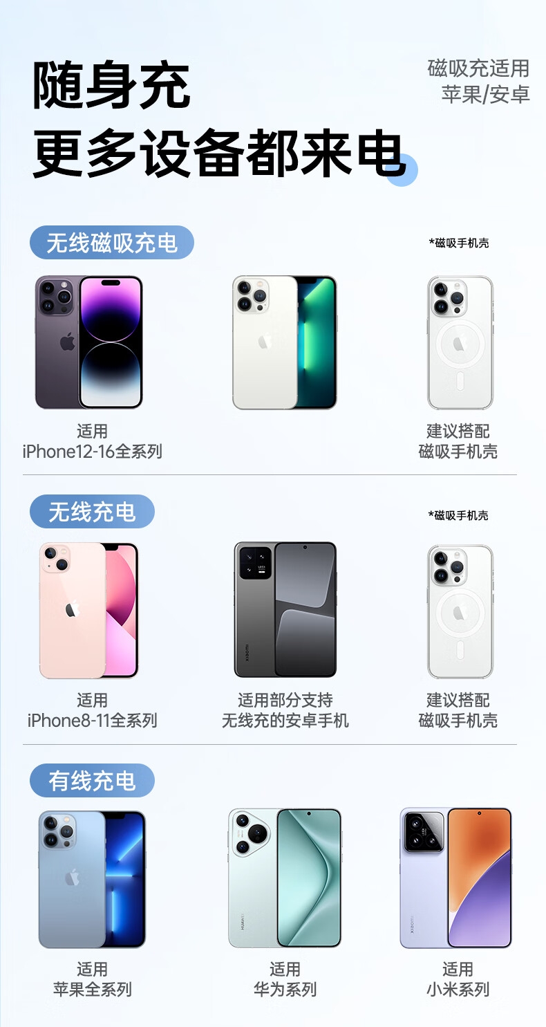 功能:磁吸充电,自带数据线