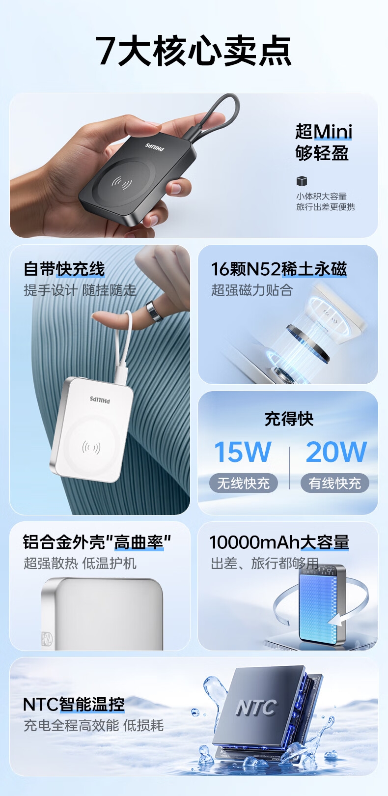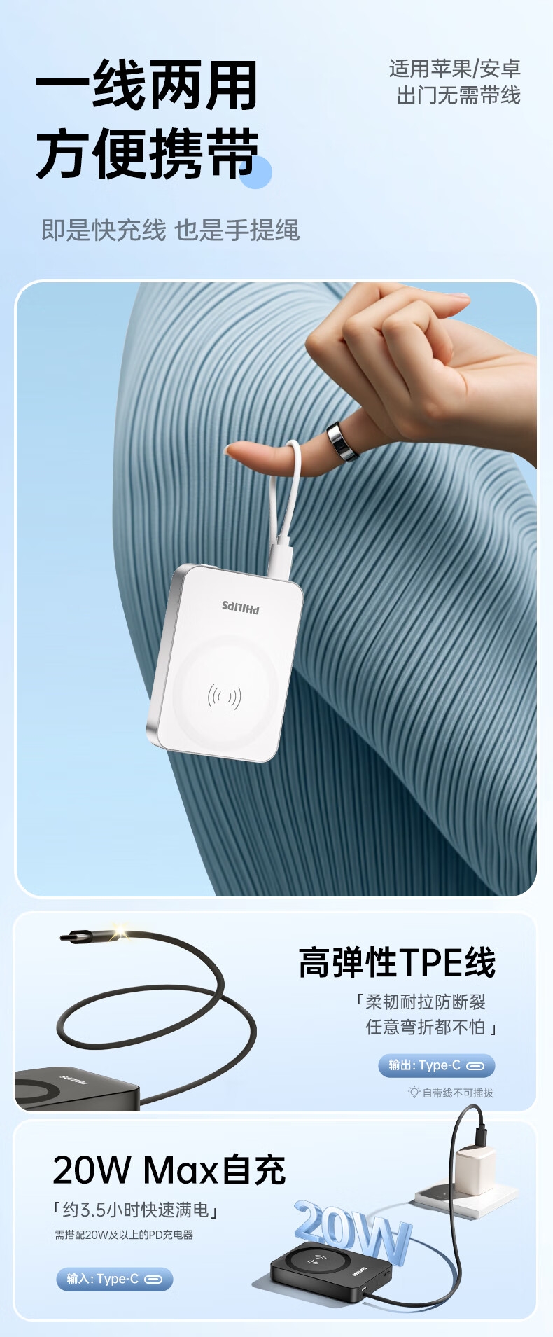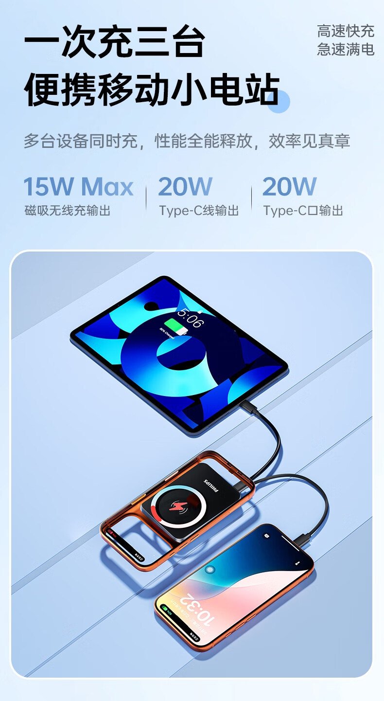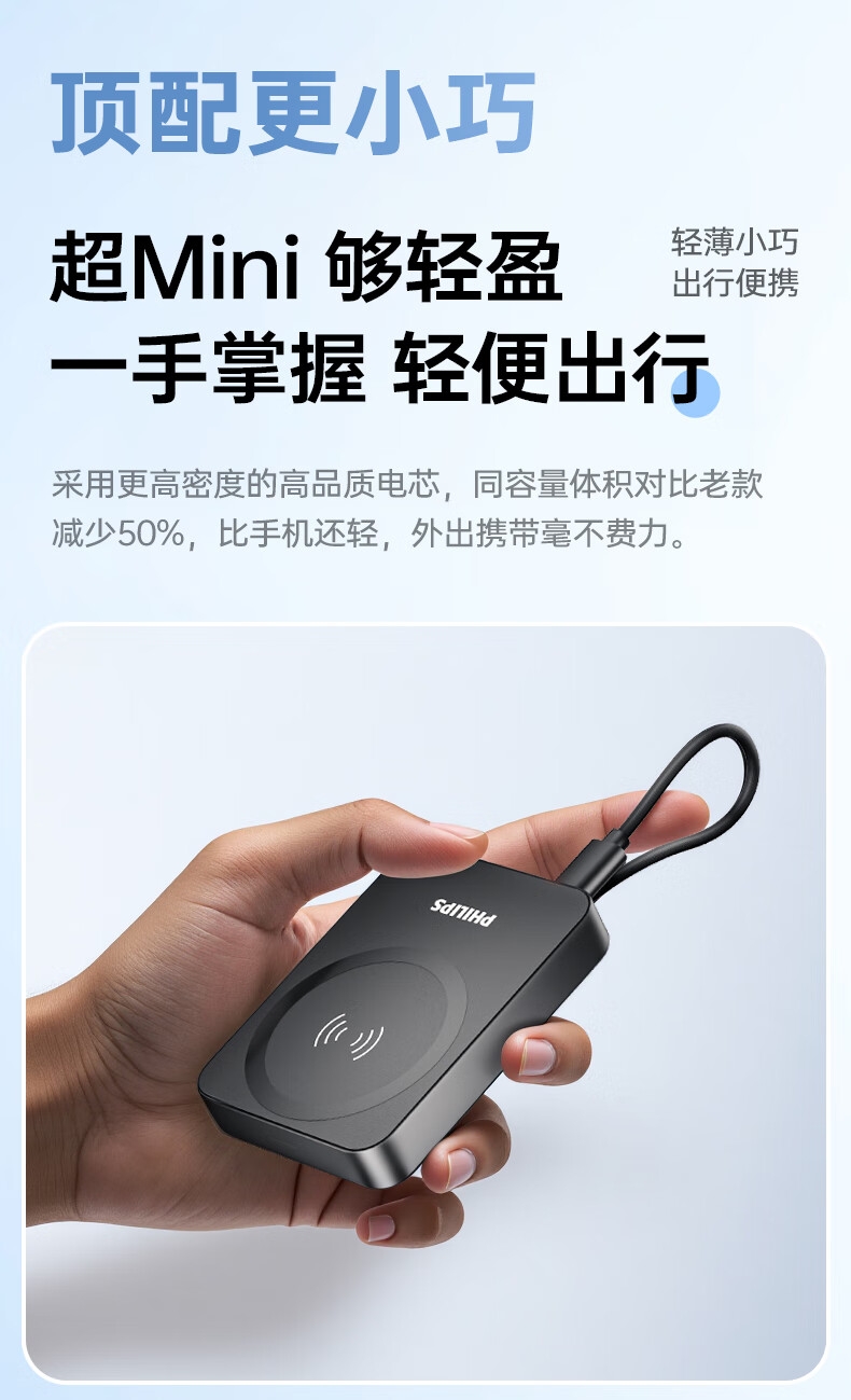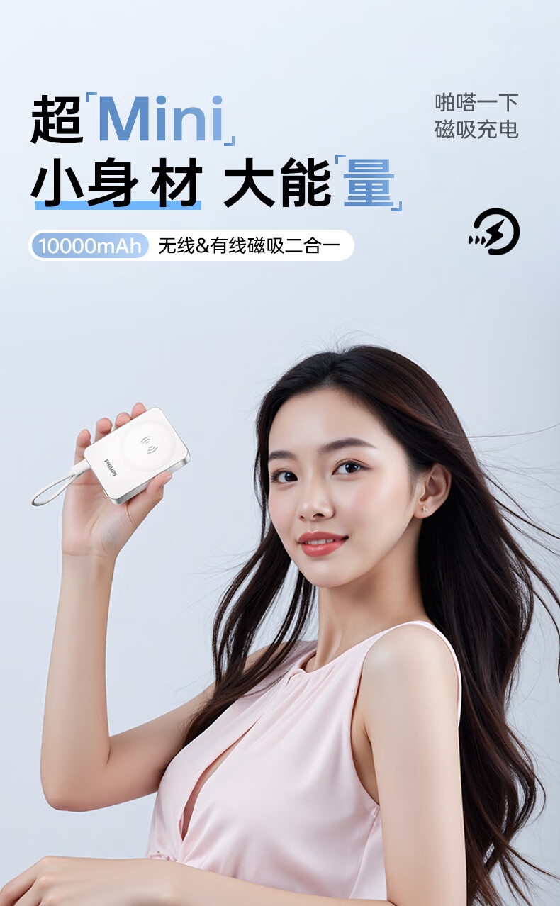飞利浦 1万毫安磁吸有线二合一充电宝DLP2717